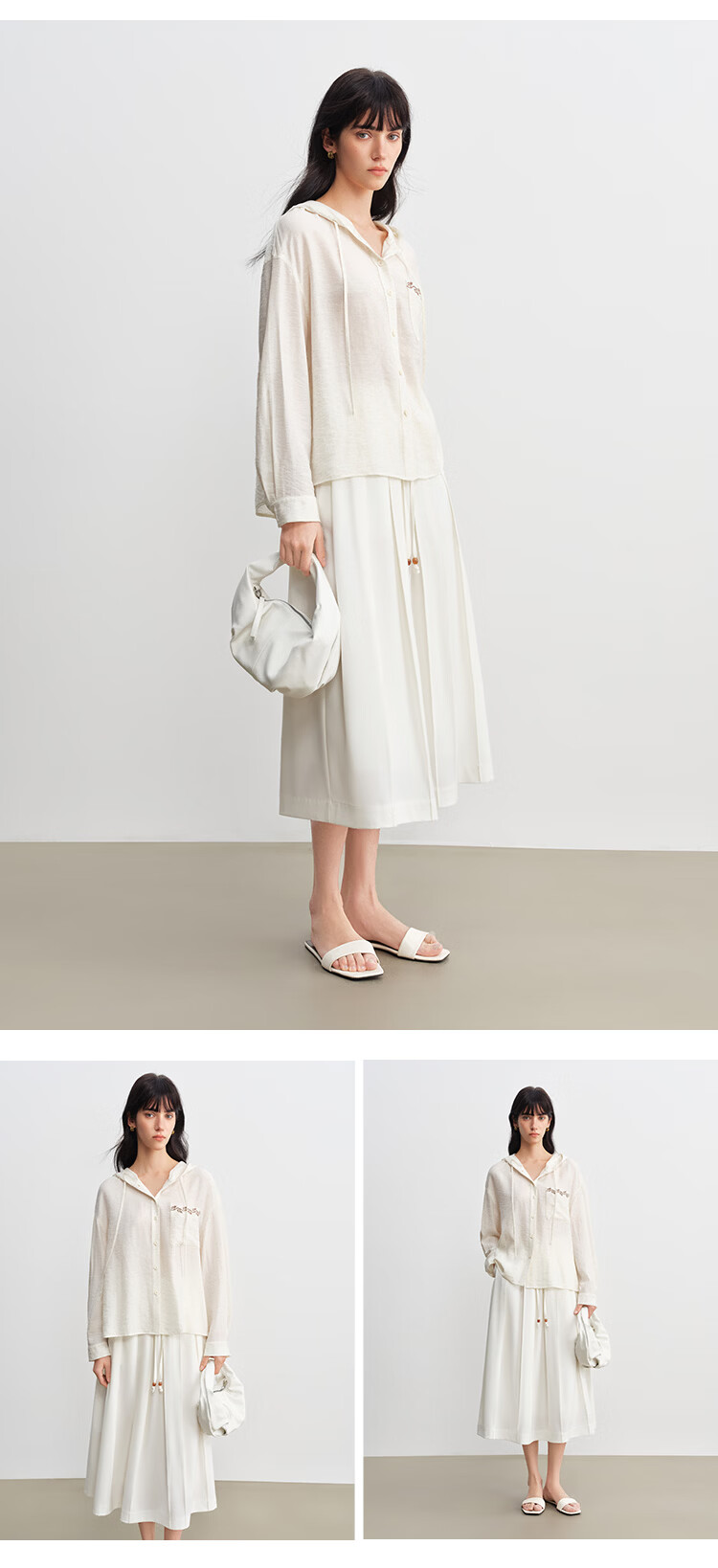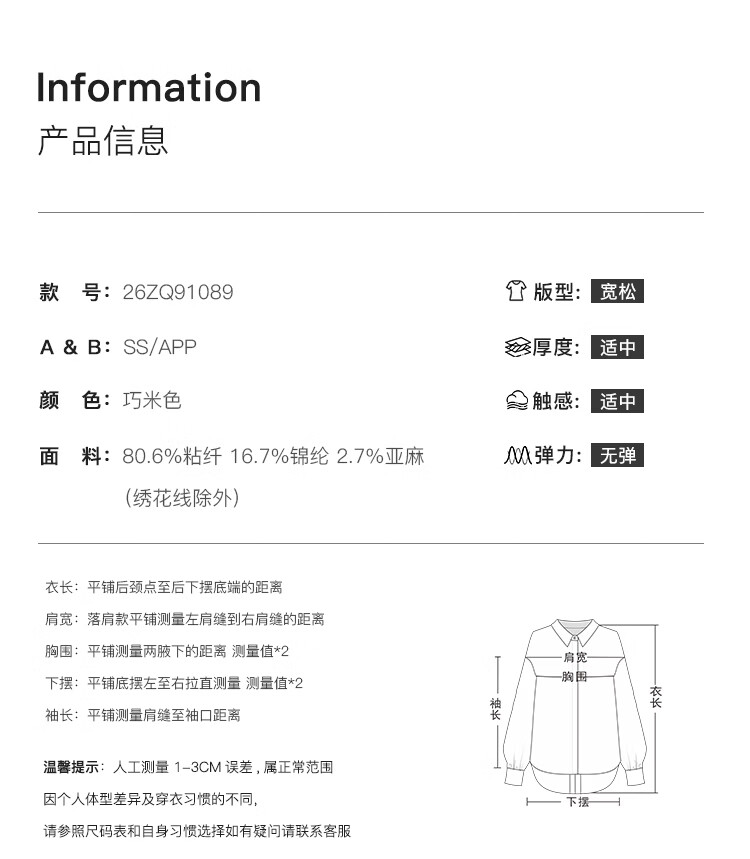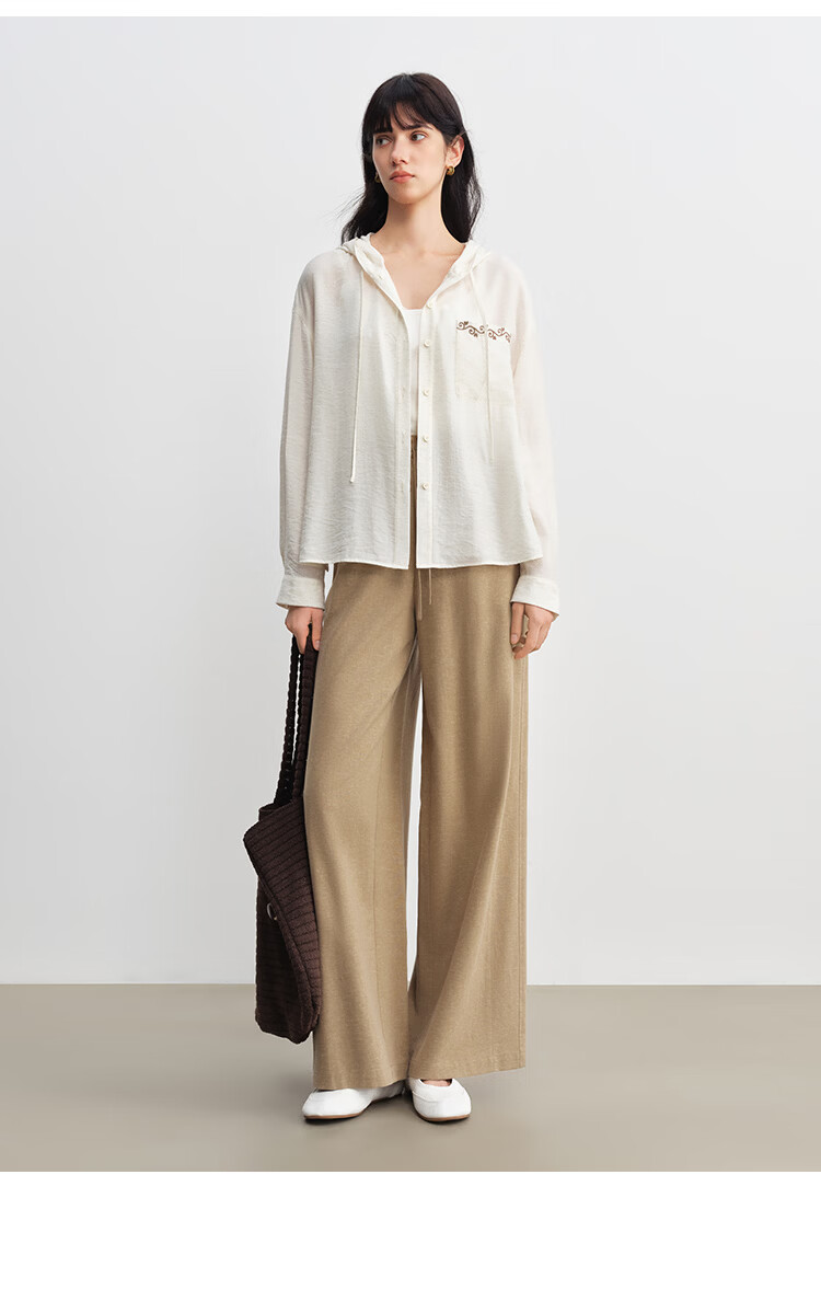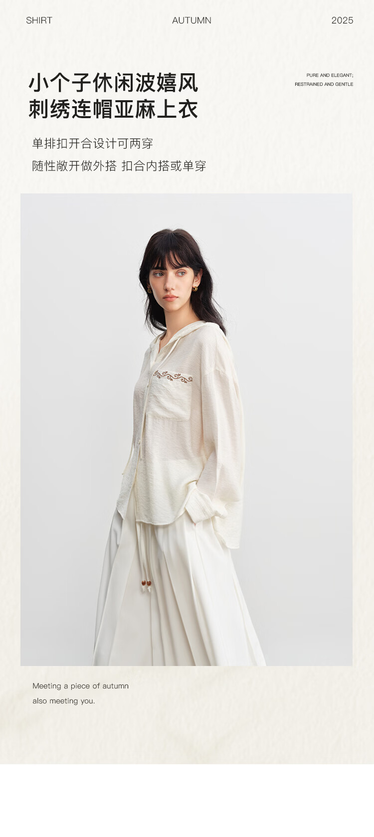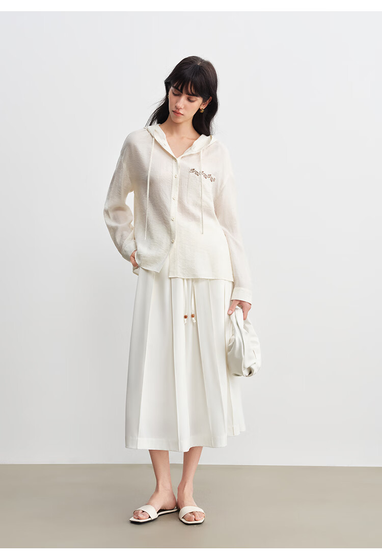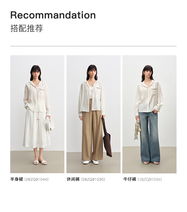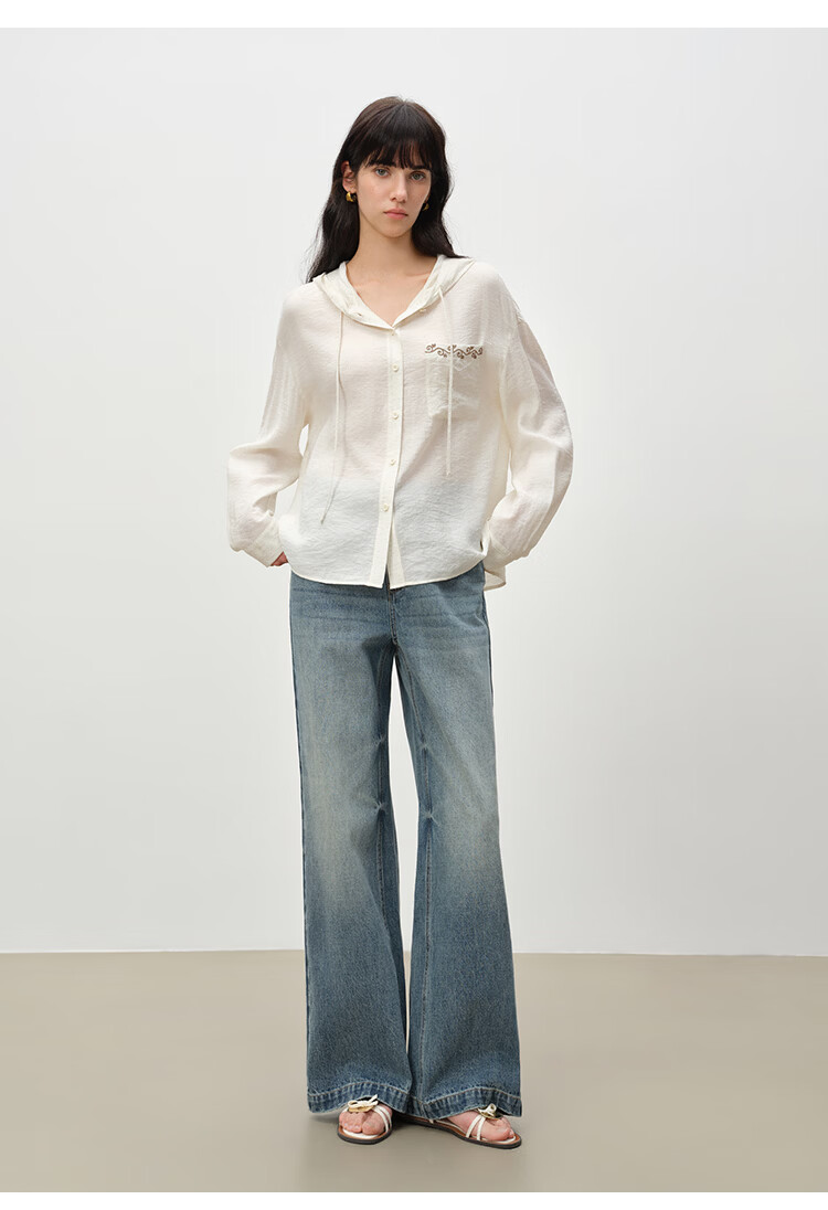 自巧小个子波嬉风藤蔓花纹刺绣连帽衬衫抽绳上衣2026年春季新品女 巧米色 M (尺码:4)