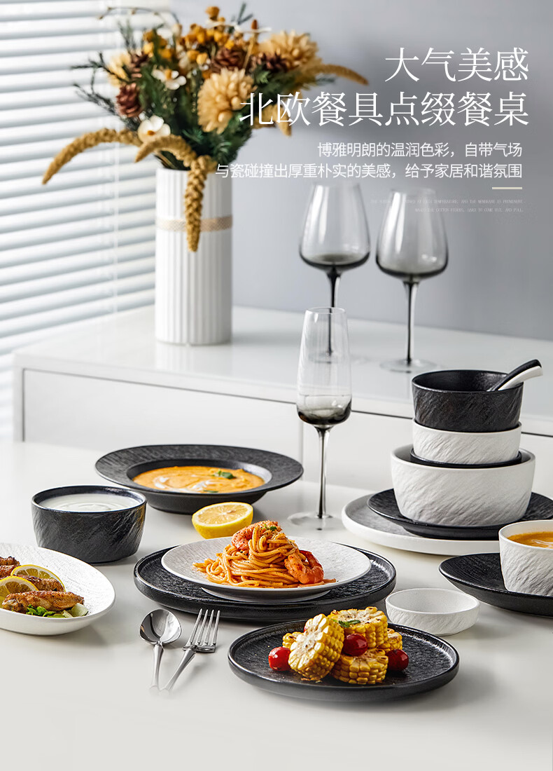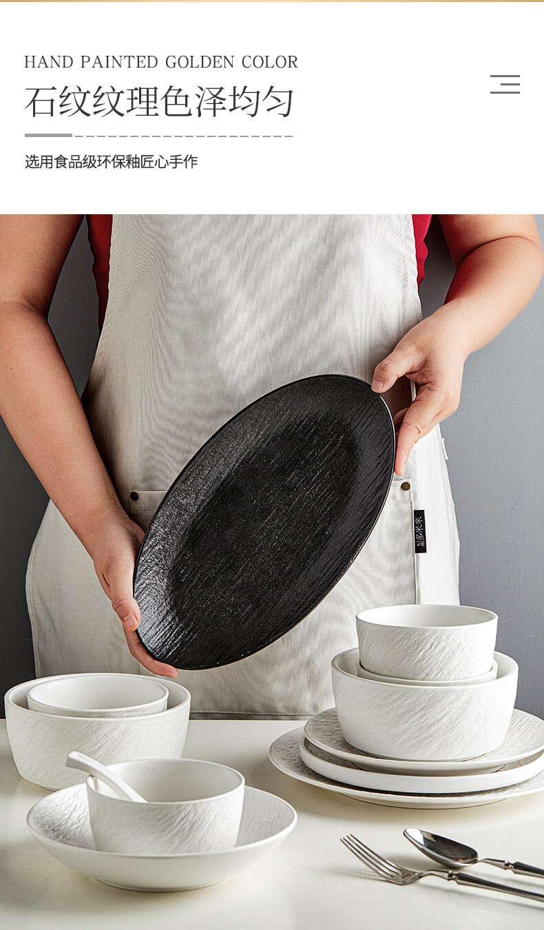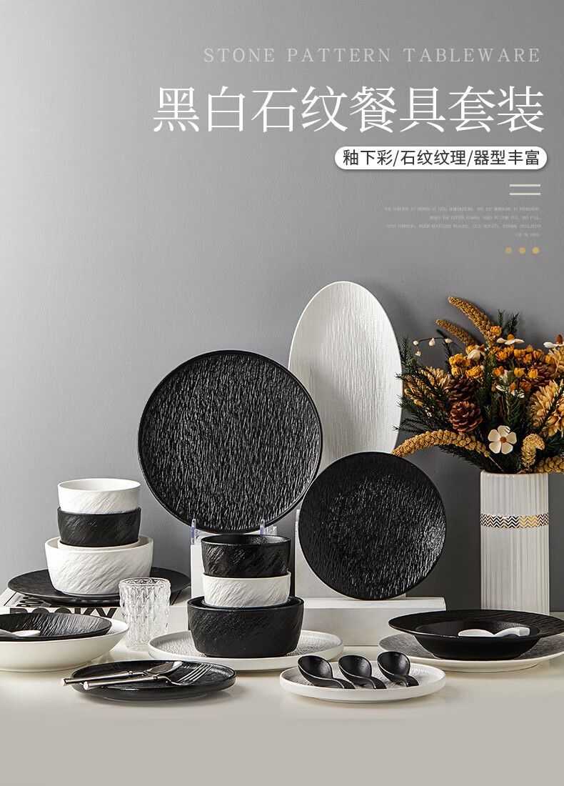 精缔陶瓷JINGDI餐具套装2026新款高颜值碗筷碗盘釉下彩陶瓷碗具乔迁碗碟套装家用 【店长推荐】混搭8人食(下单送明火砂锅) 38件套