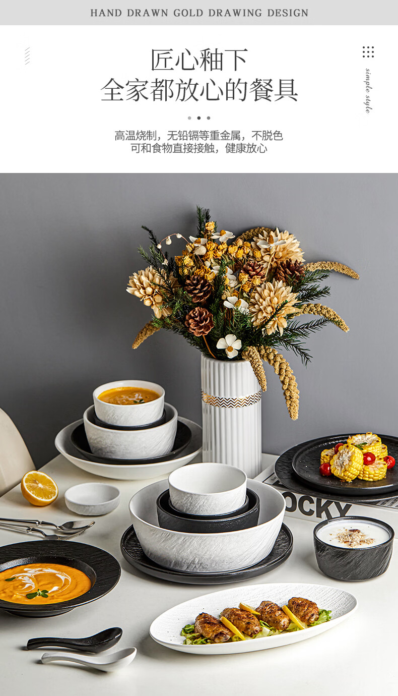 精缔陶瓷JINGDI2025新款碗碟套装家用碗筷乔迁高温骨瓷餐具套装景德镇陶瓷碗盘子 【店长推荐】66件升级配大汤碗 66件套