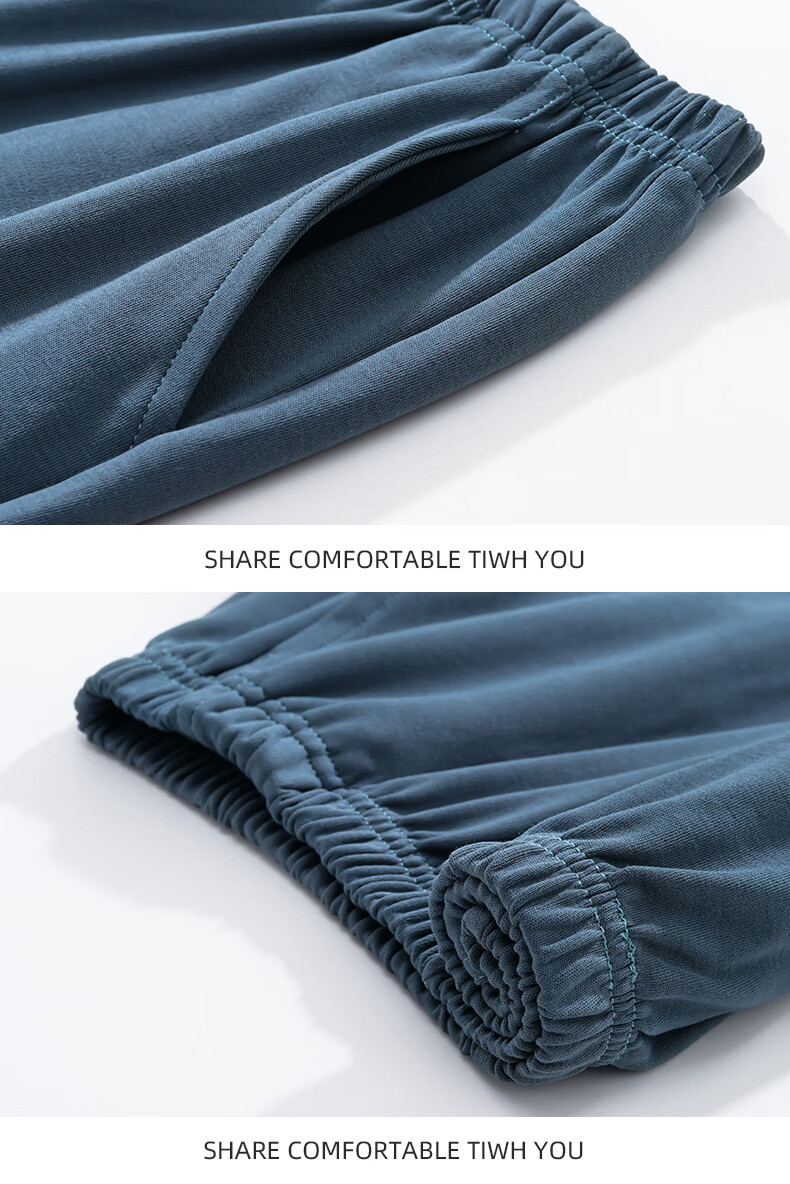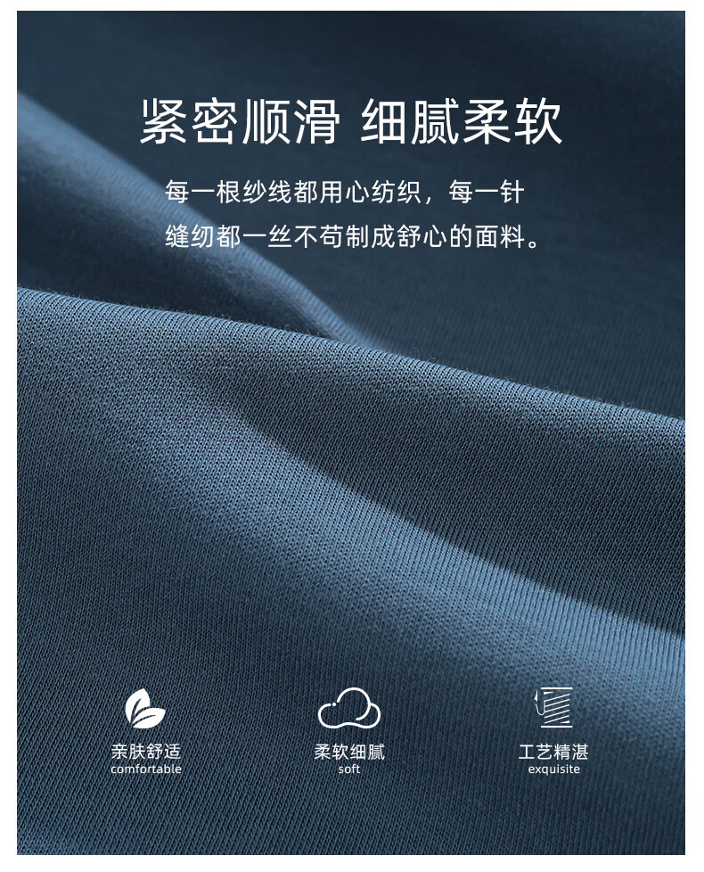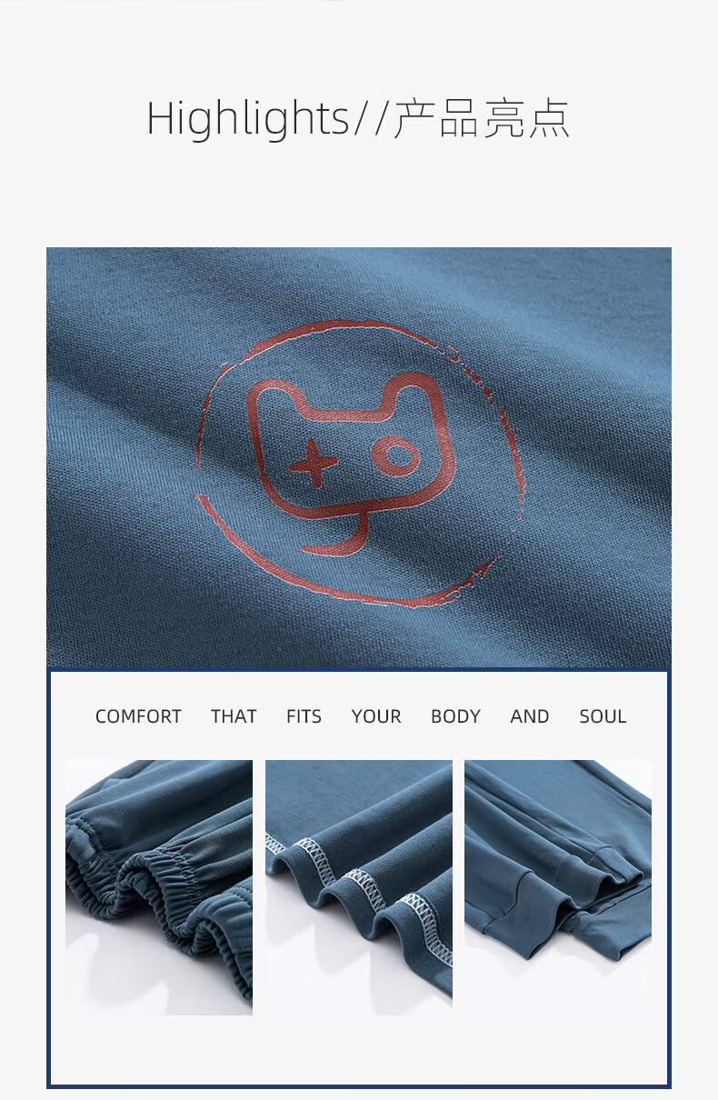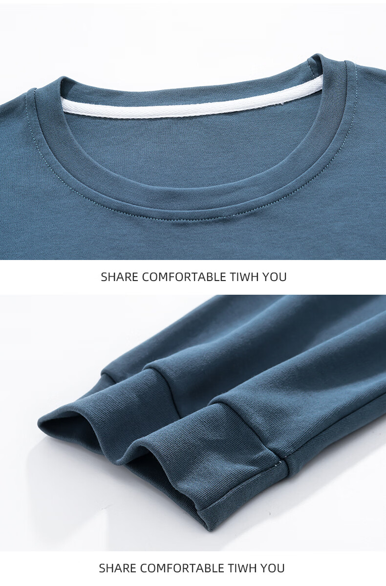 允织莱卡纯棉睡衣男春秋长袖青少年2026新款套头可外穿大码家居服套装 8606-海蓝 L (170) :建议100-135斤穿着
