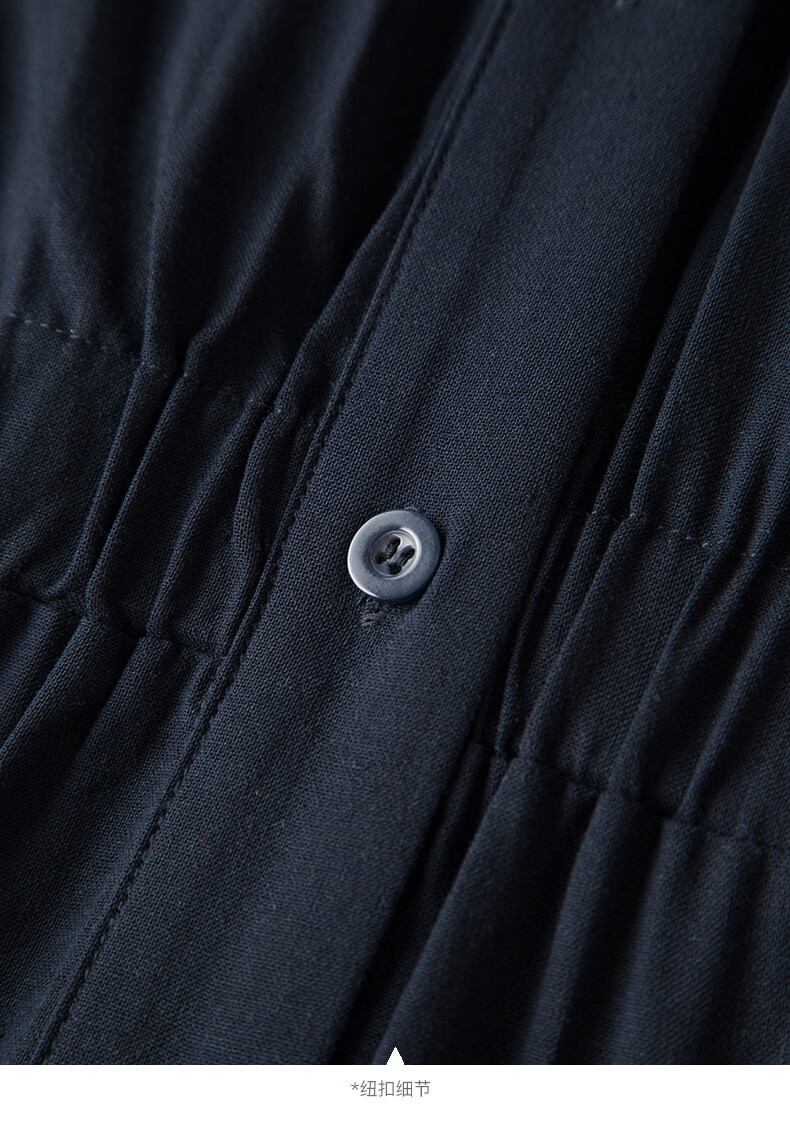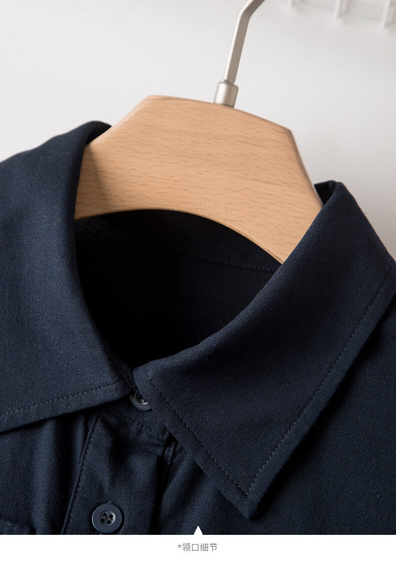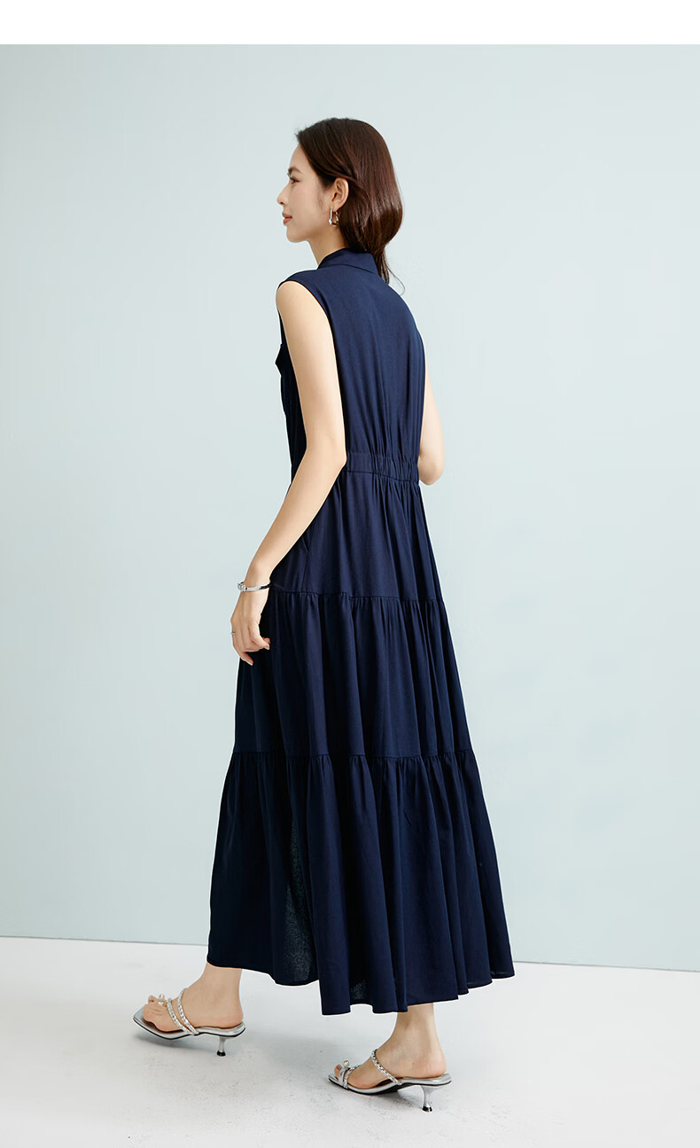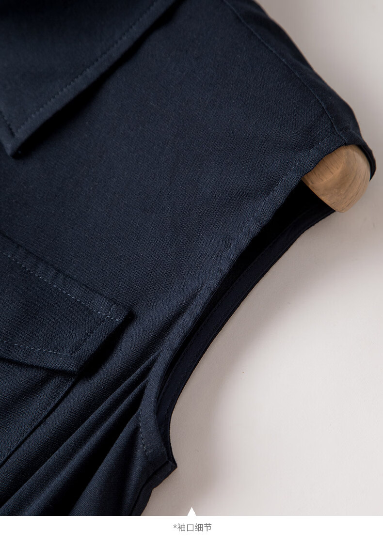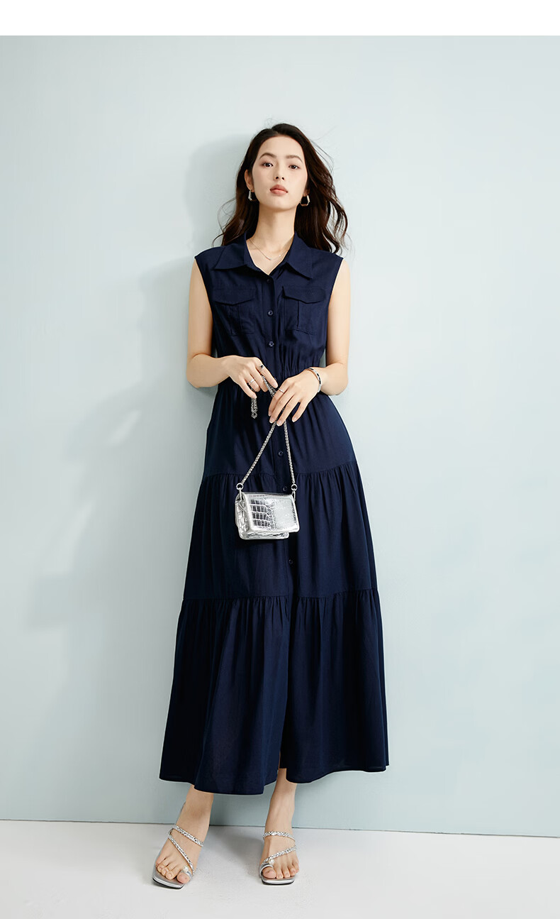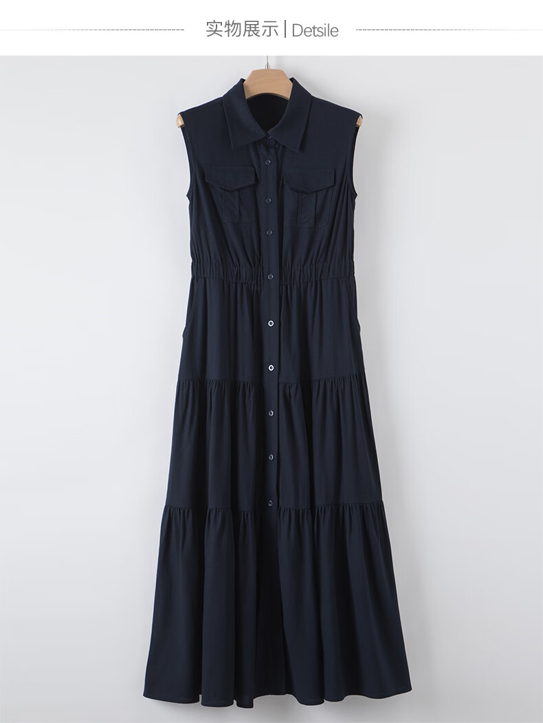 晚白【新品】2026年春款翻领衬衫裙亲肤棉麻休闲高腰无袖连衣裙 深蓝色 S