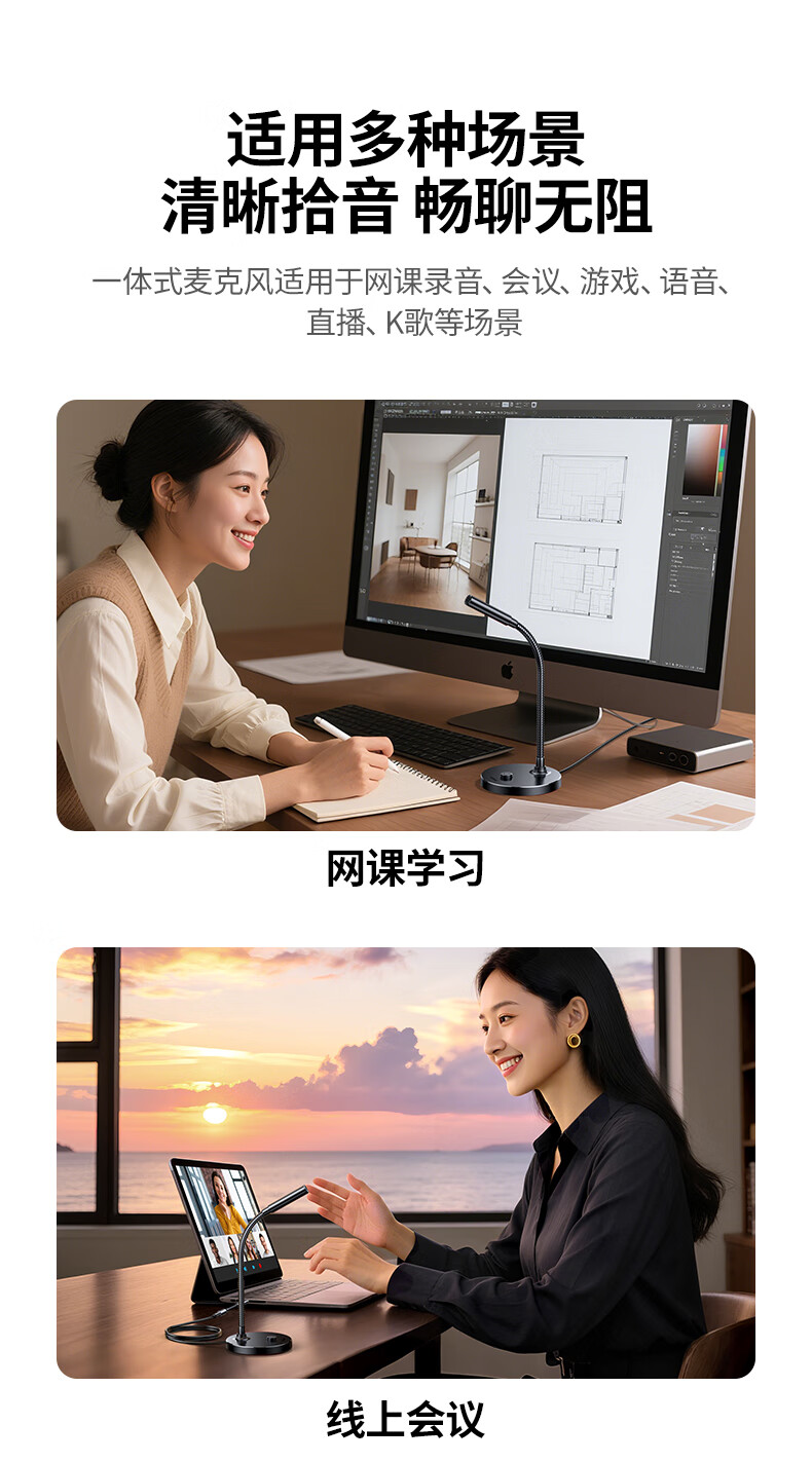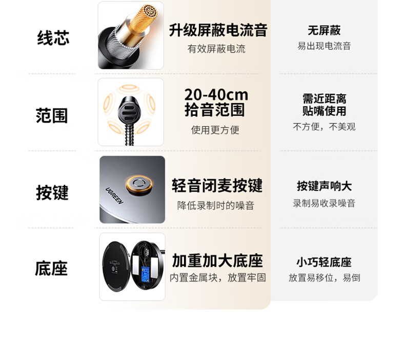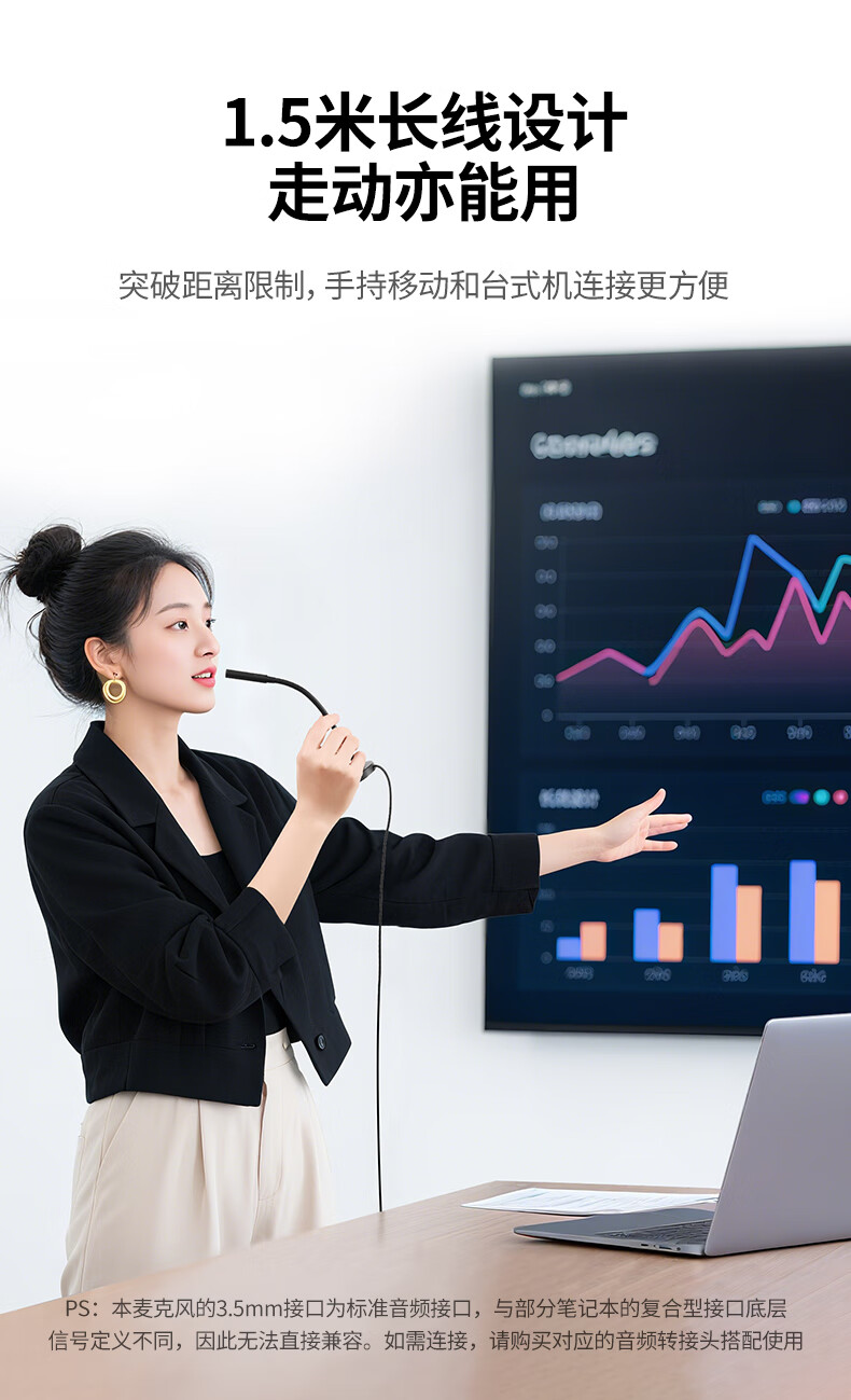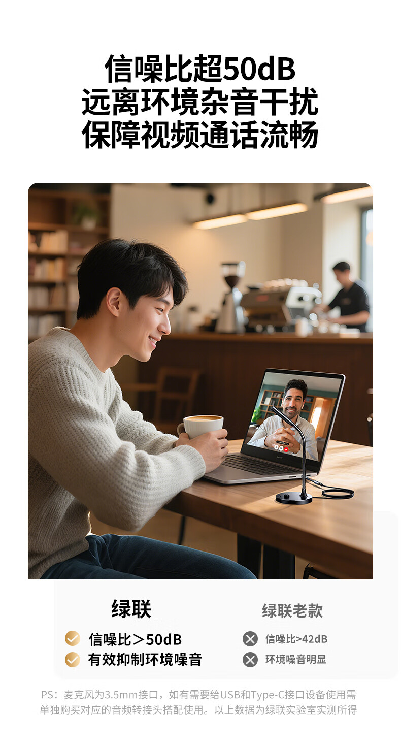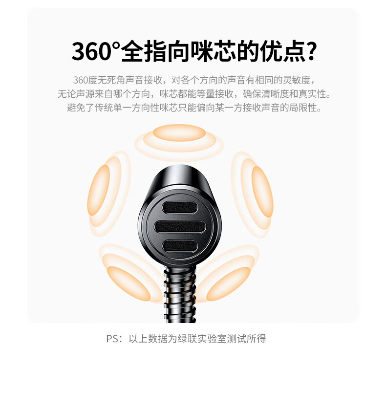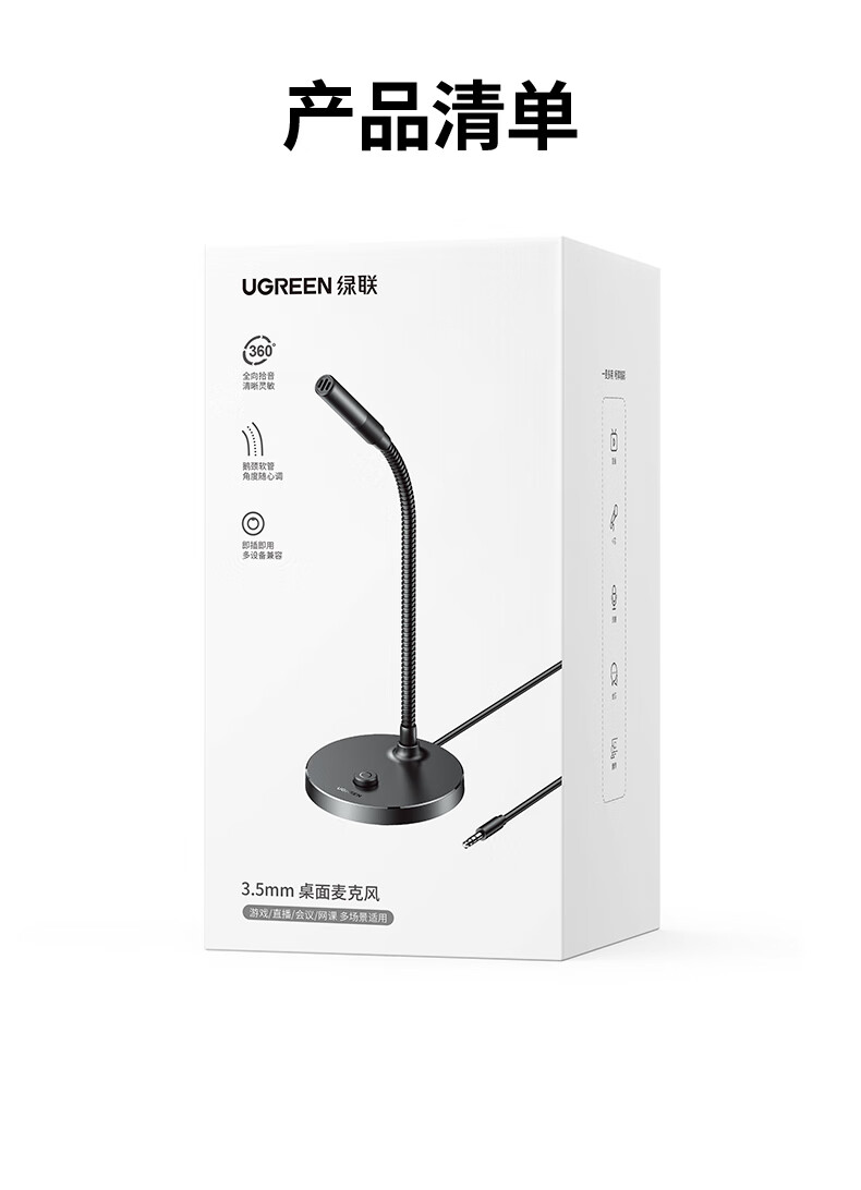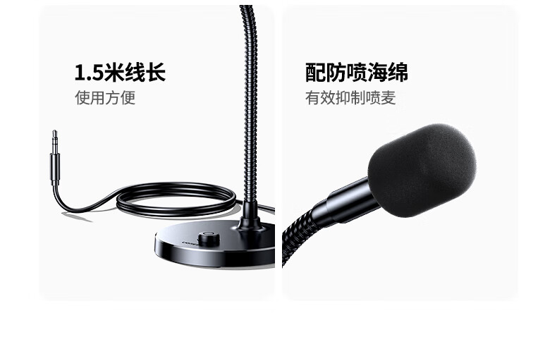 绿联3.5mm电脑麦克风台式机游戏桌面麦主播收音麦电脑外置话筒适用K歌语音会议设备1.5米款75574
