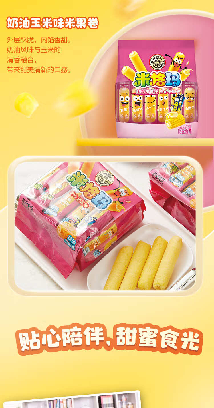 徐福记米格玛夹心米果卷奶油玉米味178g/袋休闲零食早餐小包装解馋零食