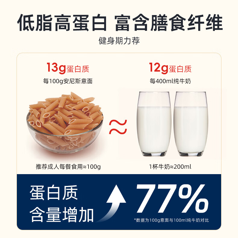 安尼斯全麦直条形意面500g意大利进口传统意面低脂高蛋白健身细意面意粉