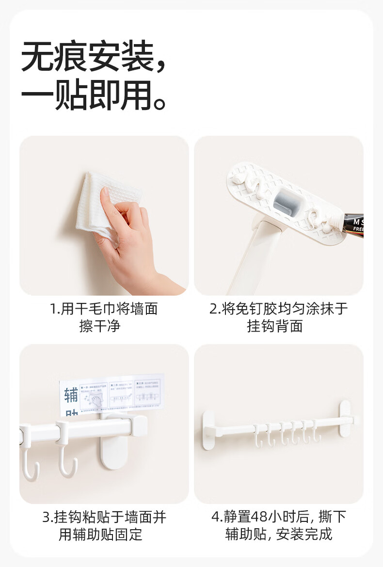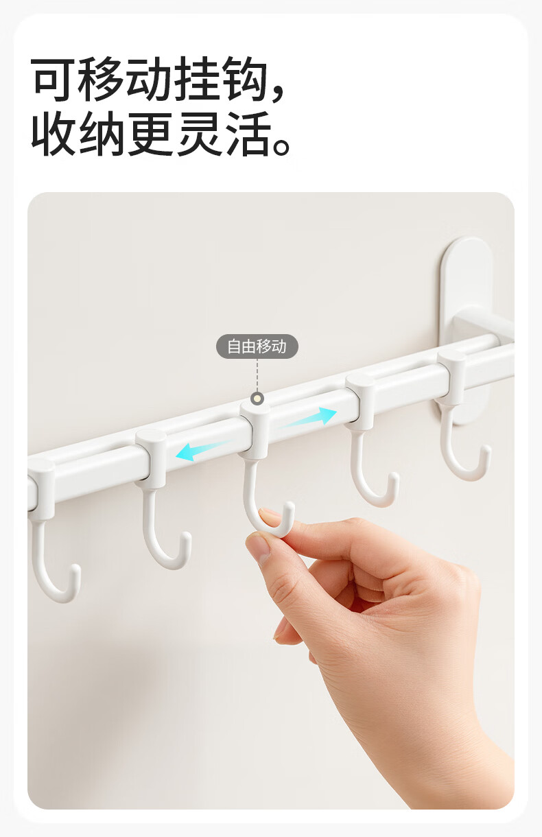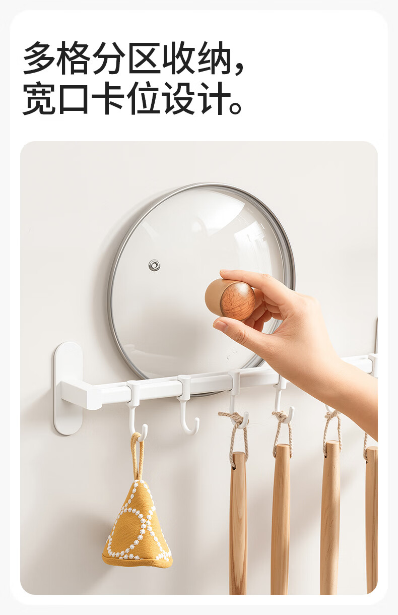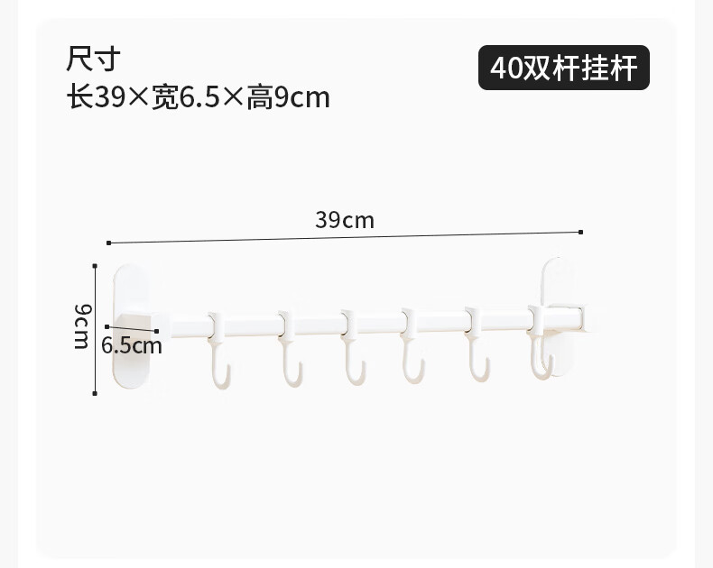 禧天龙厨房挂钩免打孔挂杆厨房置物架锅铲勺子挂架不锈钢排钩壁挂式收纳 【不锈钢厨房排钩】39cm6钩
