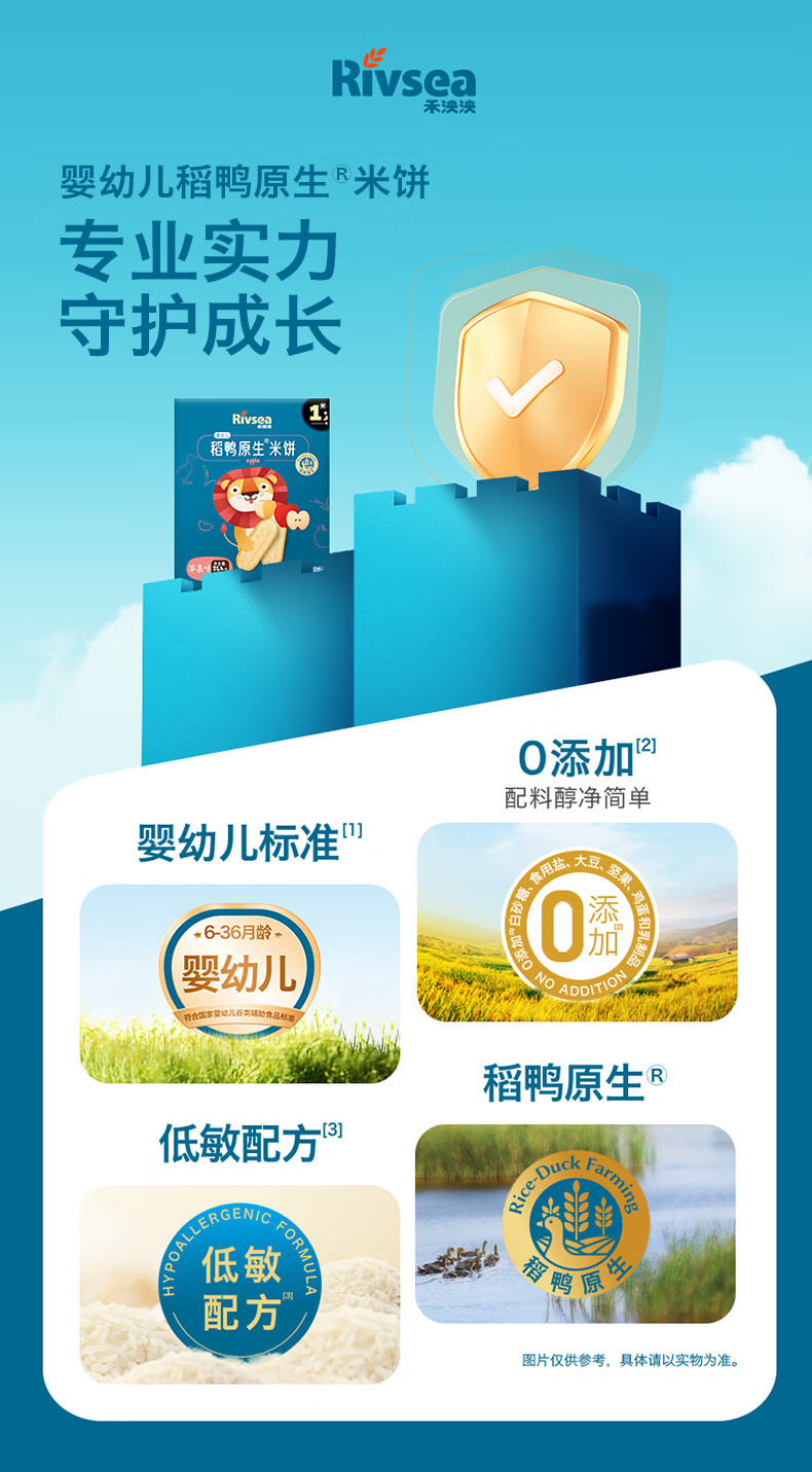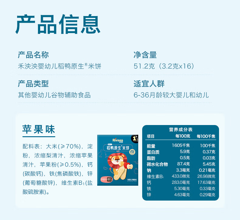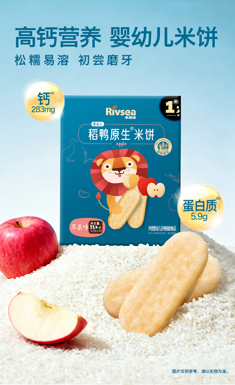 禾泱泱婴幼儿稻鸭原生米饼苹果味51.2g(32片)高钙含蛋白质宝宝零食6月+