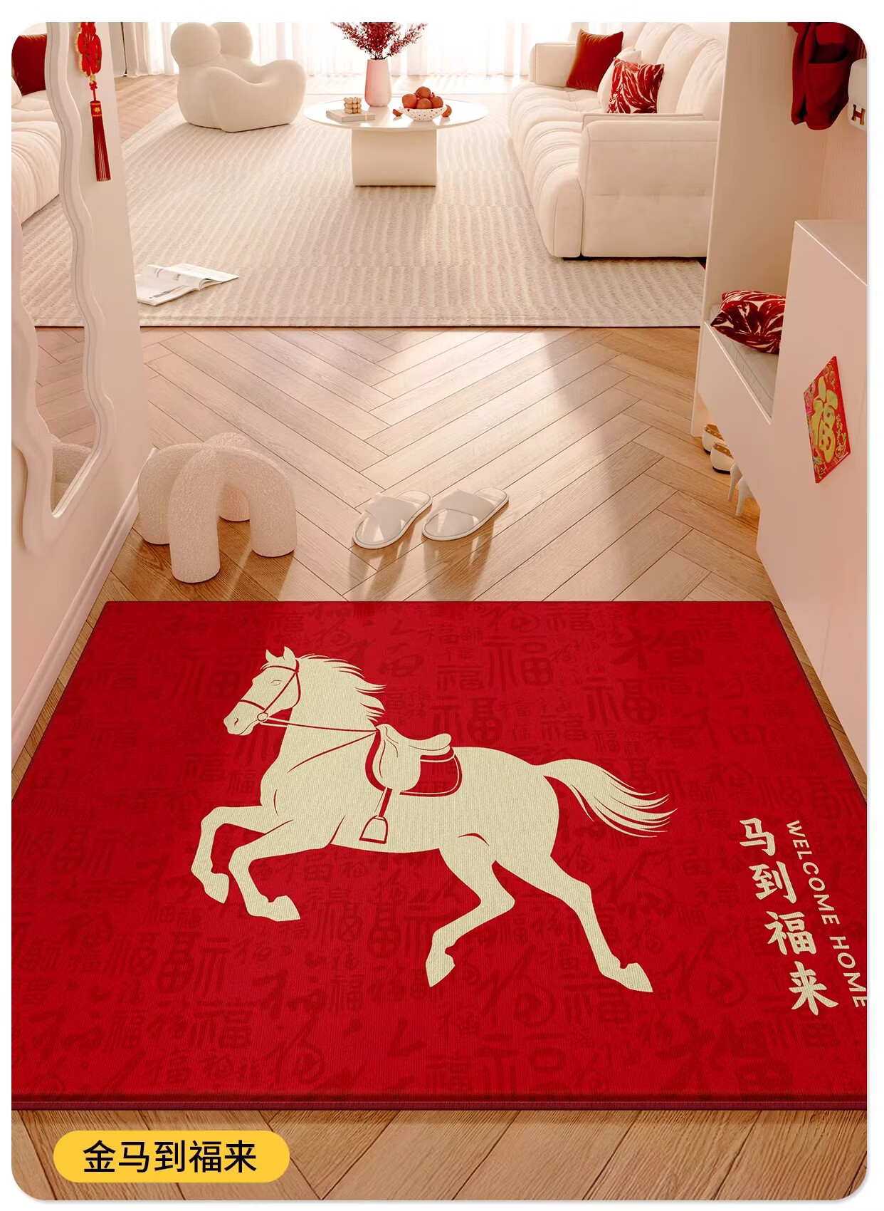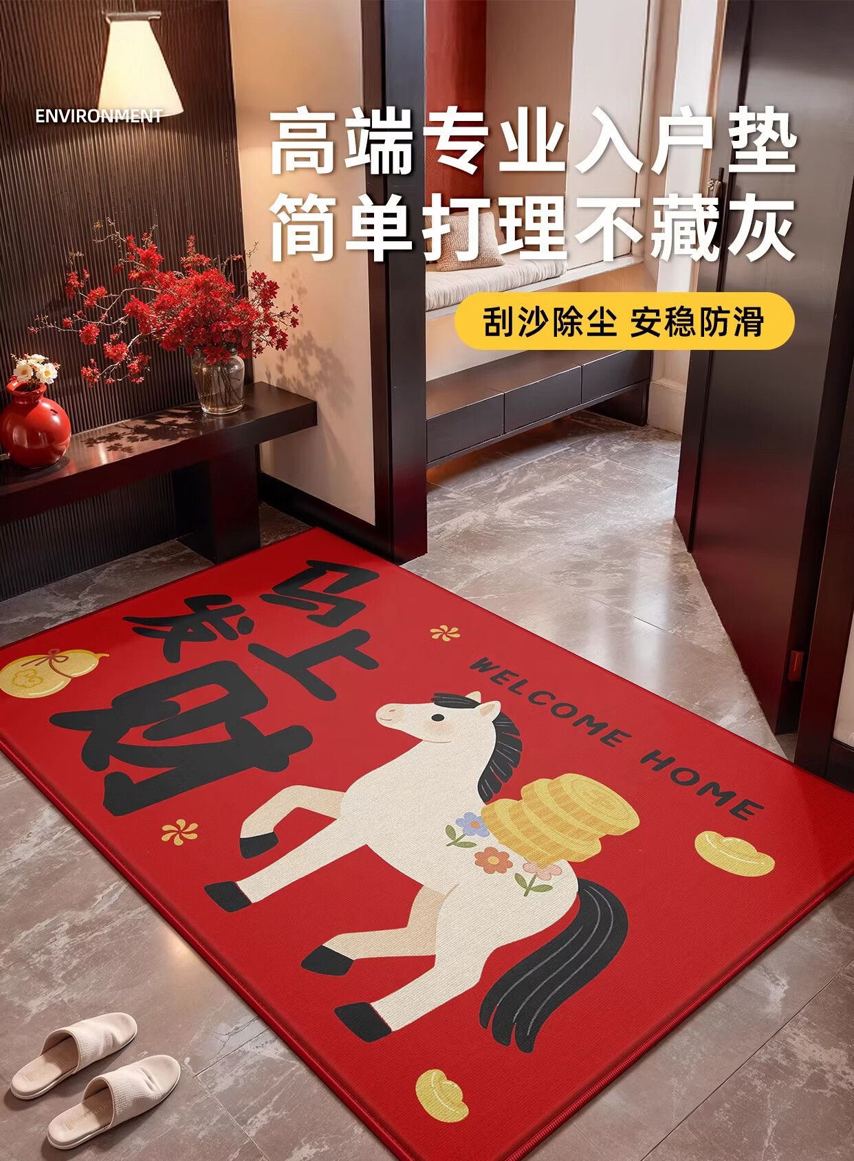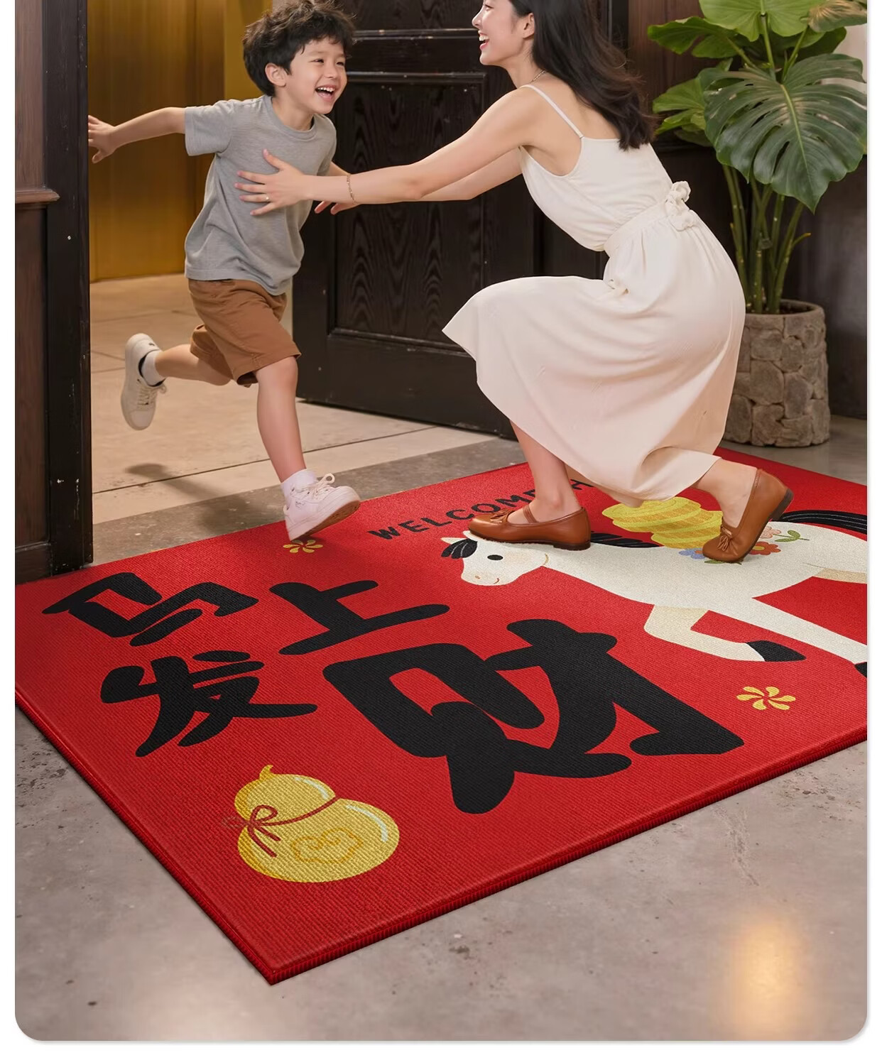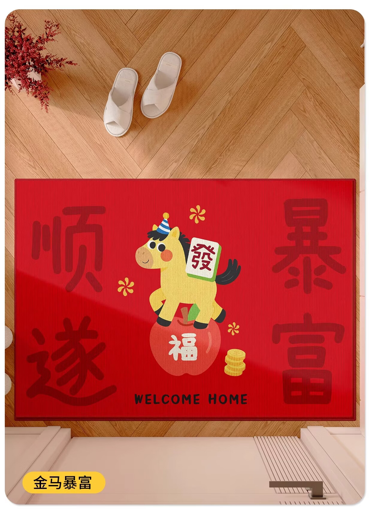 Y U-LIVE入户门地垫红色进门门口脚垫新年耐脏防水2026新款家用防滑可 法兰绒-马上发财啦 60×90cm【尝新小尺寸】