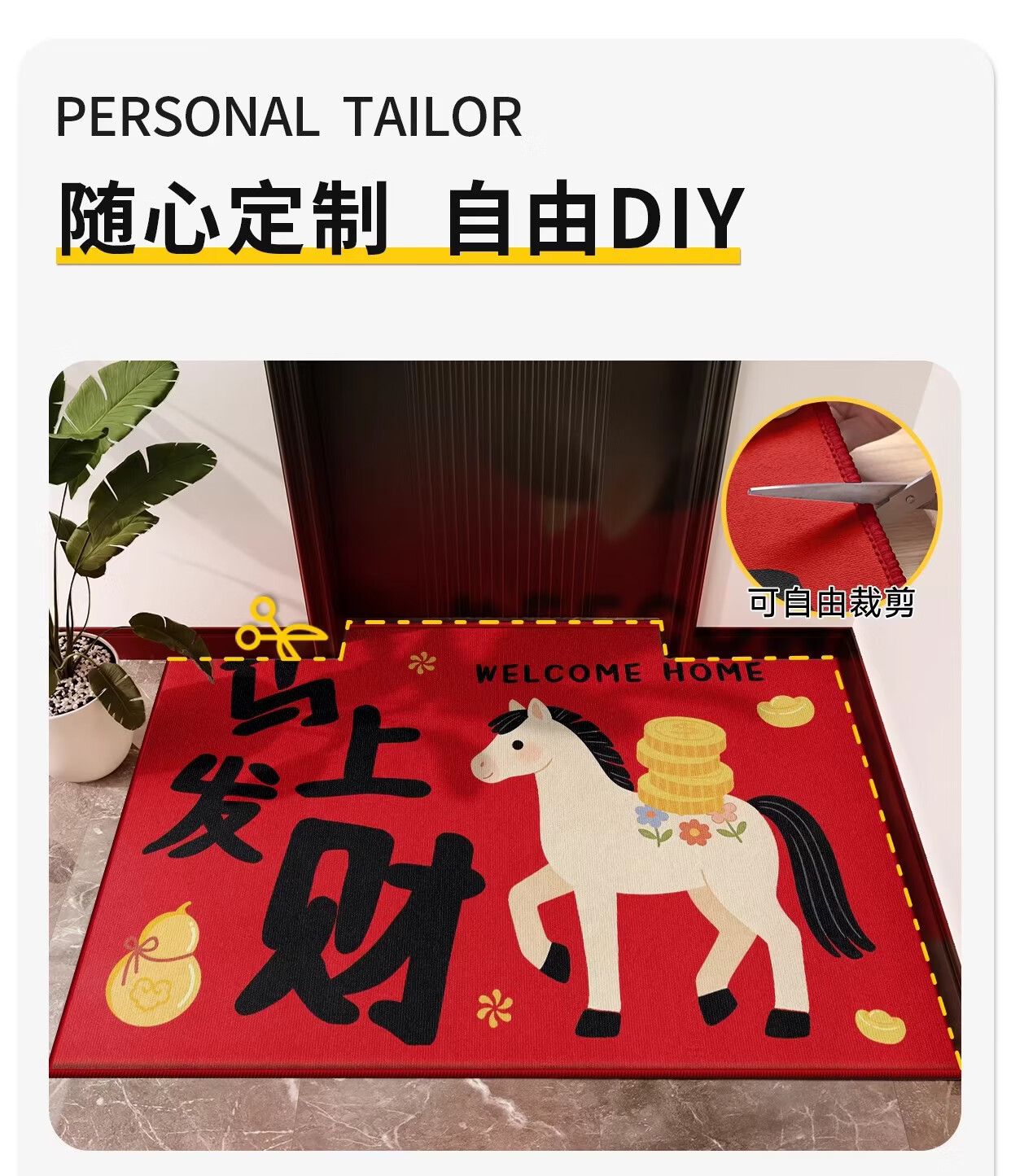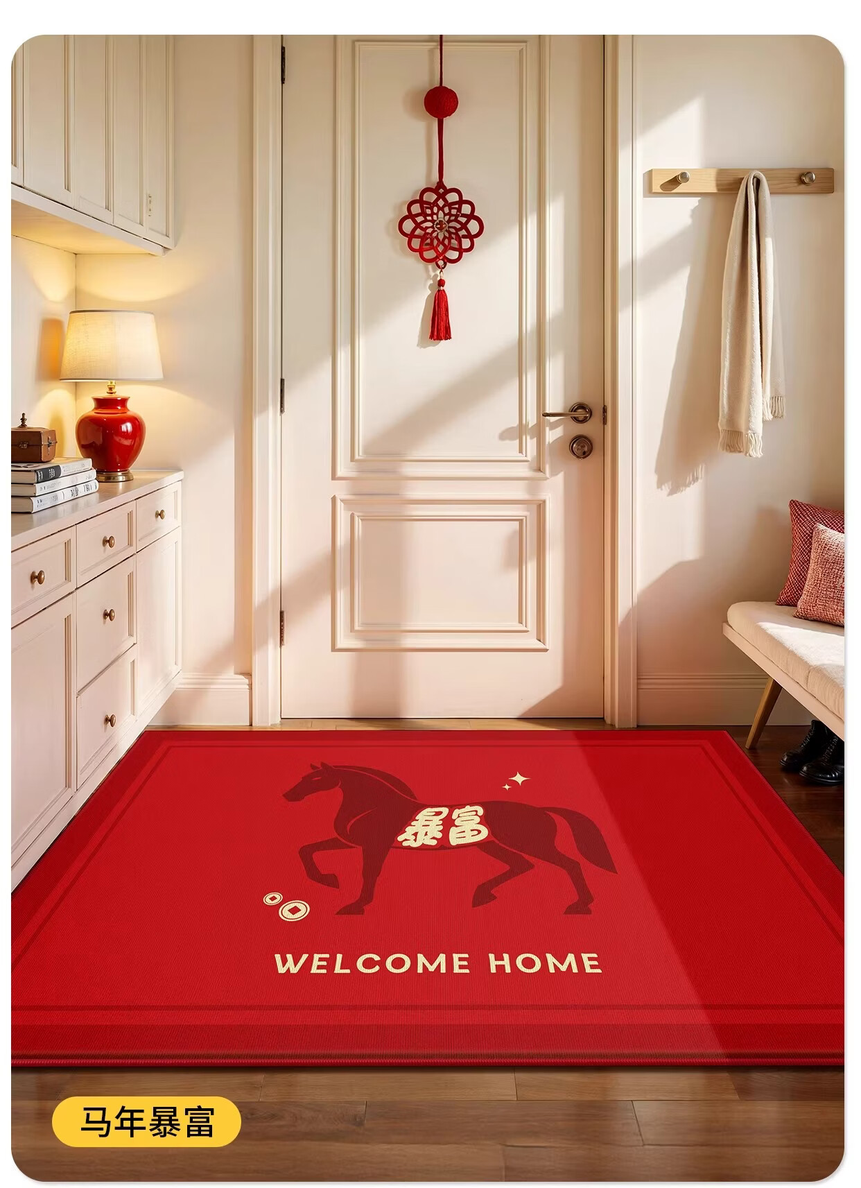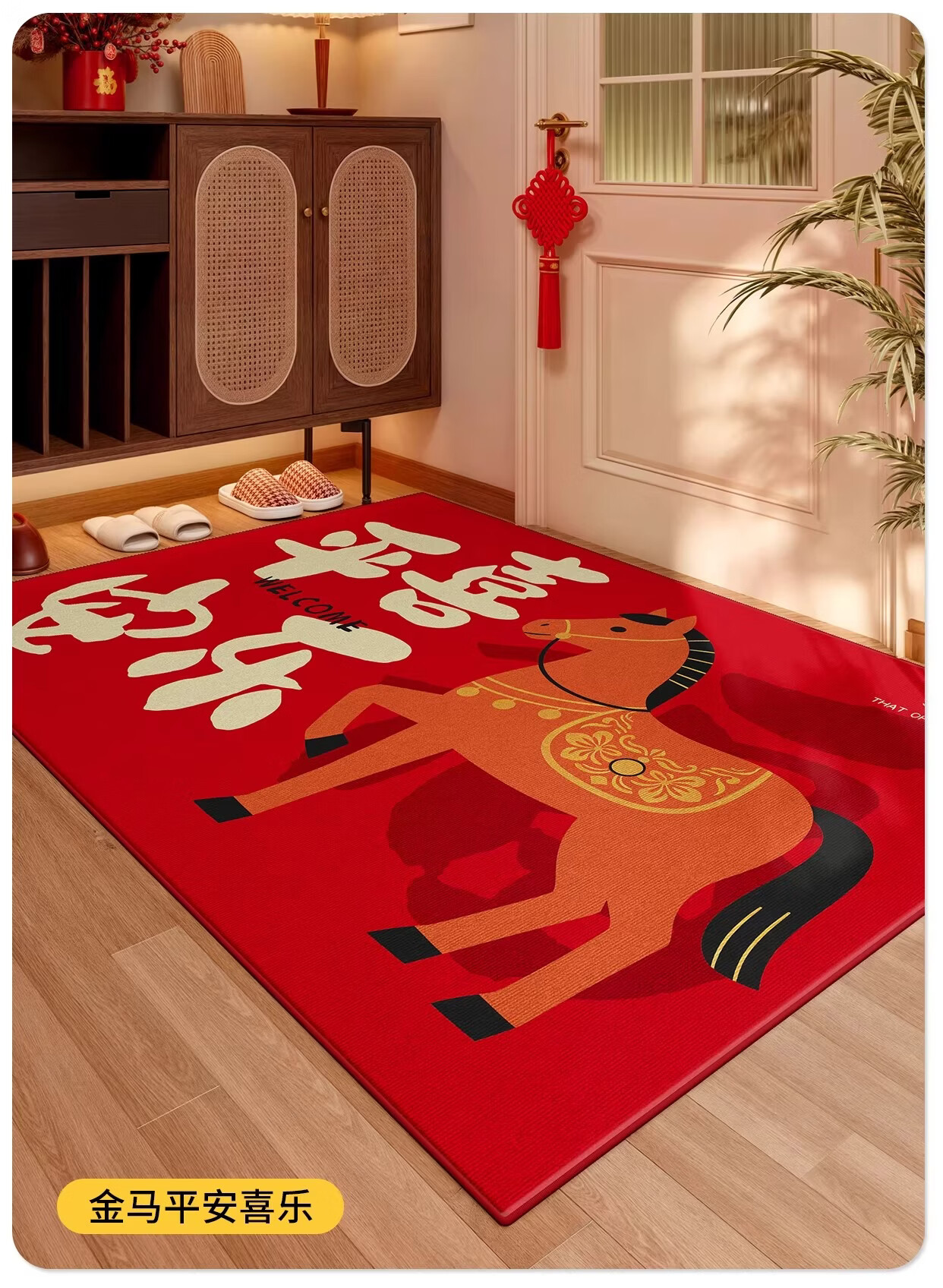 Y U-LIVE入户门地垫红色进门门口脚垫新年耐脏防水2026新款家用防滑可 法兰绒-马上发财啦 60×90cm【尝新小尺寸】