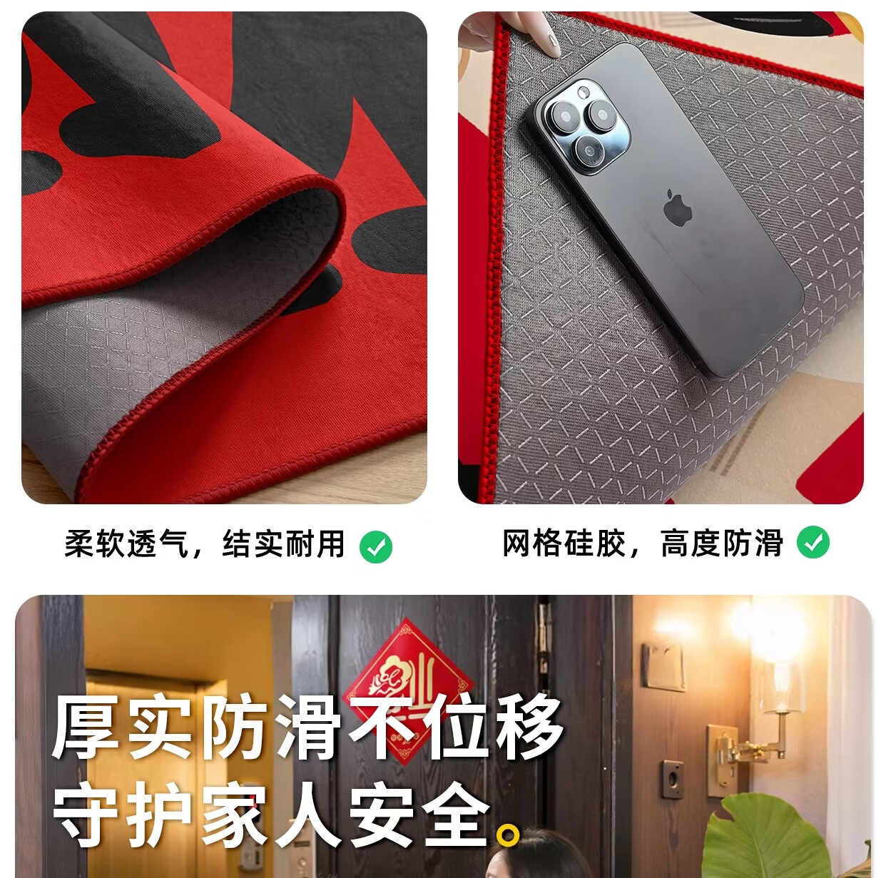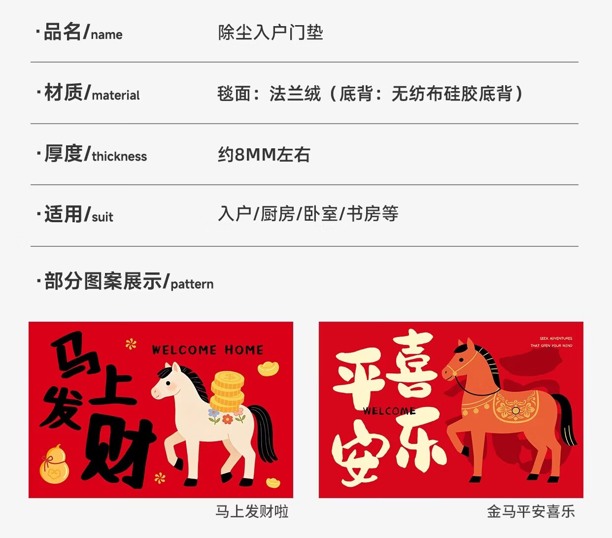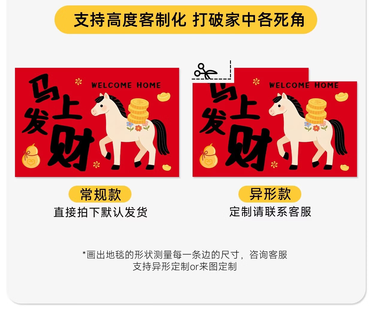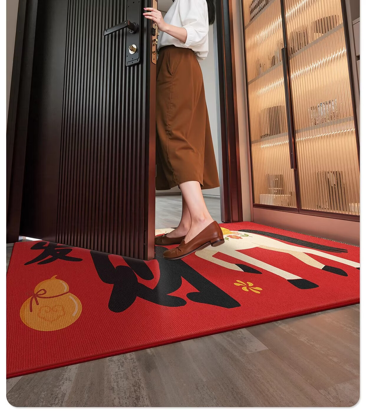 Y U-LIVE入户门地垫红色进门门口脚垫新年耐脏防水2026新款家用防滑可 法兰绒-马上发财啦 60×90cm【尝新小尺寸】
