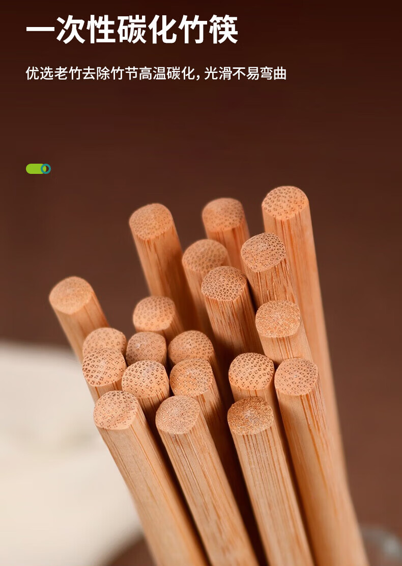乌斯京一次性筷子免洗碳化竹筷独立包装50双 家用野营快餐外卖打包餐具