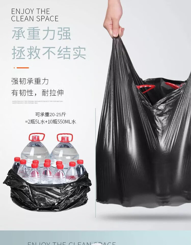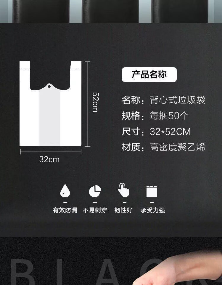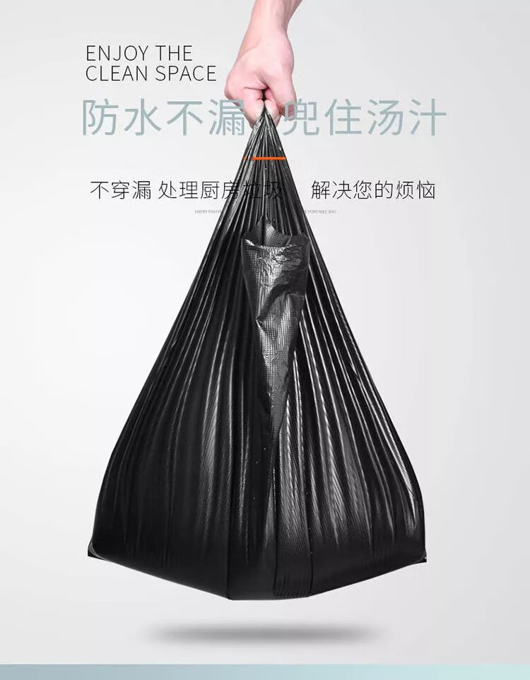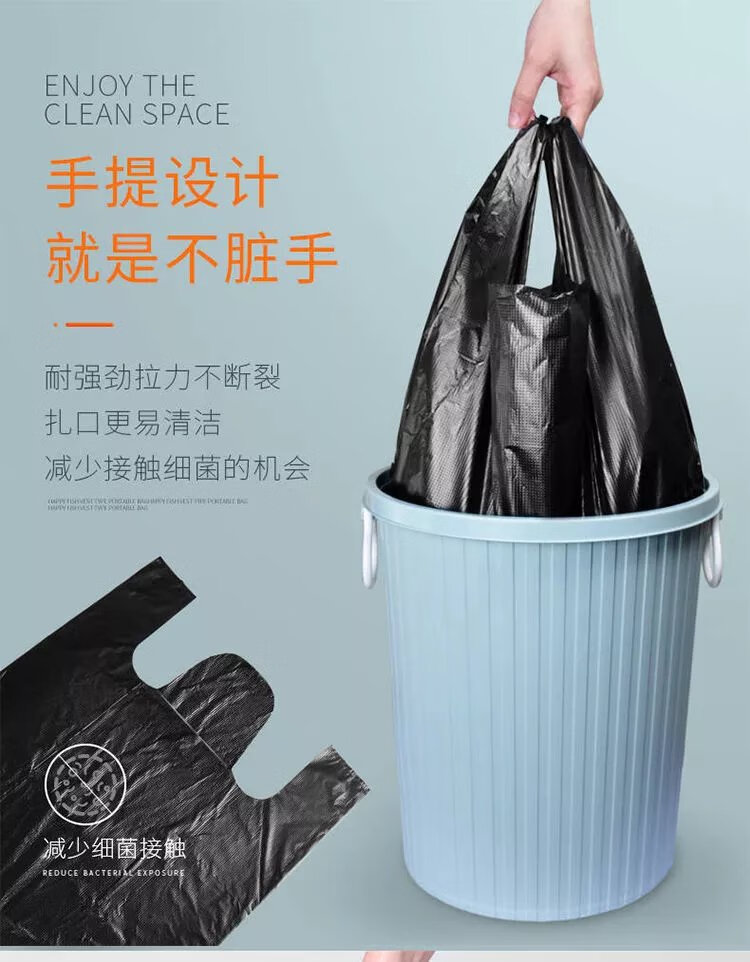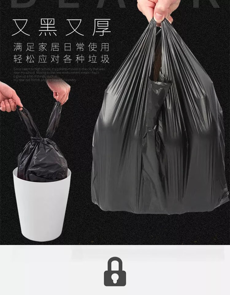 【精选】家用厨房垃圾袋加厚大号黑色手提心式拉圾袋一次性塑料 M款承重2.5斤【50只】 加厚
