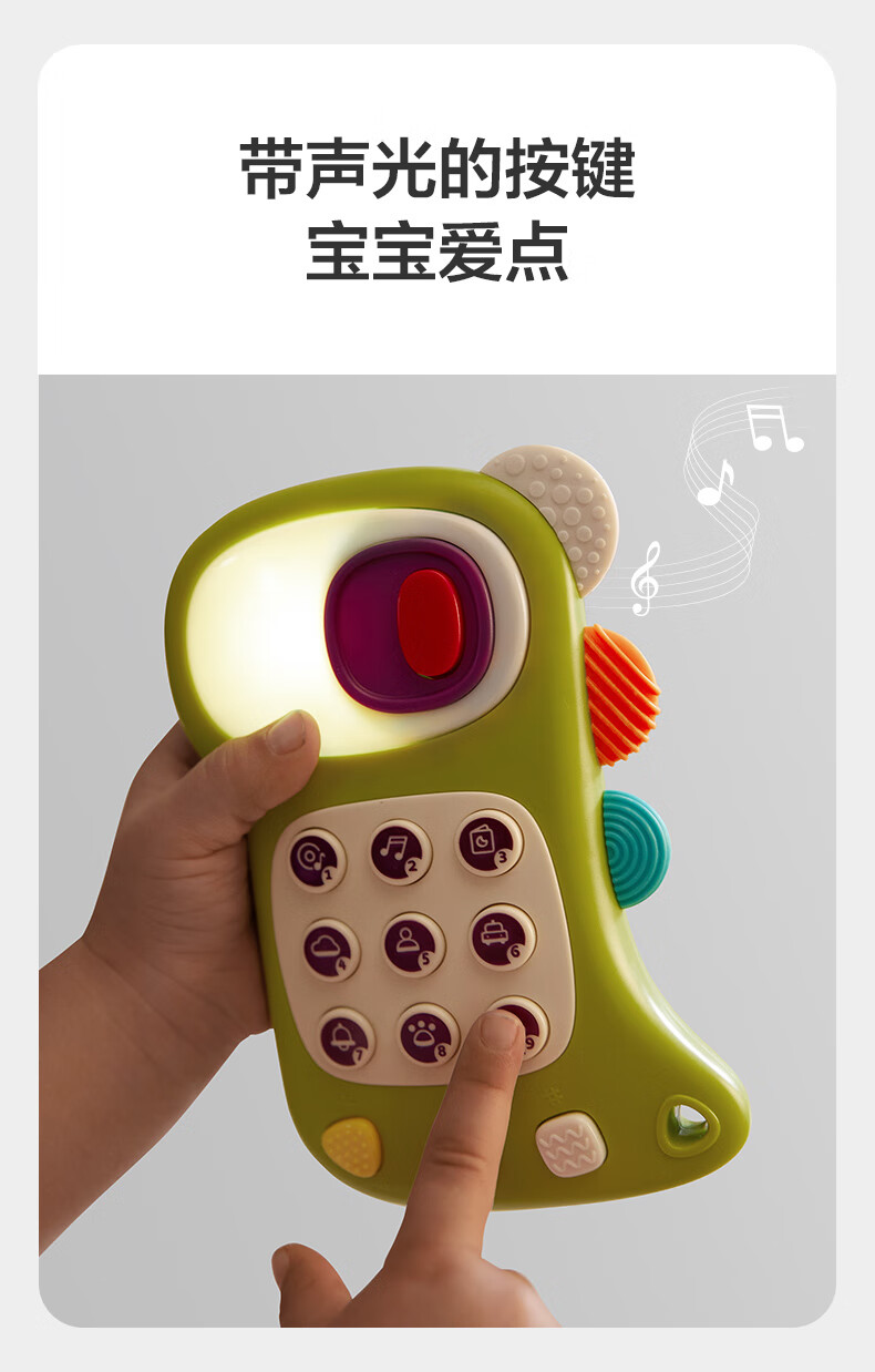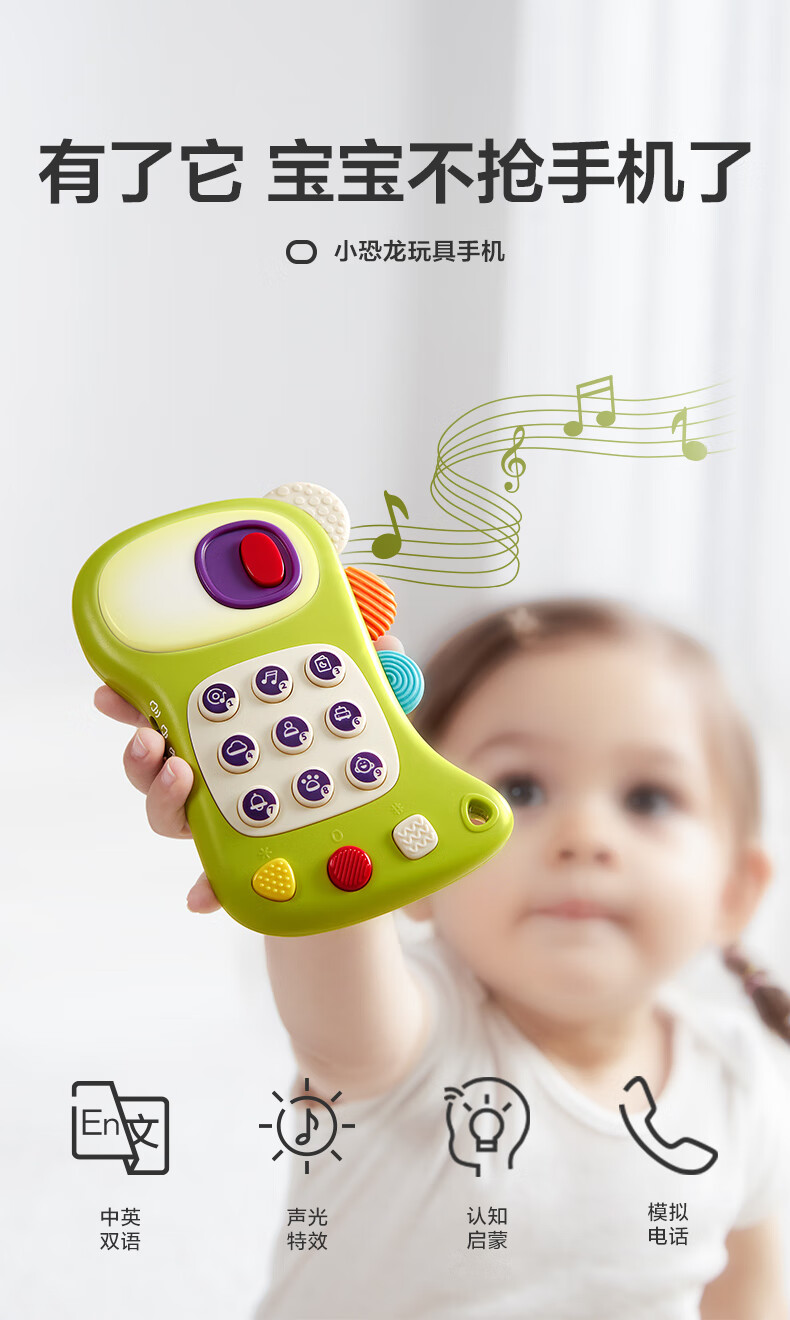 babycare儿童玩具手机婴儿宝宝趣味电话中英文双语音乐电话玩具青芥绿