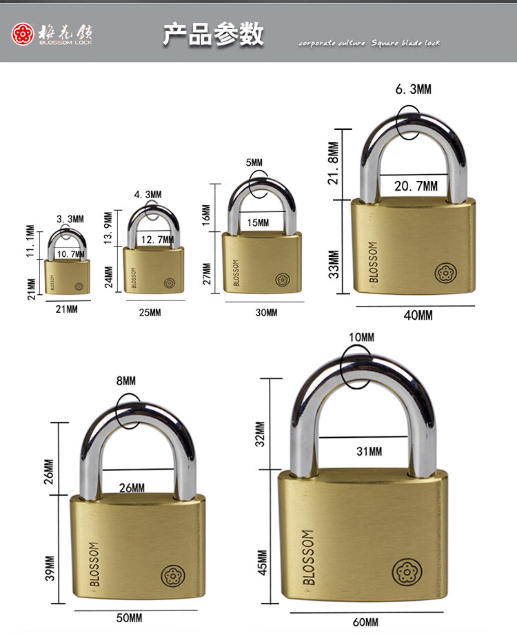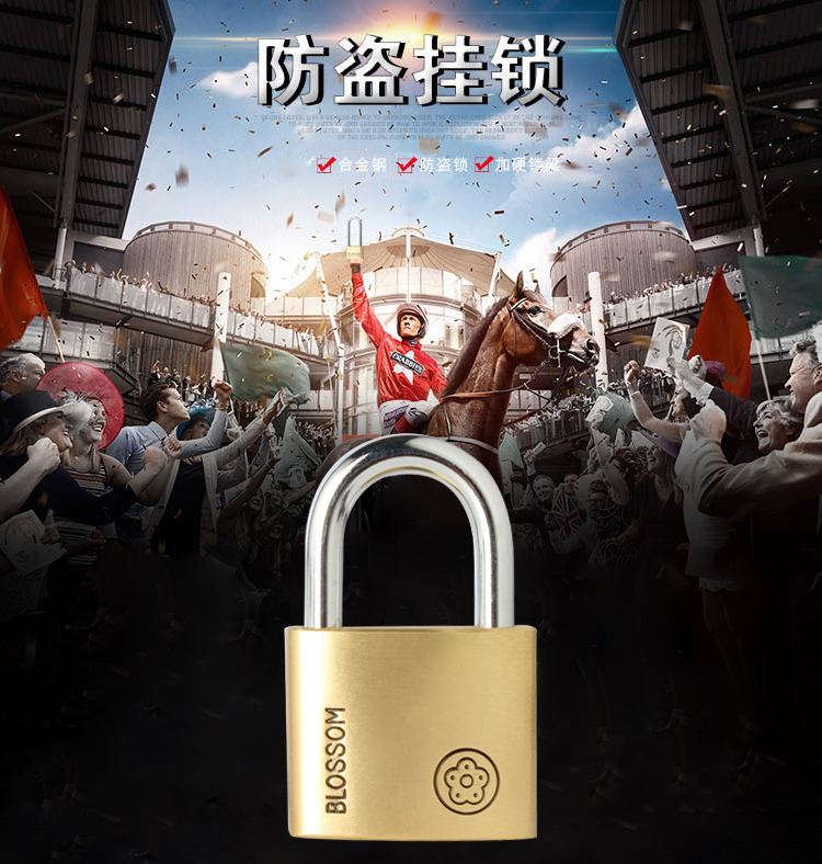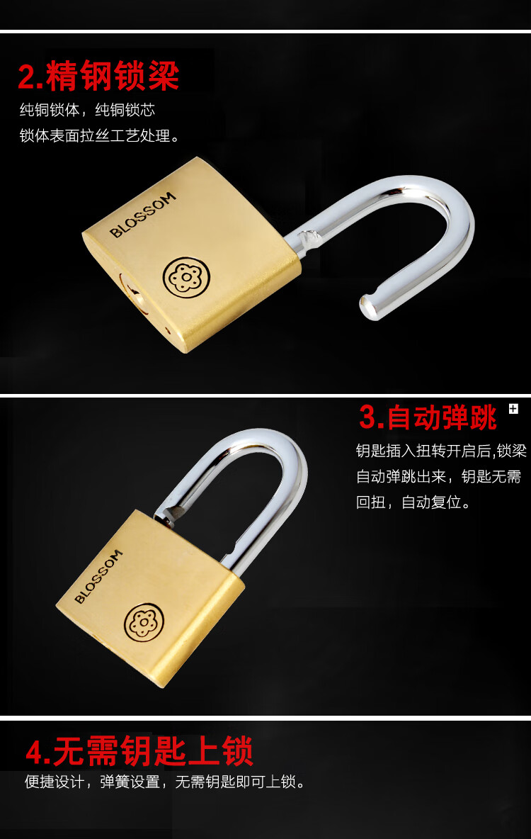 梅花(BLOSSOM)铜挂锁 自动门锁60MM 防水防锈仓库学校大铁门锁9060