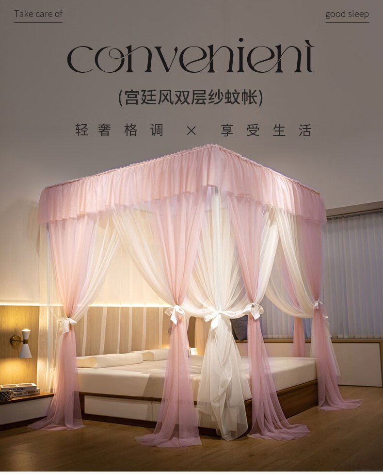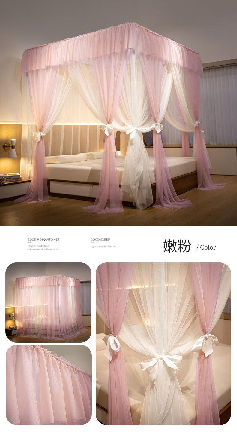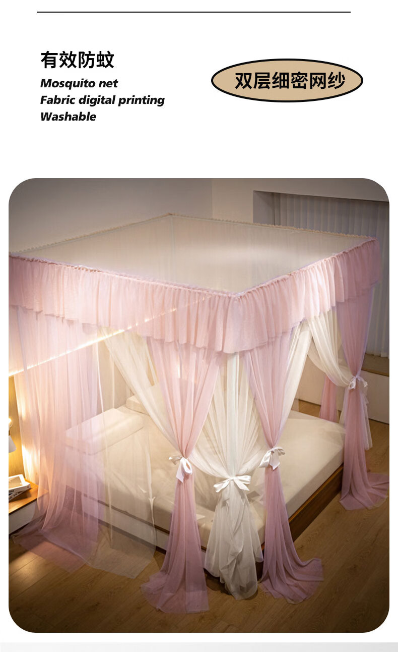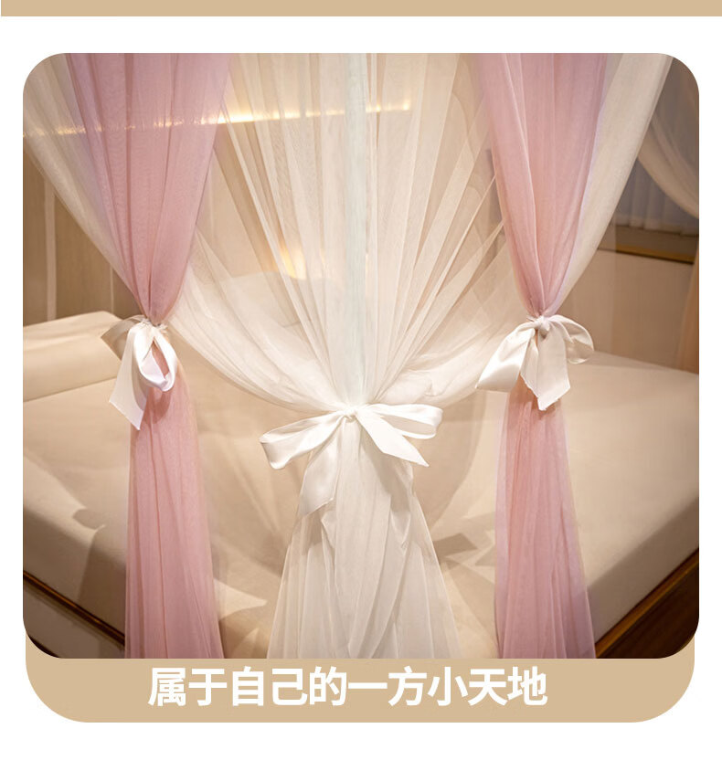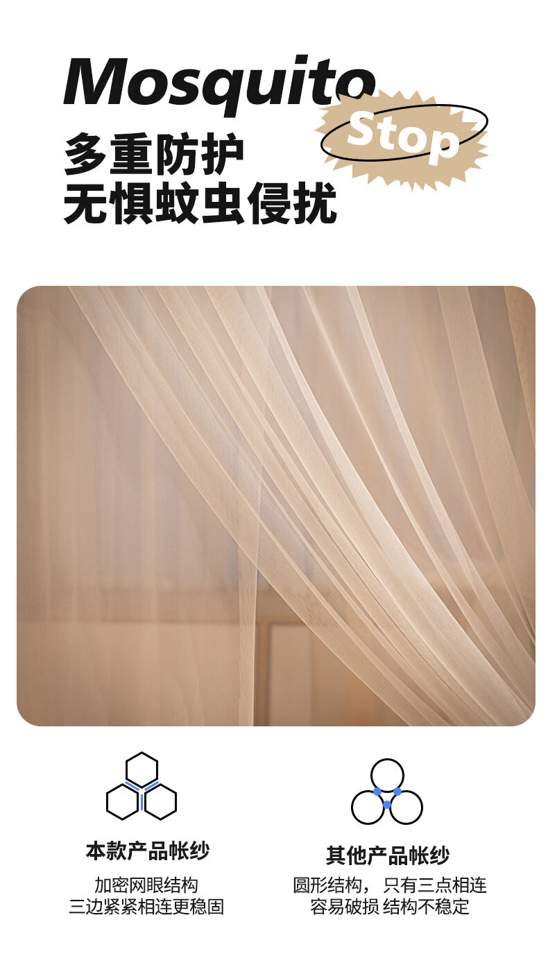 无印良品宫廷风落地蚊帐1.8x2米家用卧室加粗支架三开门双层防蚊帐纱床幔 香槟【母婴级双层帐纱】 120cm*200cm*210cm 加高加粗烤漆支架