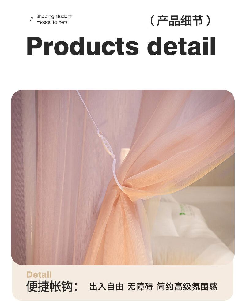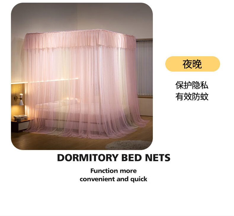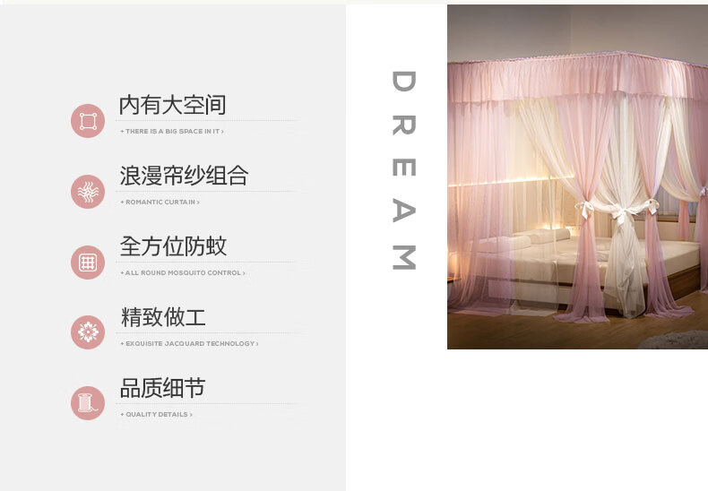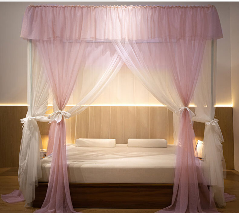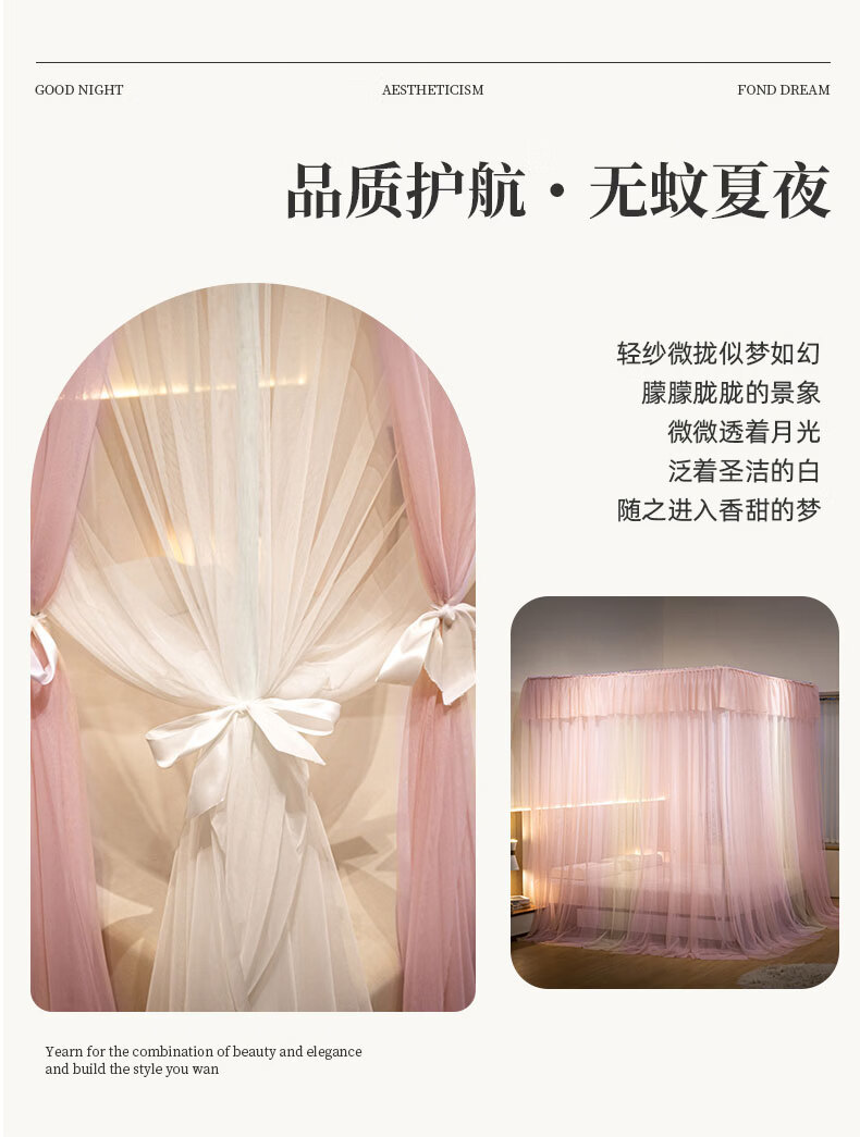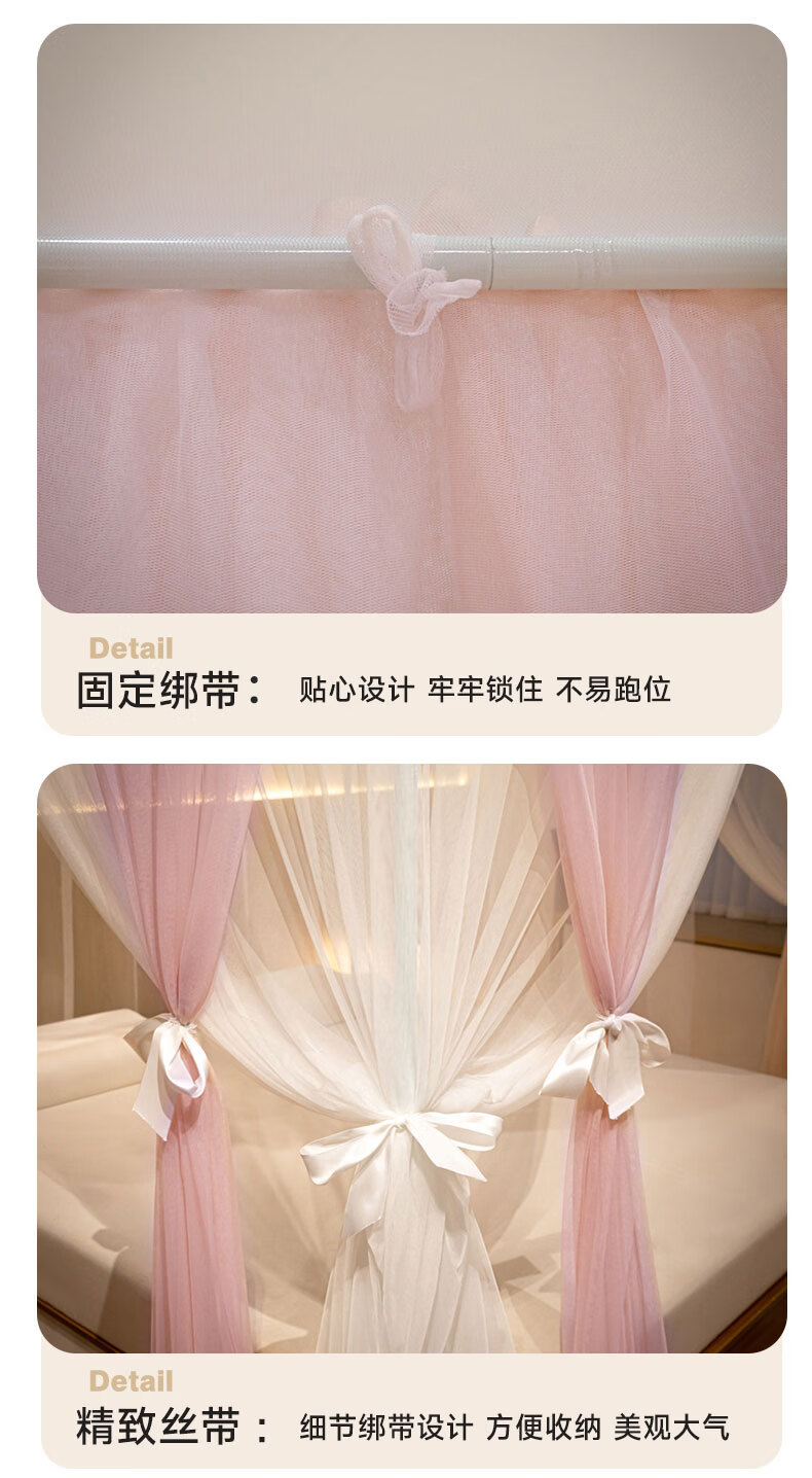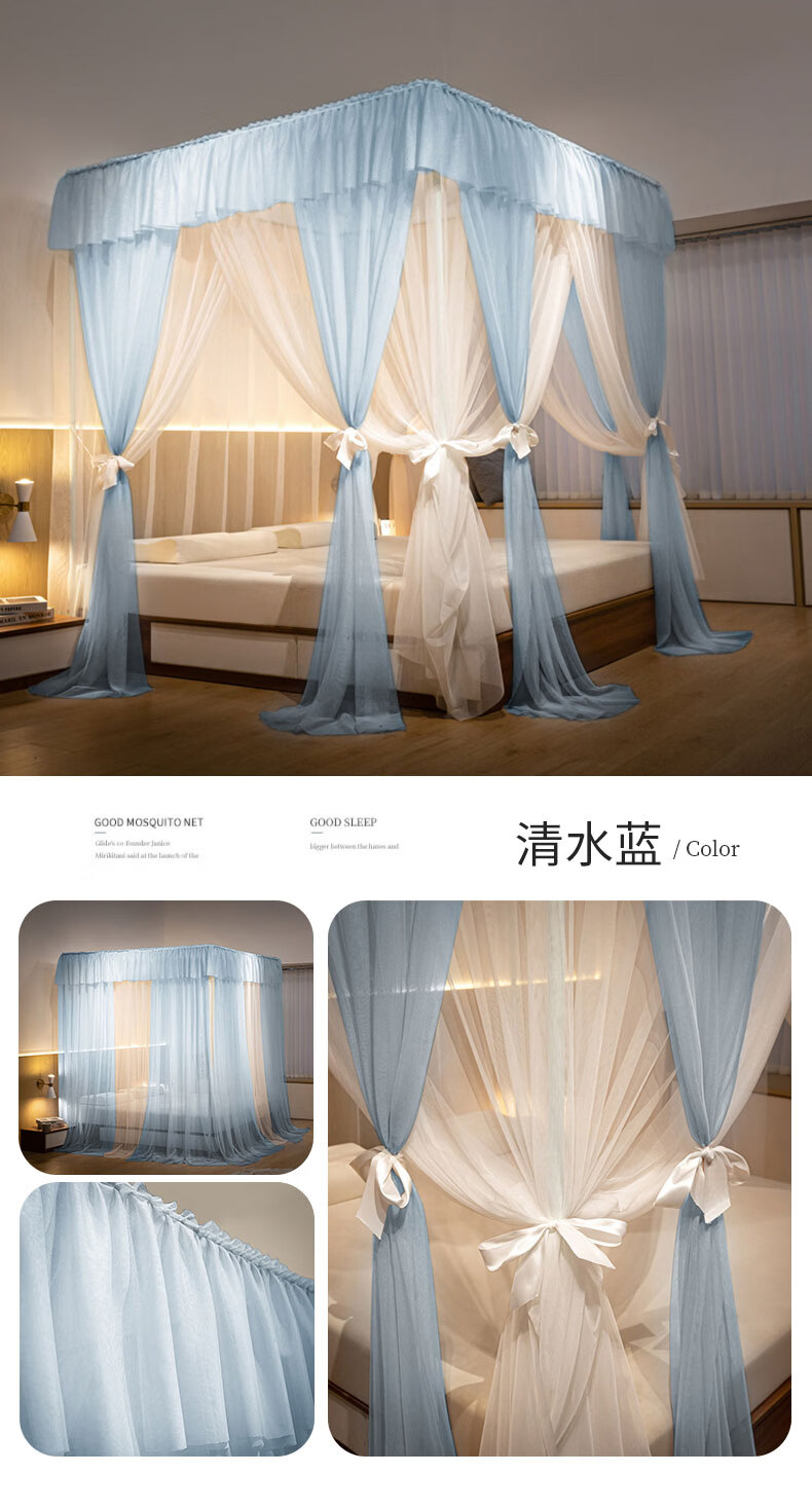无印良品宫廷风落地蚊帐1.8x2米家用卧室加粗支架三开门双层防蚊帐纱床幔 香槟【母婴级双层帐纱】 120cm*200cm*210cm 加高加粗烤漆支架
