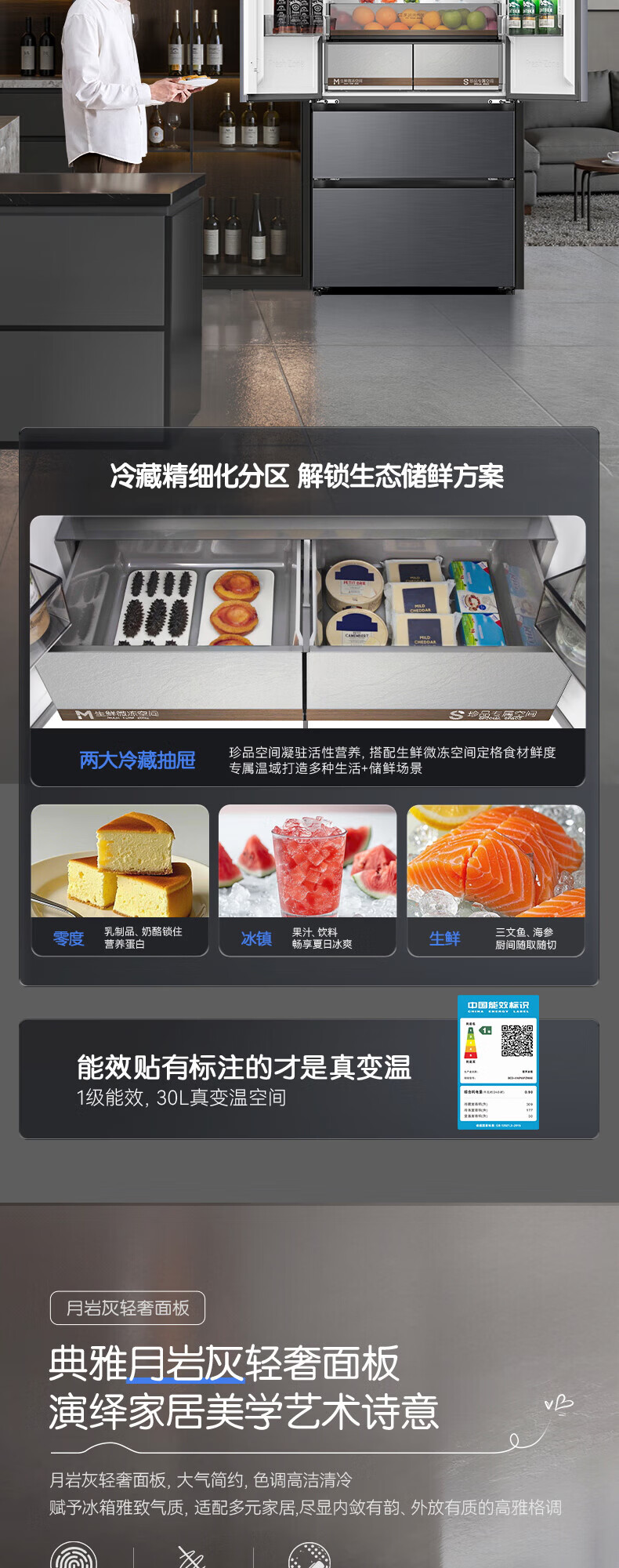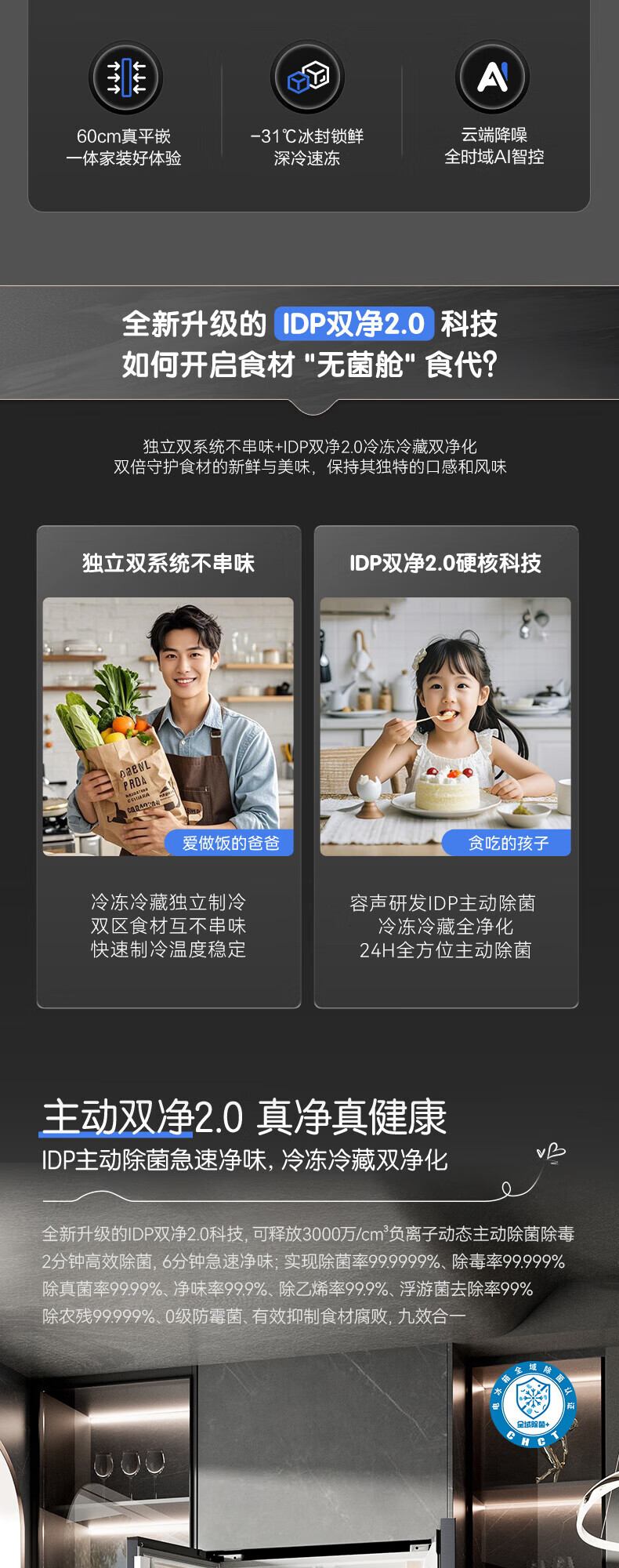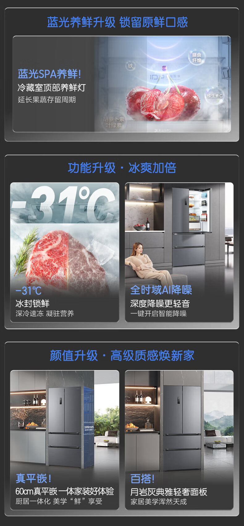 容声方糖516主动双净双系统法式多门四开门超薄零嵌入式电冰箱家用一级能效BCD-516P60FZMAE国家补贴 方糖516升双净双系统