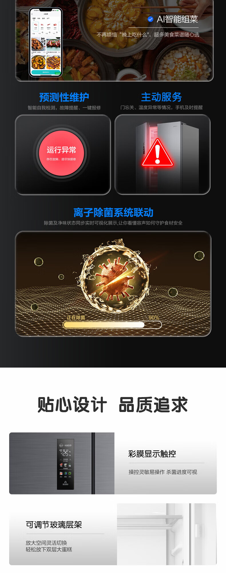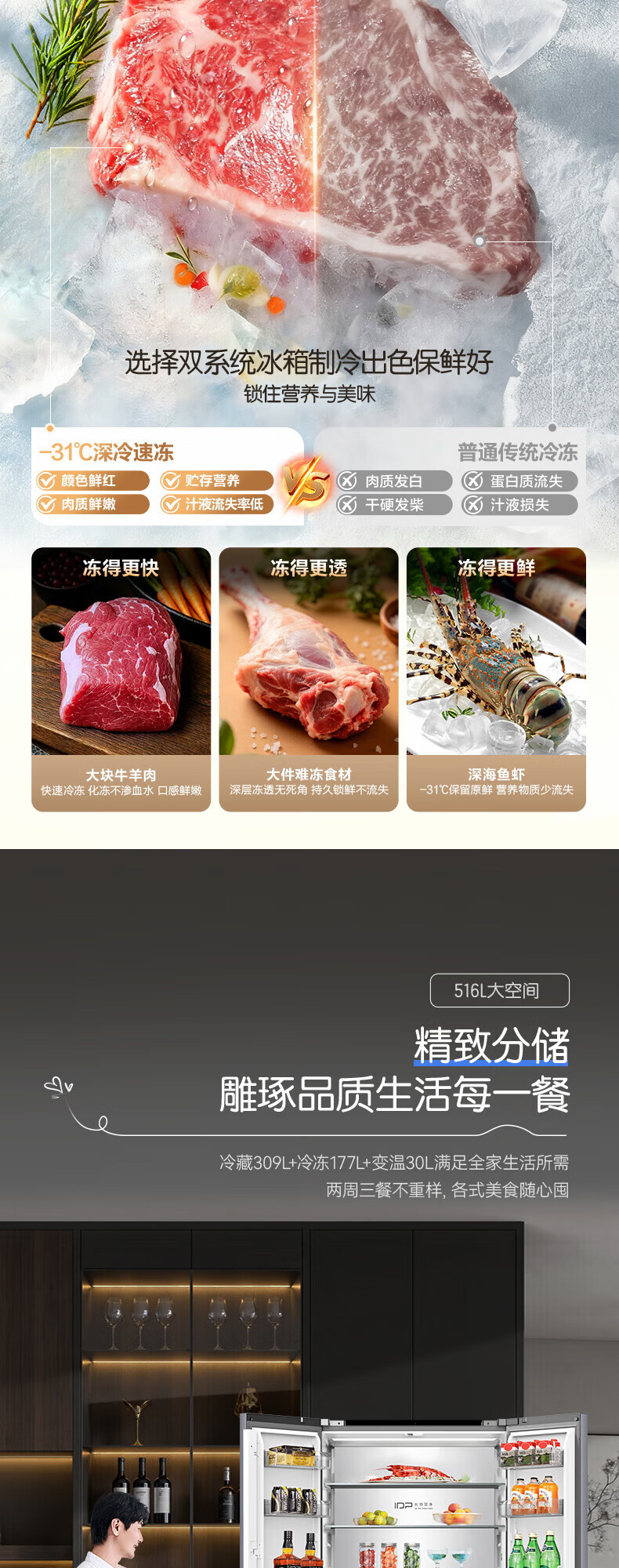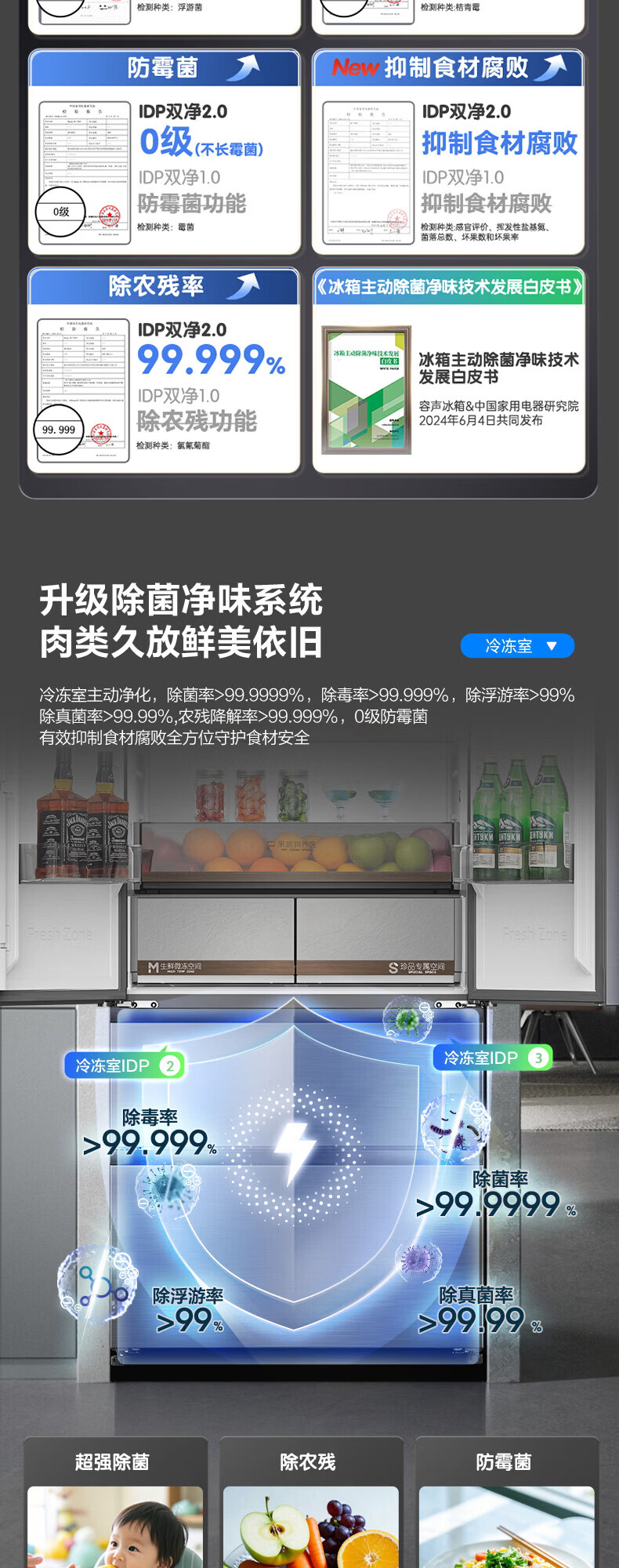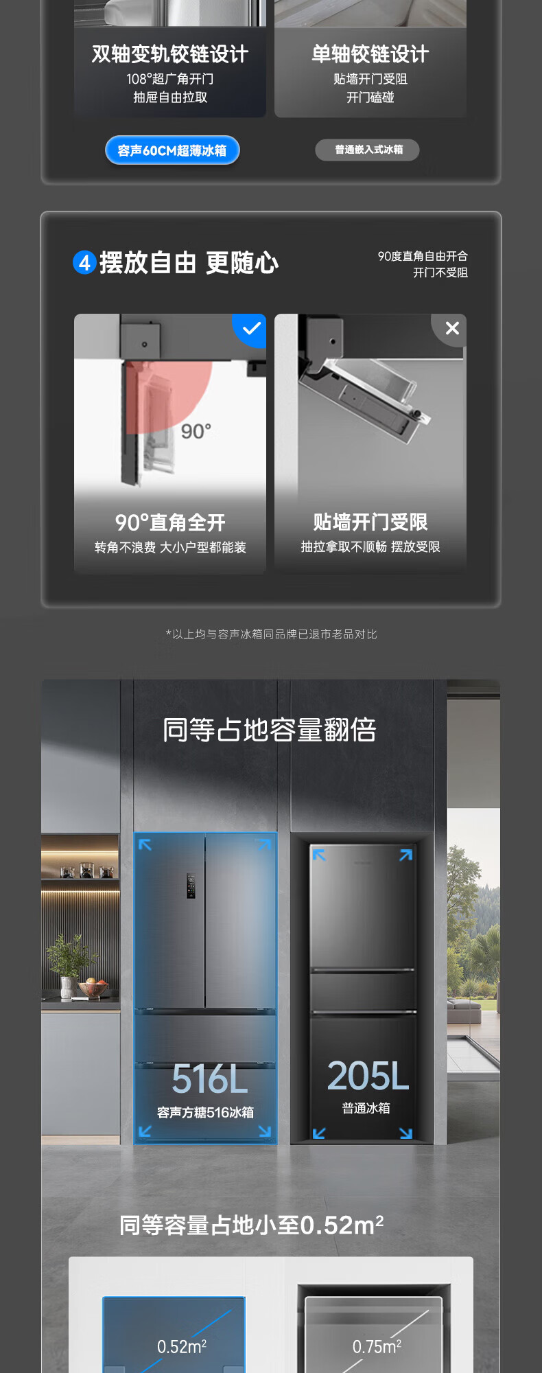 容声方糖516主动双净双系统法式多门四开门超薄零嵌入式电冰箱家用一级能效BCD-516P60FZMAE国家补贴 方糖516升双净双系统