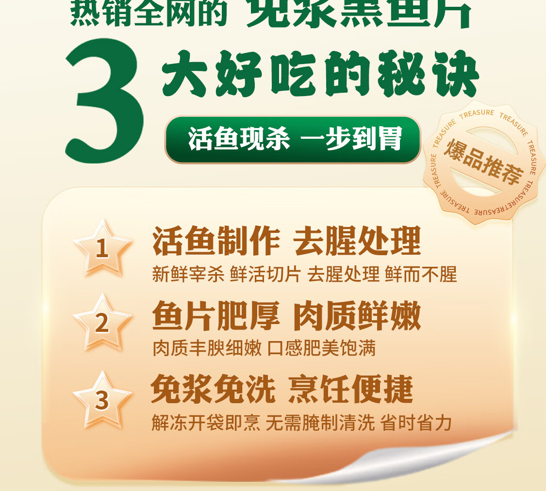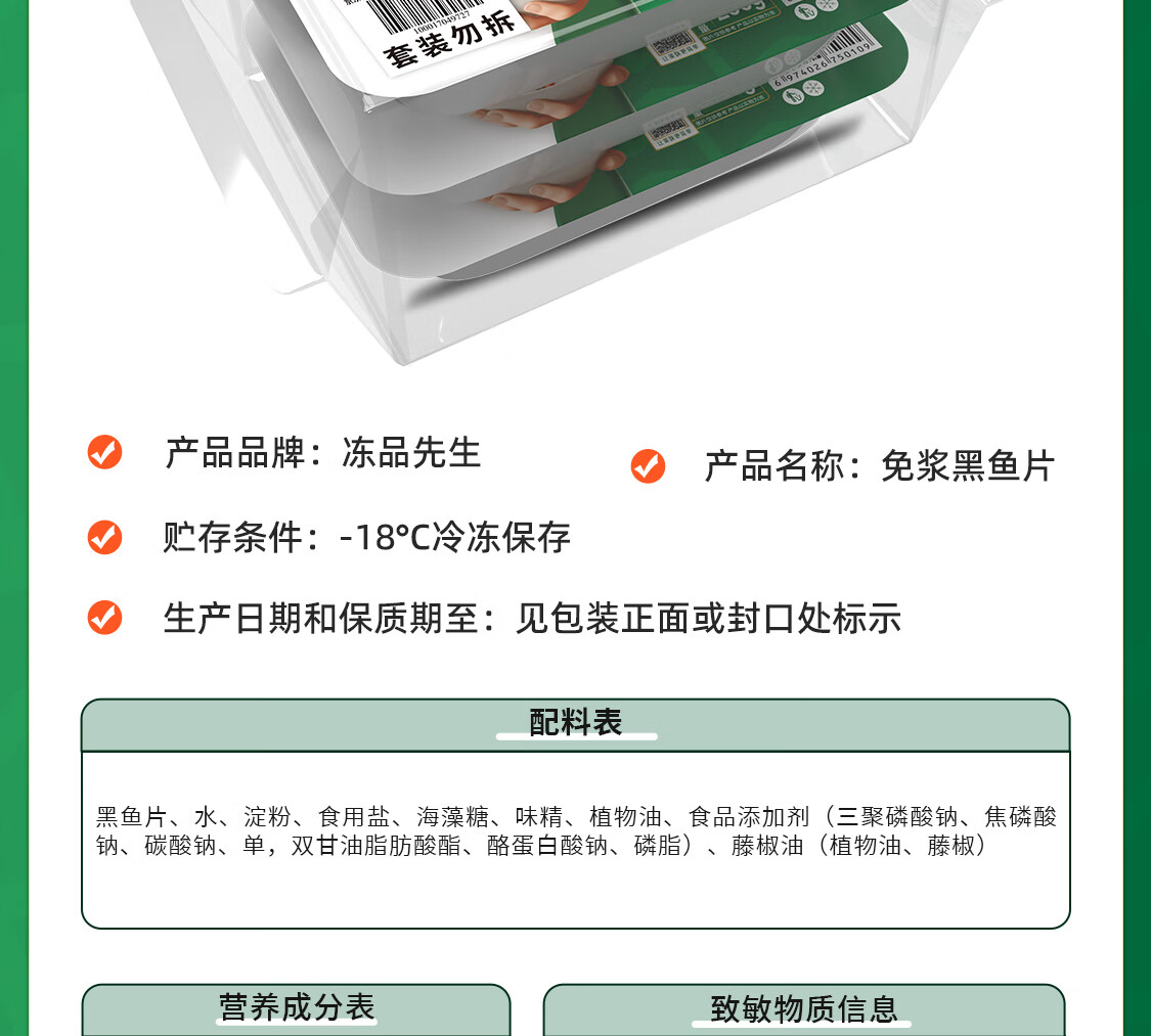 冻品先生 安井 免浆黑鱼片 250g*3盒 水煮鱼生鲜食材 冷冻鱼类方便菜