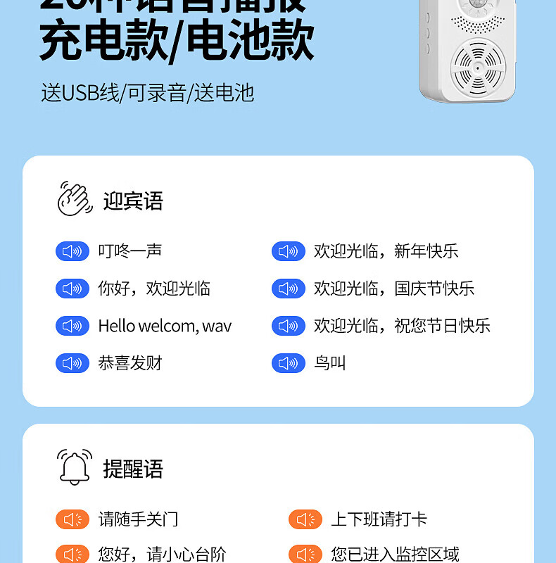 国际电工欢迎光临语音提示器来人进门提醒门铃感应迎宾器小喇叭进店播报器 人感应门铃【送电池】
