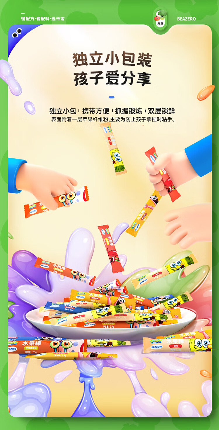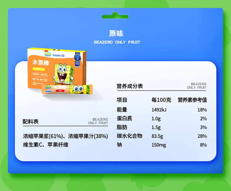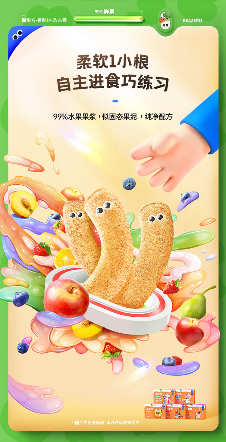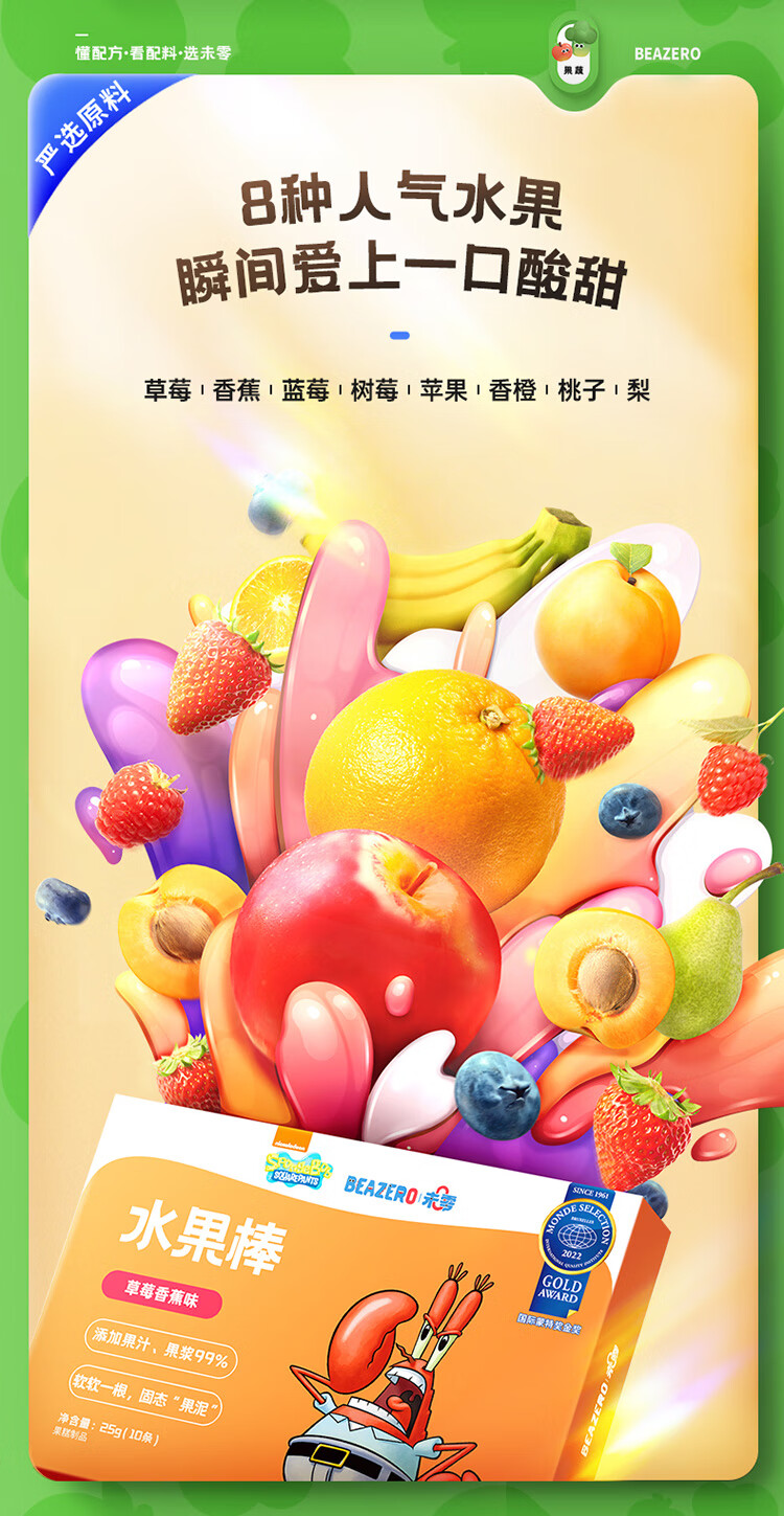 未零海绵宝宝水果棒水果条 草莓香蕉味25g儿童零食99%水果添加