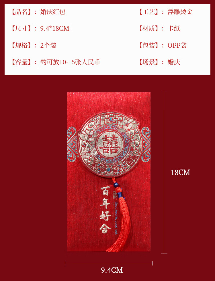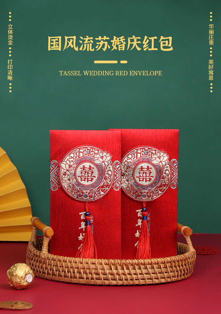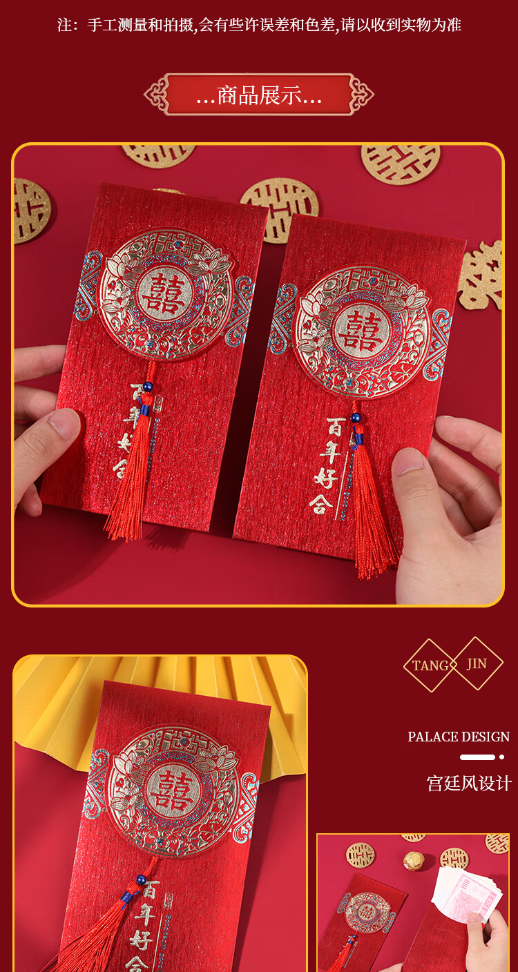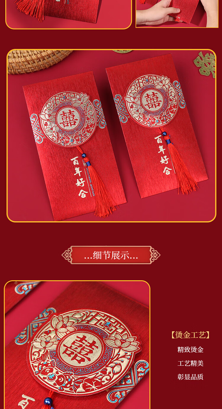 TaTanice结婚红包 婚礼红包压岁钱利是封中式百元千元红包百年好合2个装