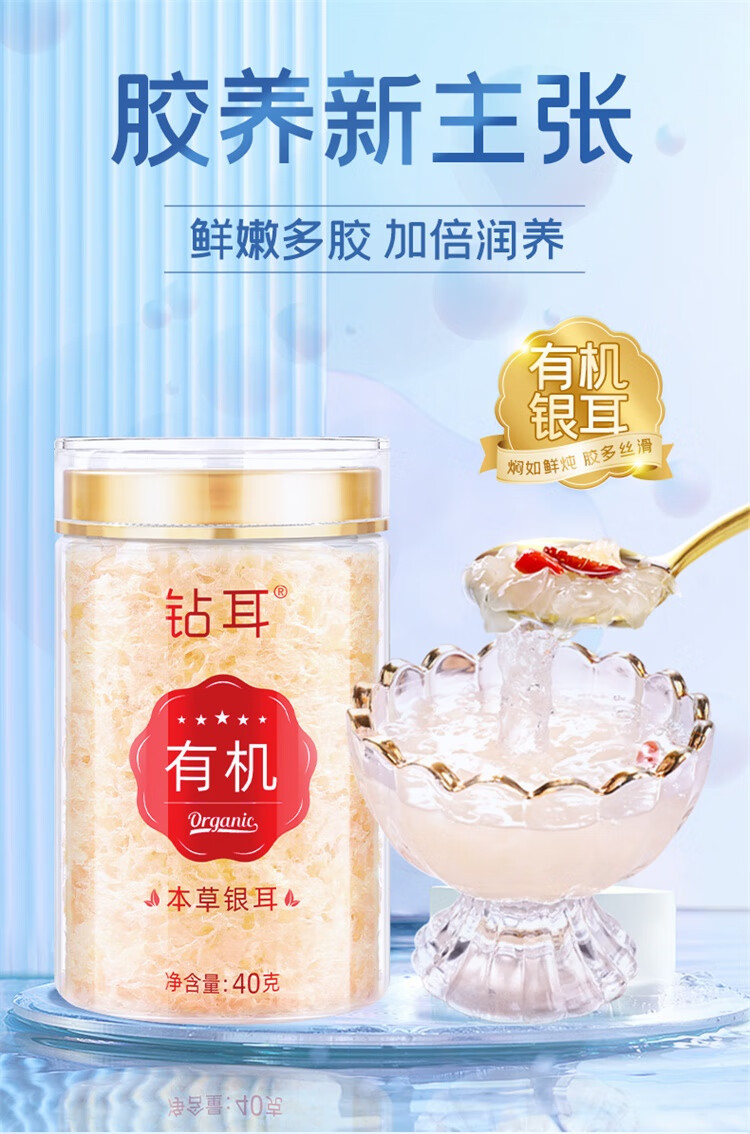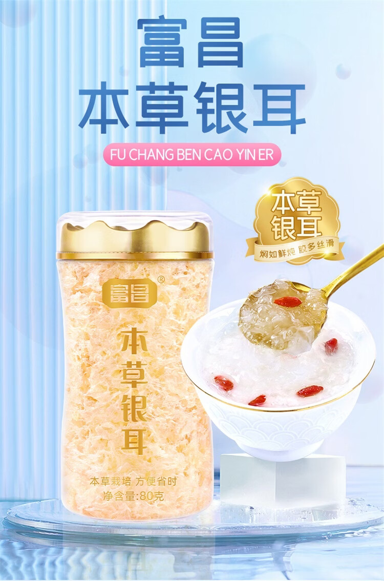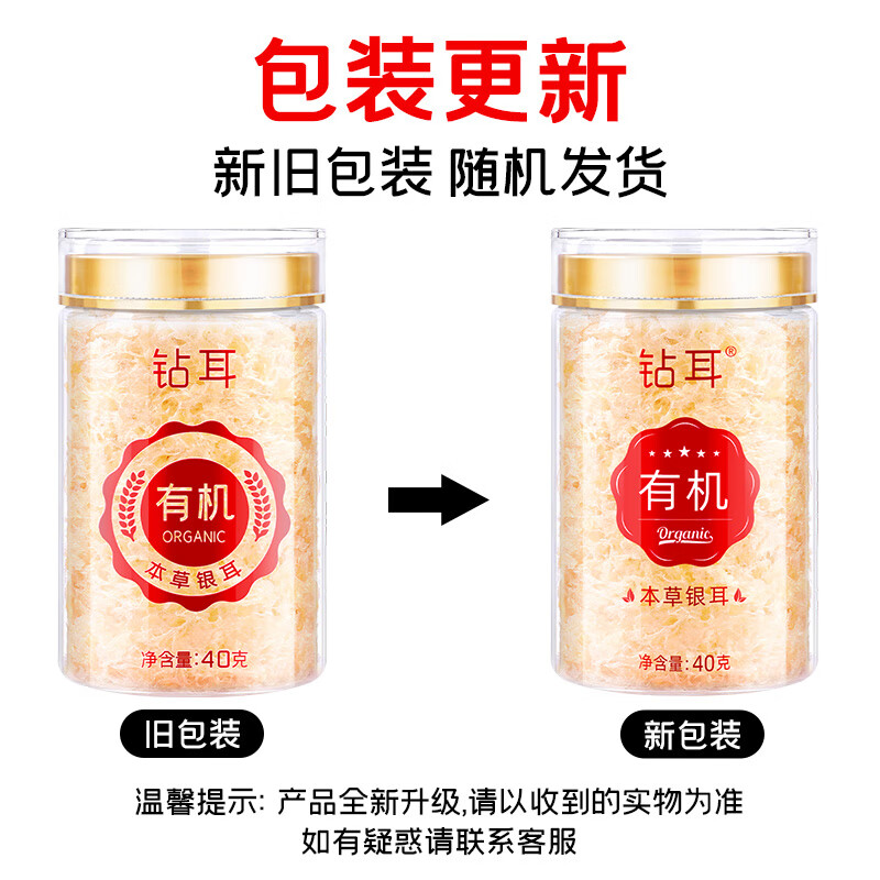 富昌有机本草银耳雪花燕 【免洗免泡】冲泡即食银耳羹燕耳早餐家庭装 雪花燕有机富硒七白银耳40g*4罐