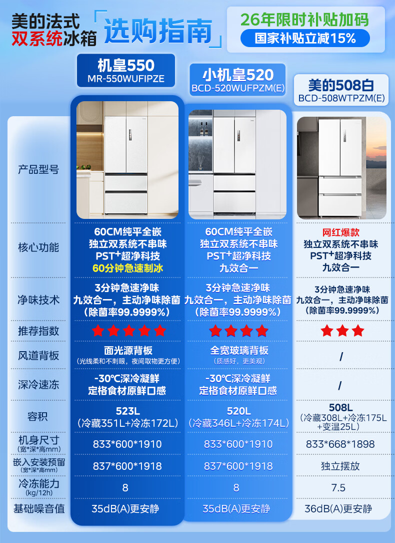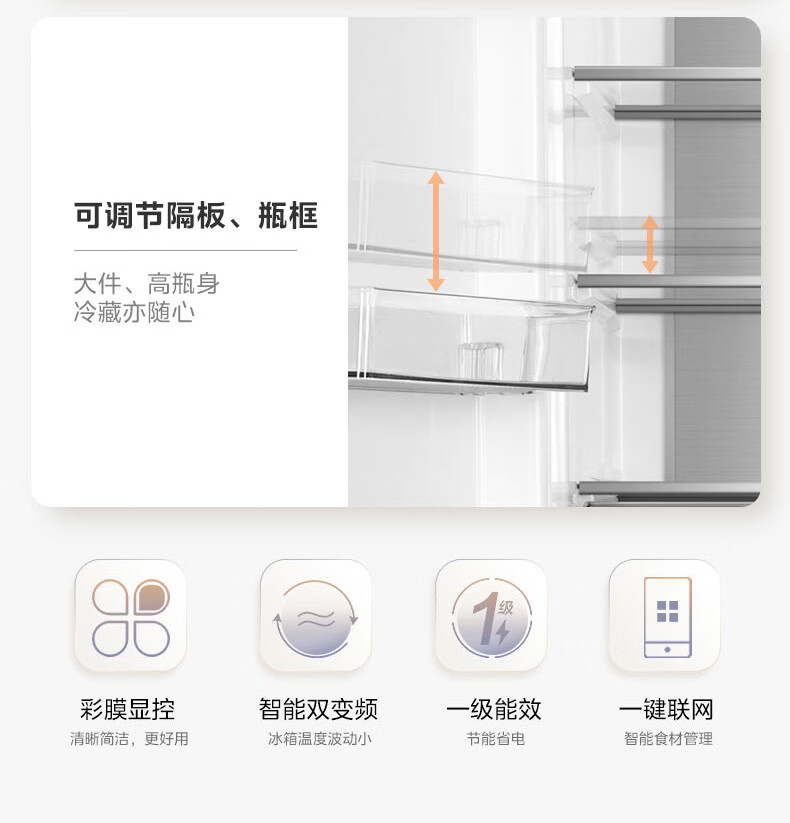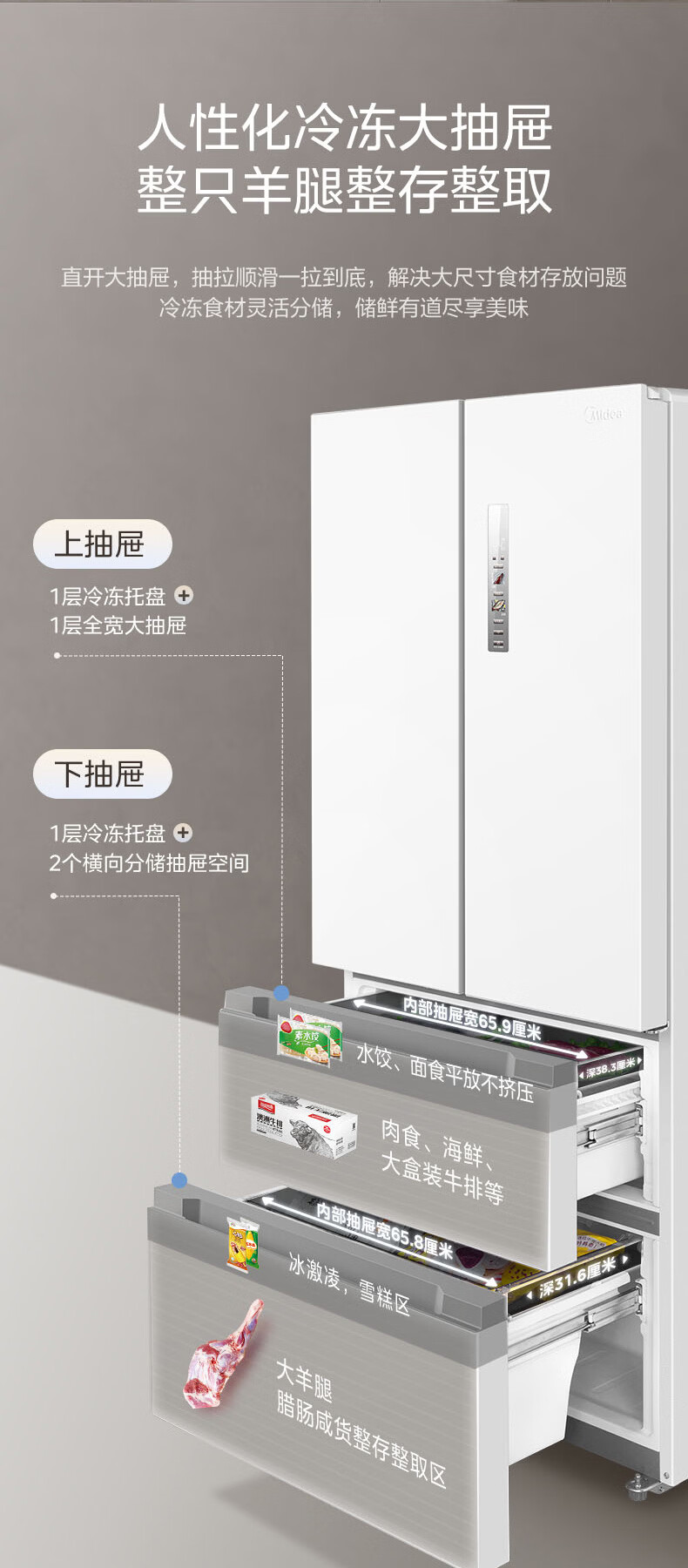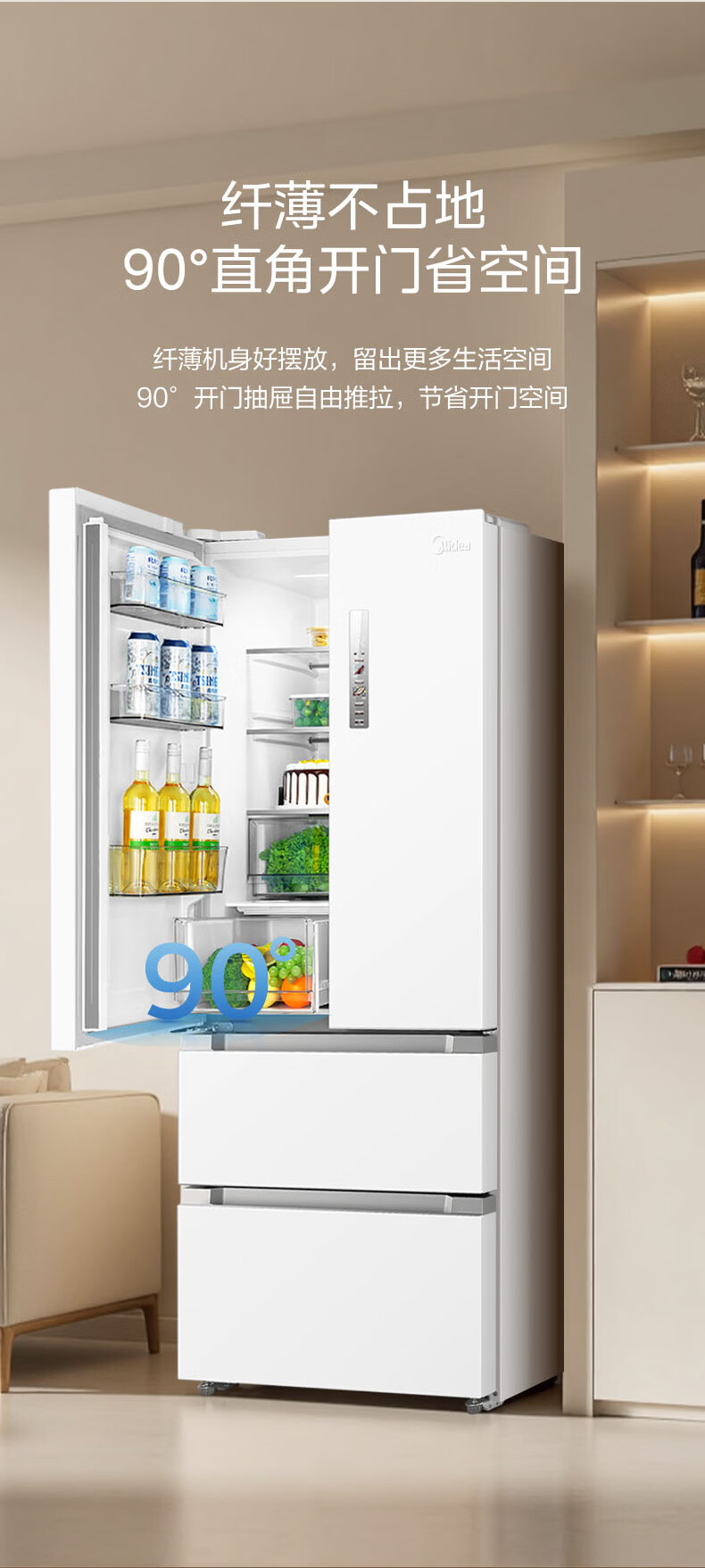 美的(Midea)508L法式四开门冰箱双系统循环一级能效除菌净味风冷大容量以旧换新白色BCD-508WTPZM(E) 国家补贴