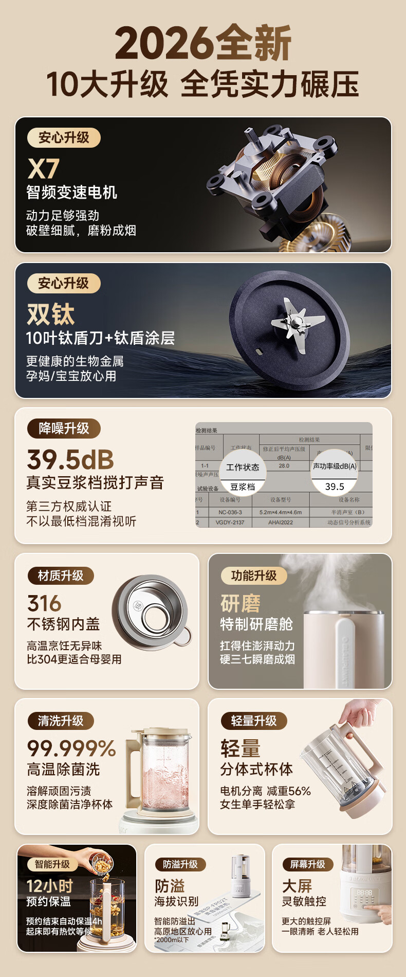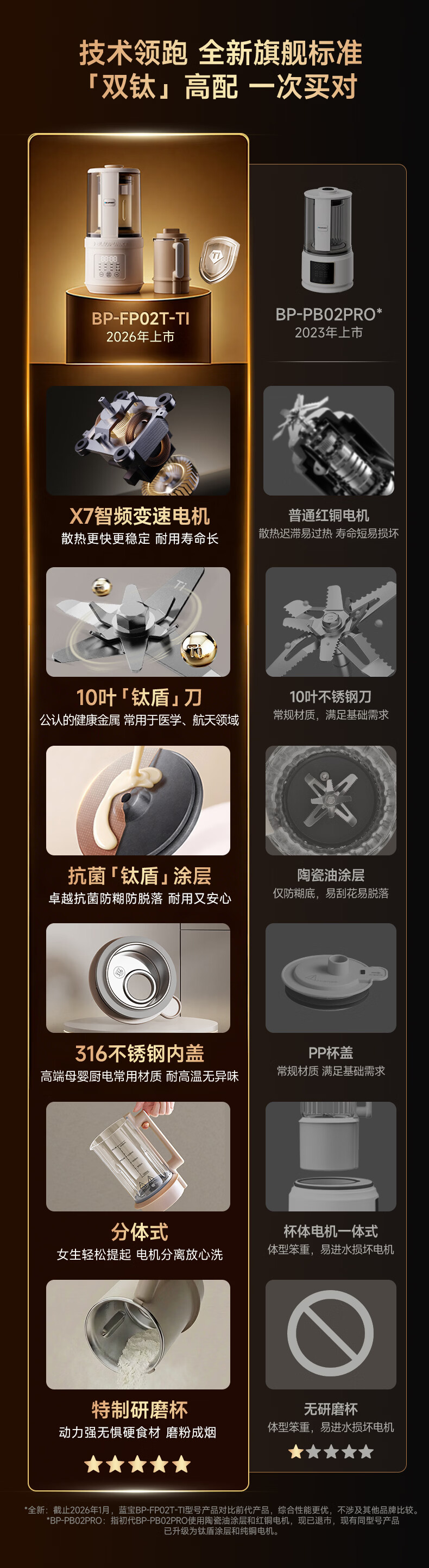 蓝宝(BLAUPUNKT)破壁机 豆浆机全自动免煮2026新款静低音家用自清洗多功能免滤料理机钛盾底盘02T 不锈钢盖