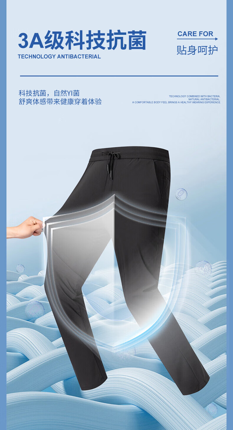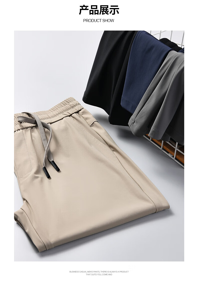 SHANSHAN杉杉【锦氨弹力三防凉感】休闲裤子男2026春夏高弹简约直筒通勤 黑色 XL /180