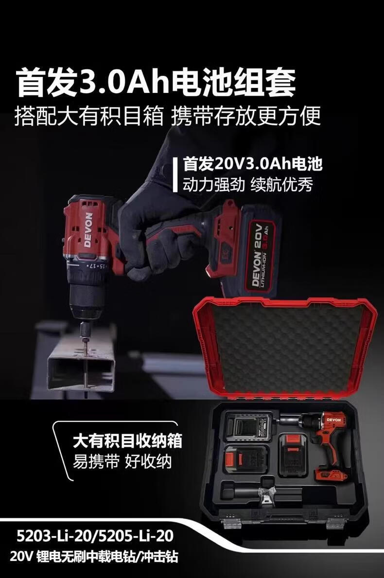 大有(Devon)手电手钻5203锂电充电式起子螺丝批中载钻大扭力工业级 5203裸机【不带电池充电器】