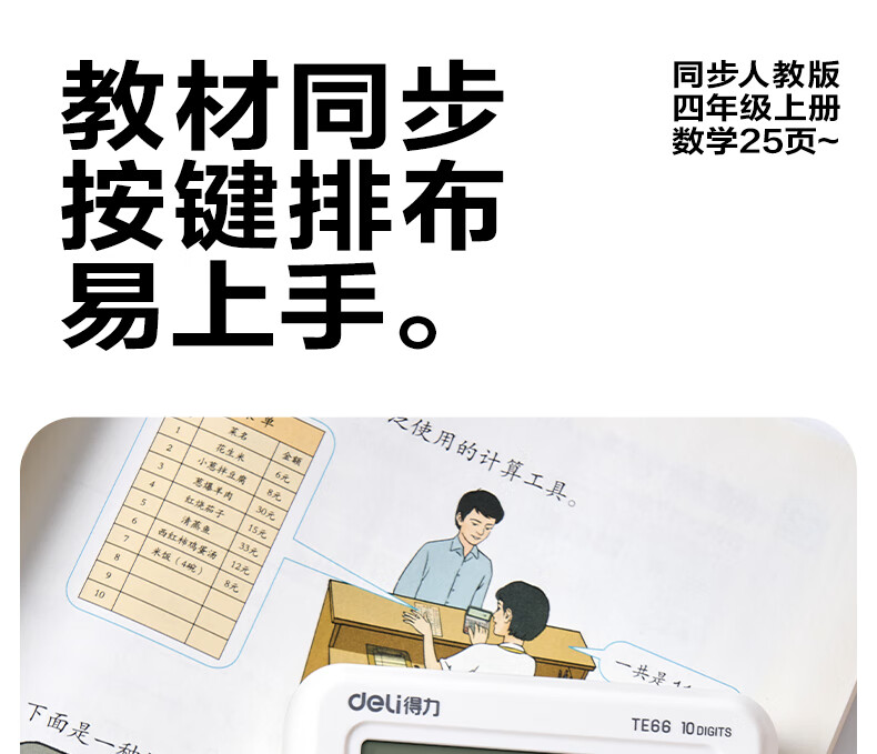 得力(deli)人教版四年级同款小学生专用计算器四年级学习数学课本同步计算机多功能办公财会计算 TE66