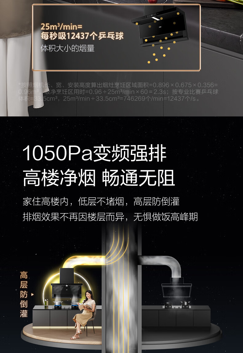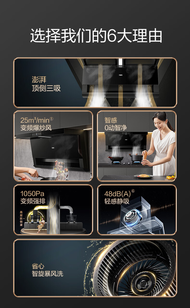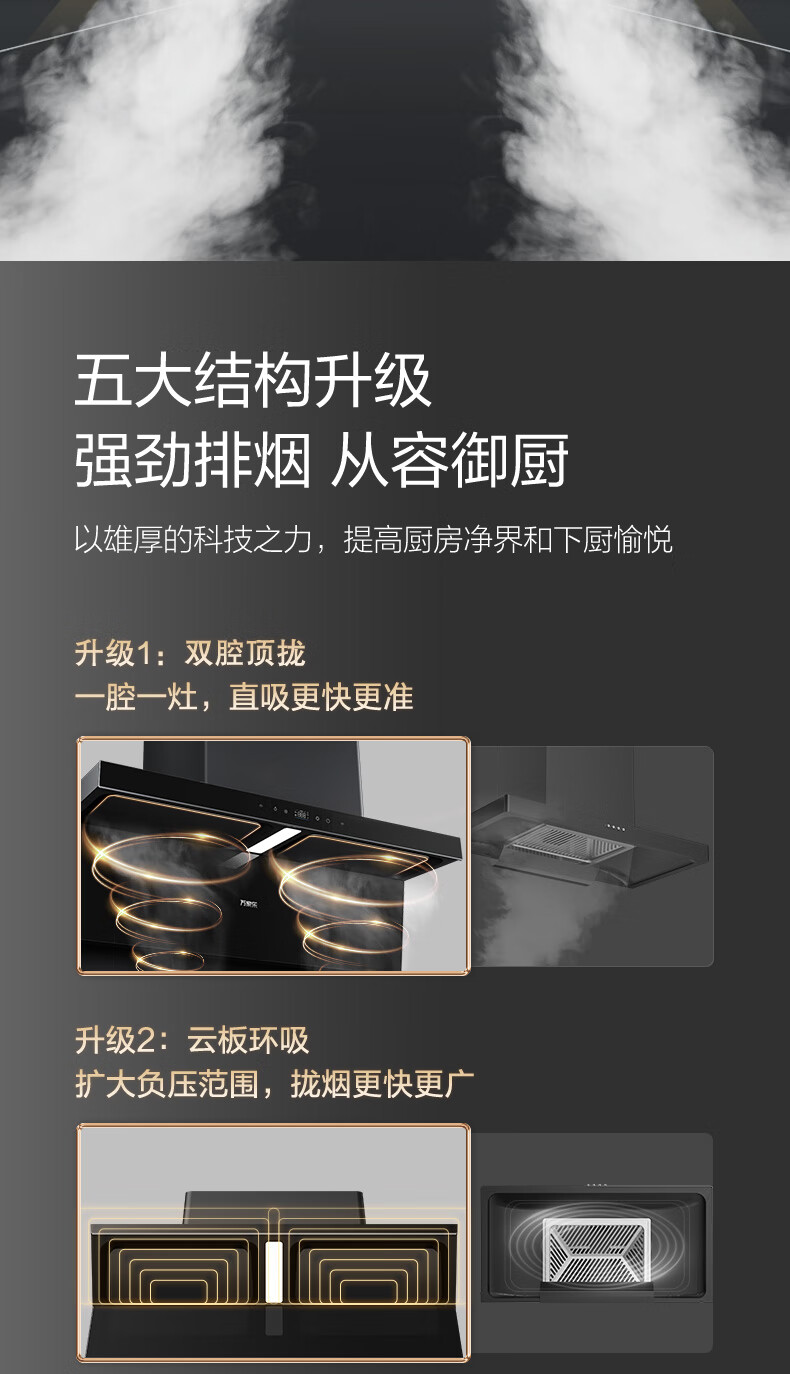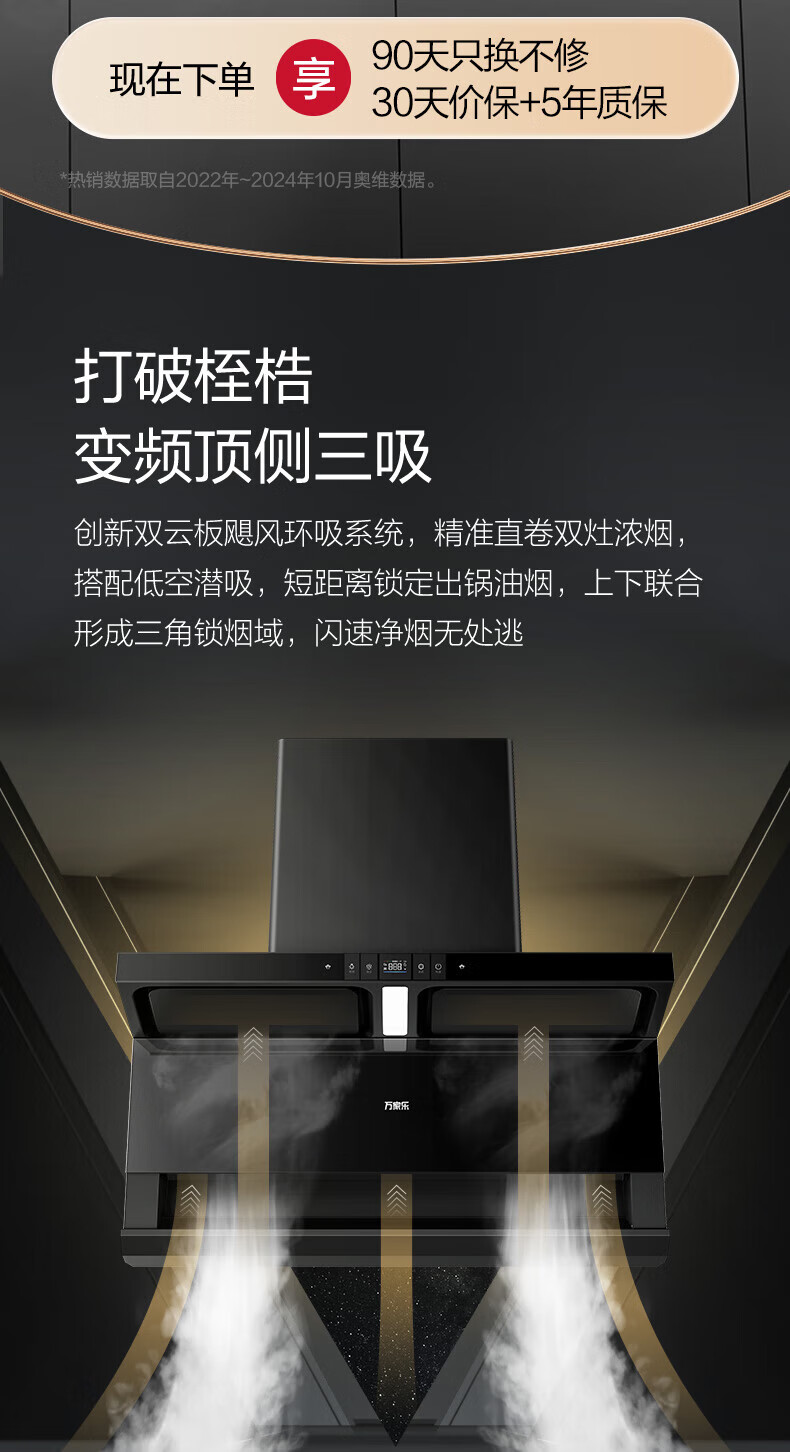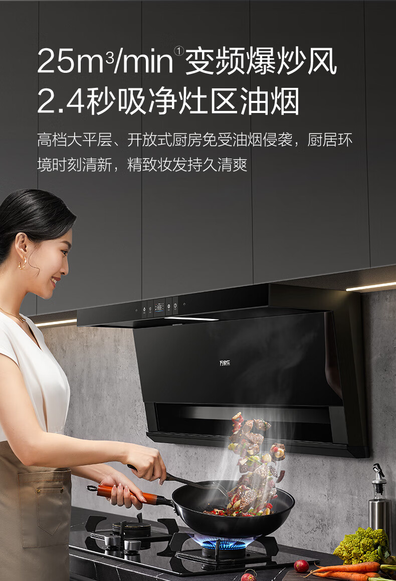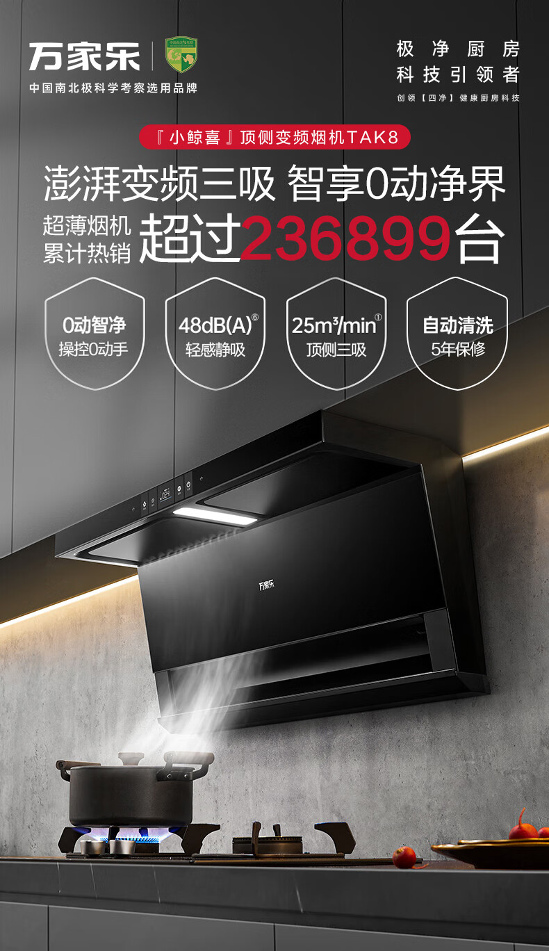 万家乐油烟机【小鲸喜TAK8】顶侧双吸不碰头 25立方变频大吸力三腔拢烟1050Pa自清洗家用抽排吸油烟机