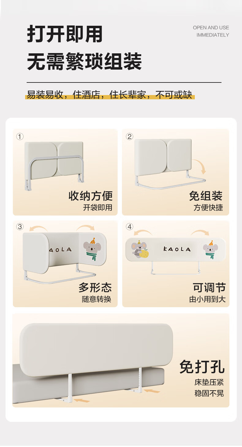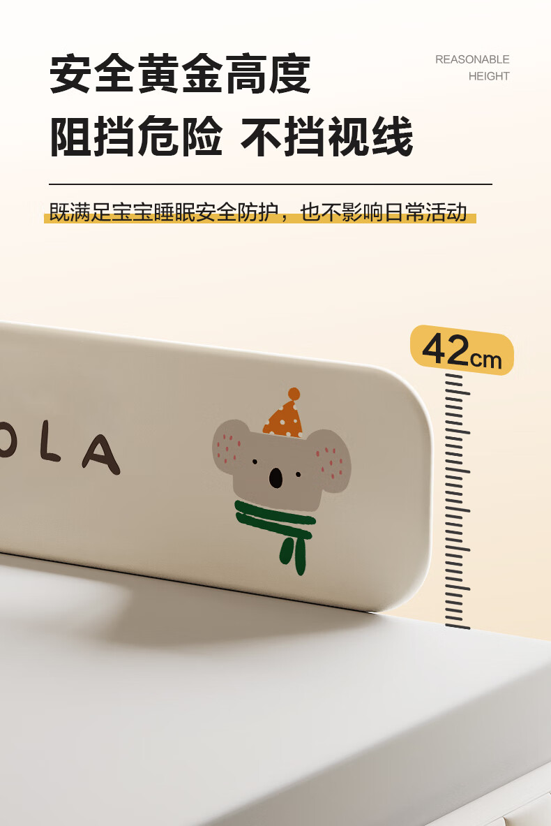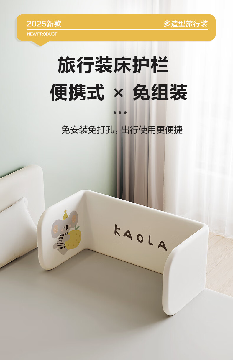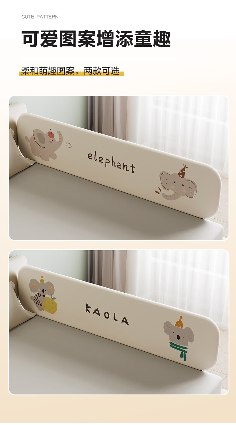 诺梵亚免安装床围栏宝宝防摔护栏简易便携式可折叠挡板小飞象1.8米一面