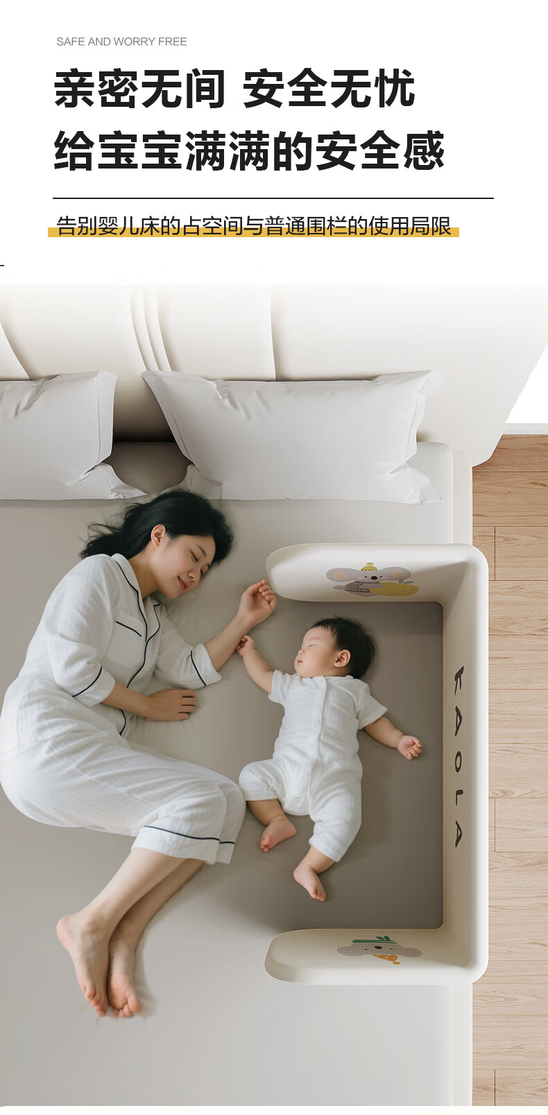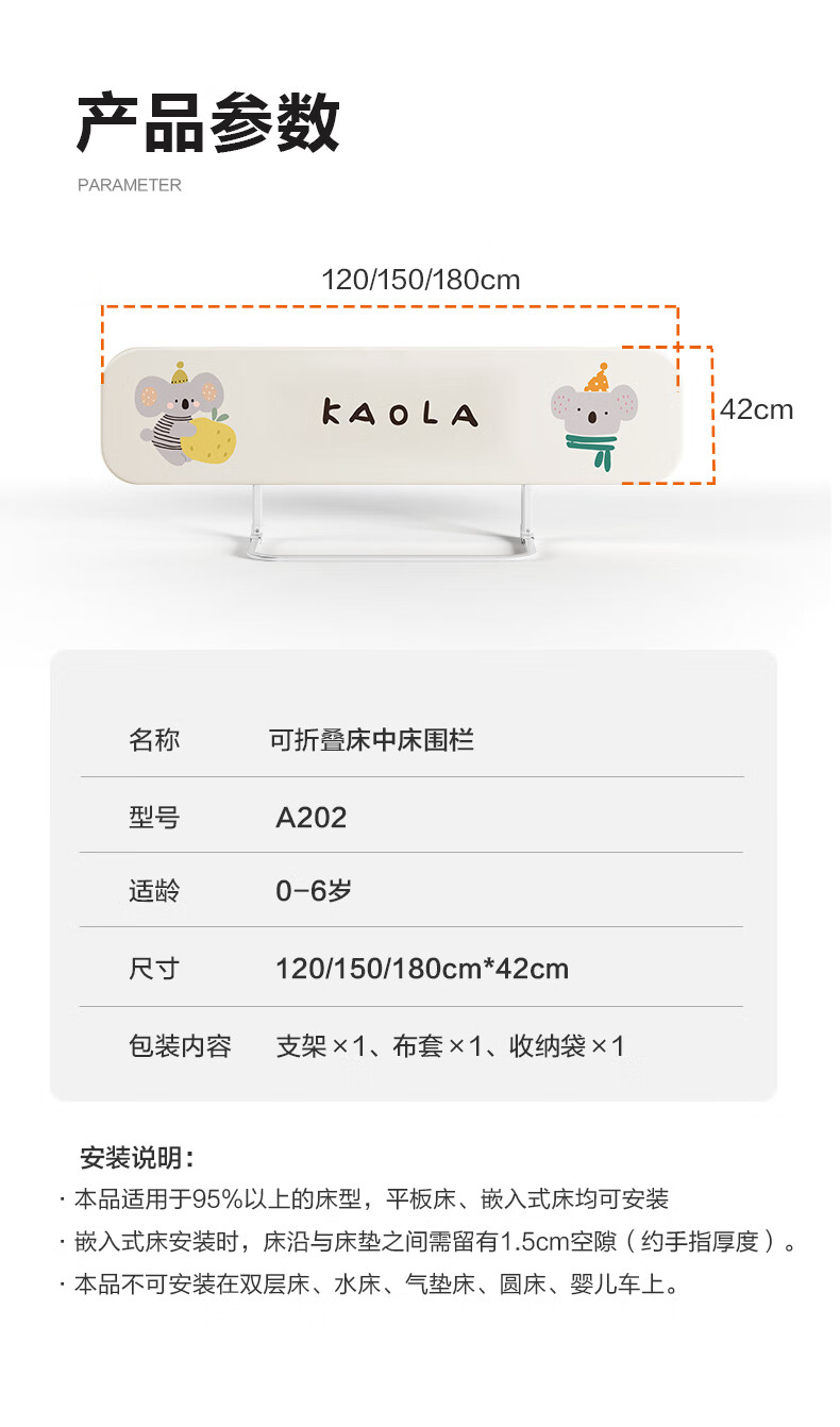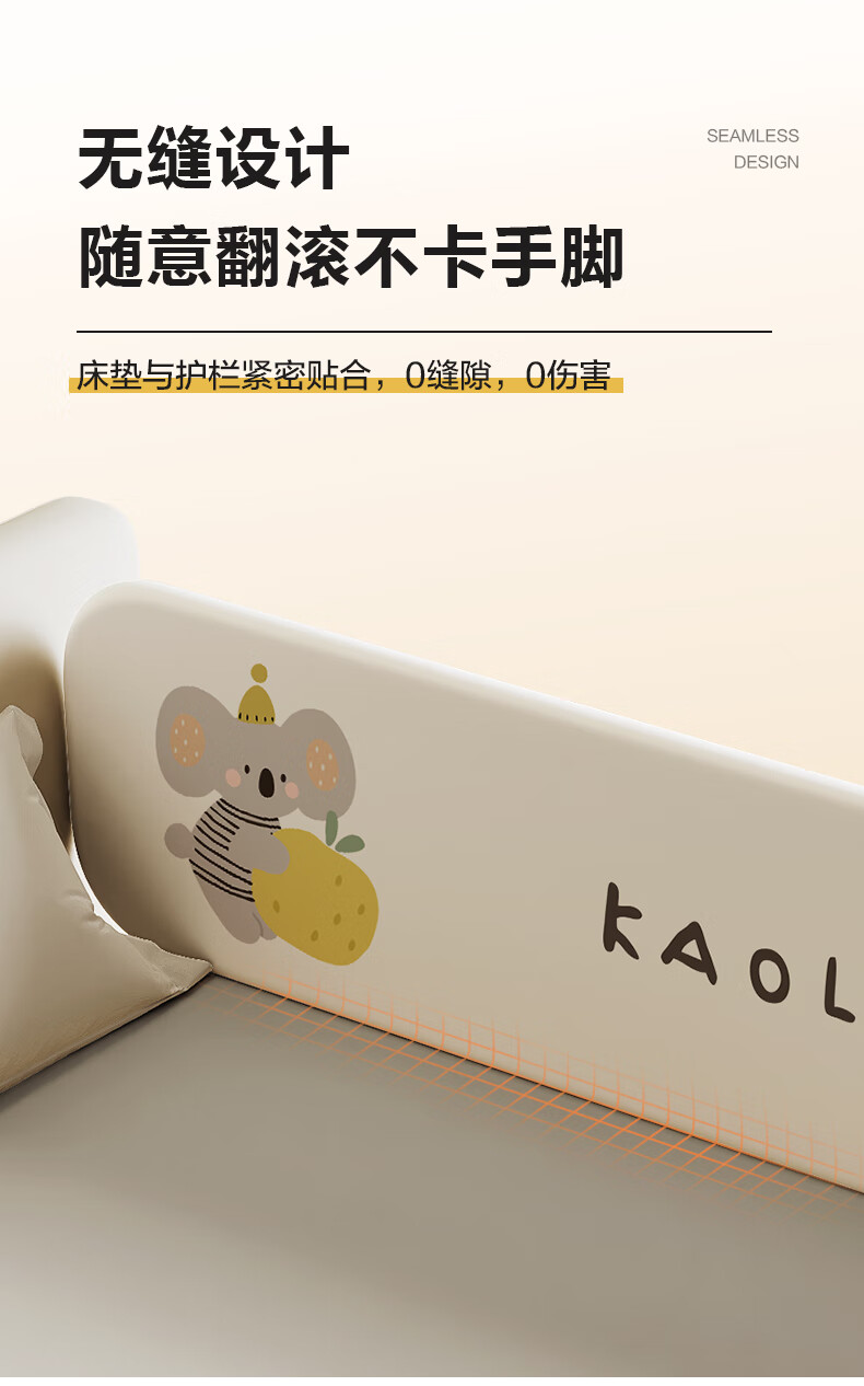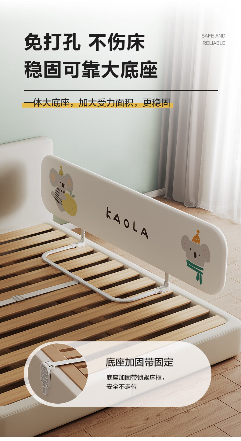 诺梵亚免安装床围栏宝宝防摔护栏简易便携式可折叠挡板小飞象1.8米一面