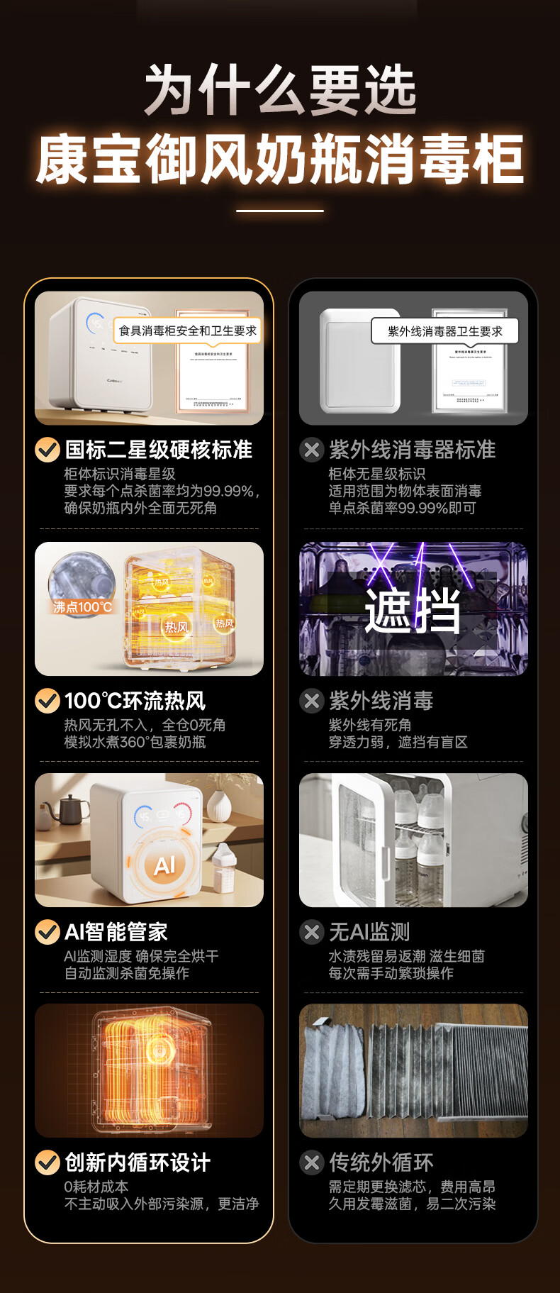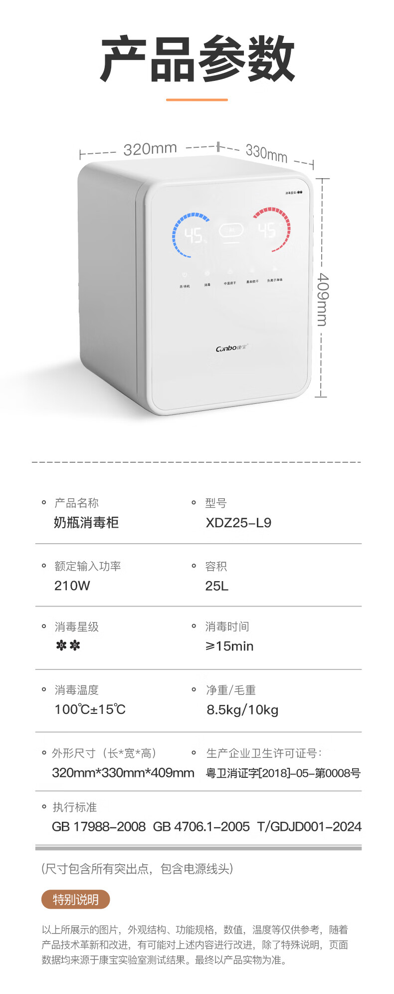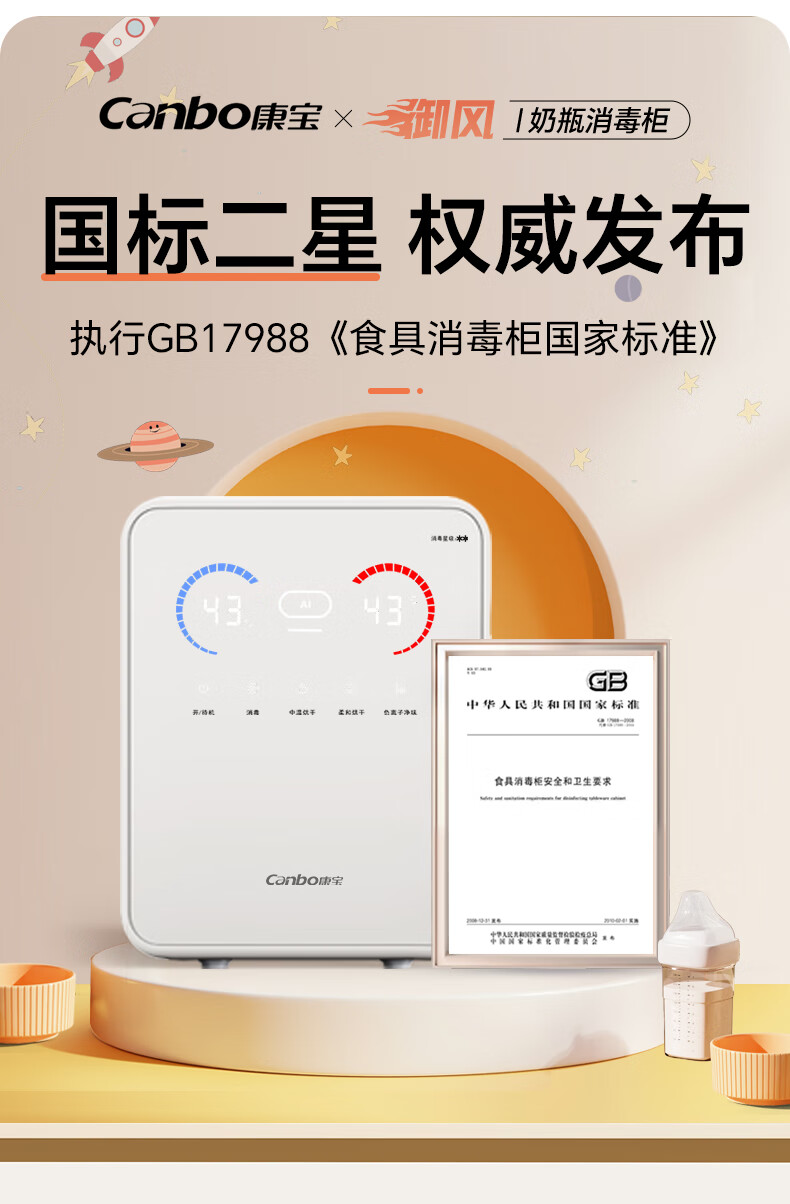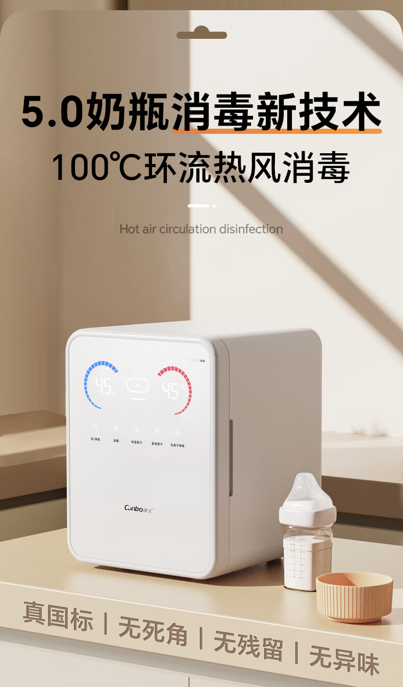 康宝御风奶瓶消毒柜婴儿 国标二星带AI 热风奶瓶消毒烘干一体机L9