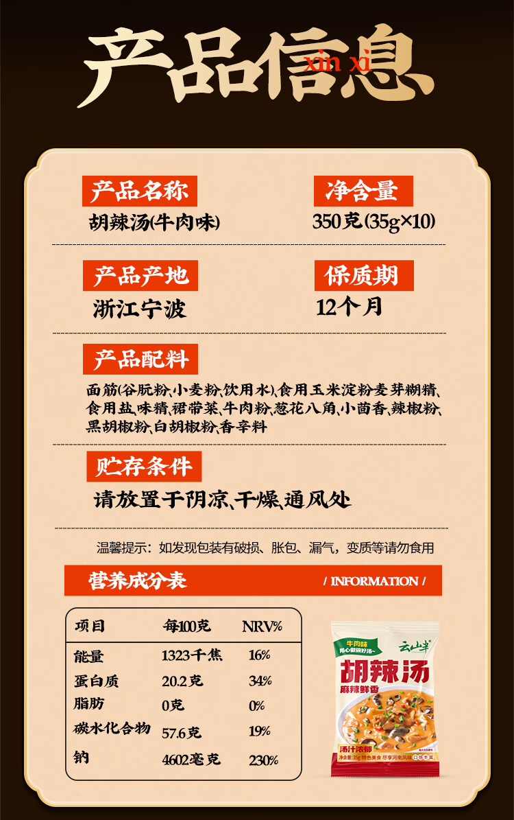 云山半胡辣汤35g*10袋 0脂肪高蛋白 河南风味早餐速食汤方便食品