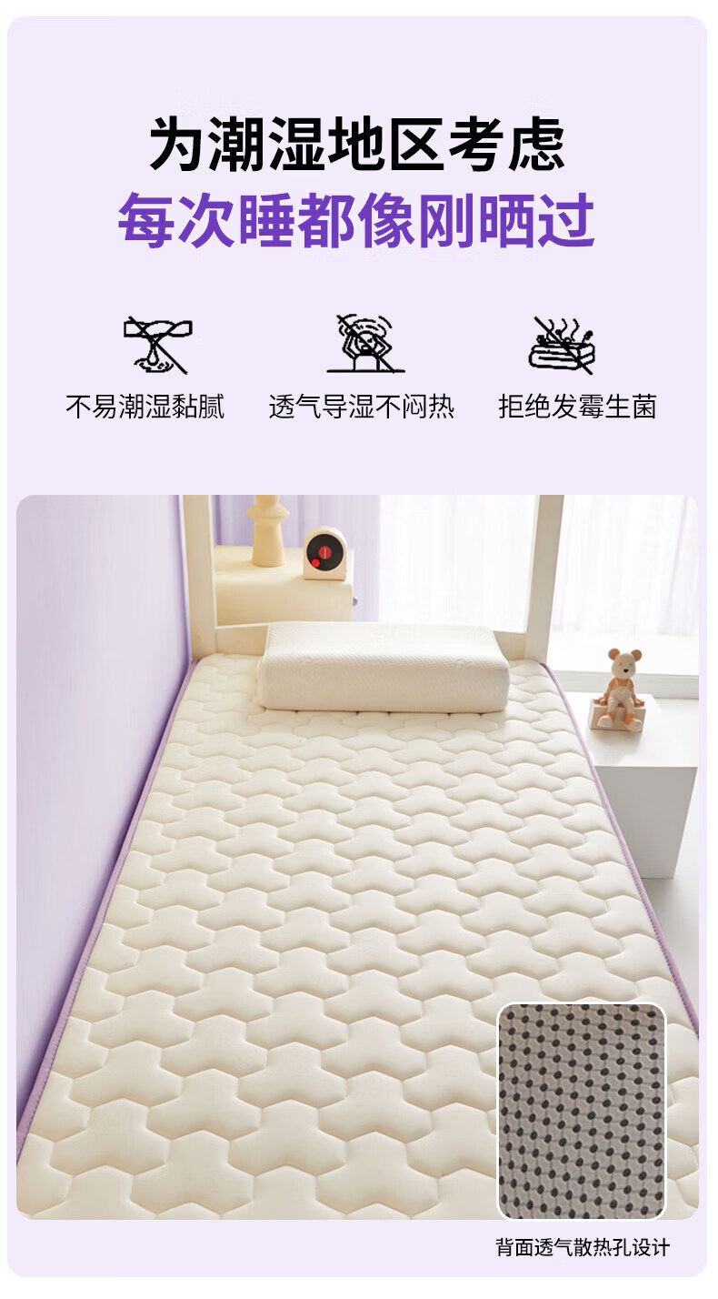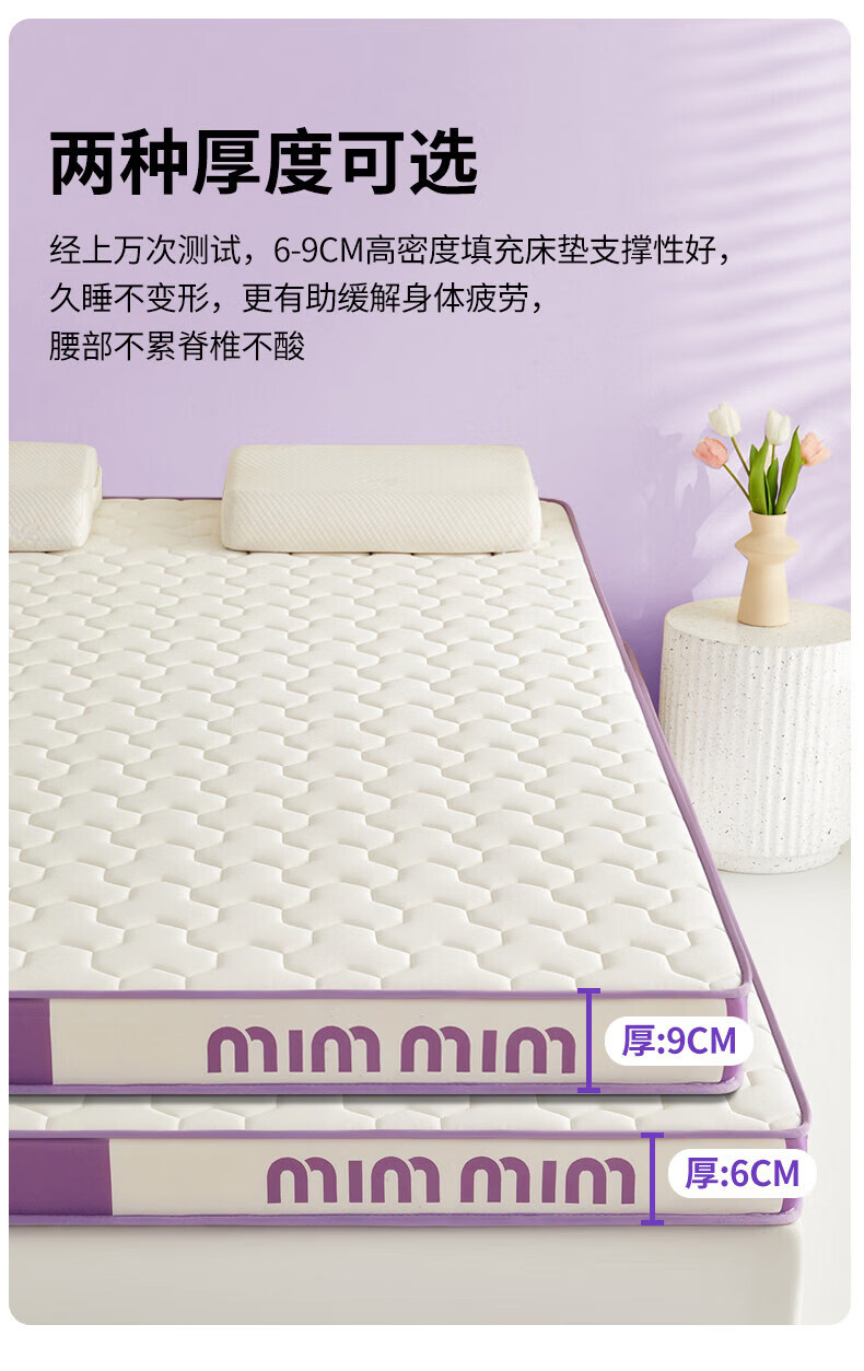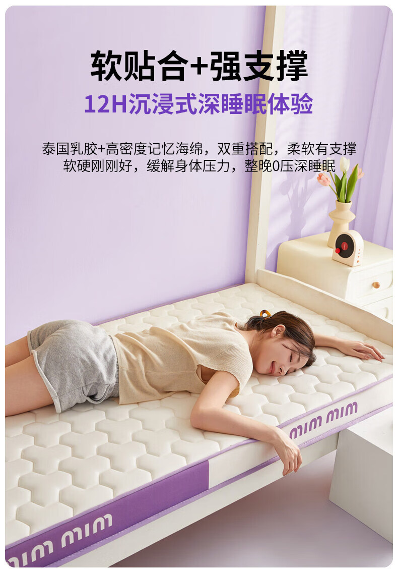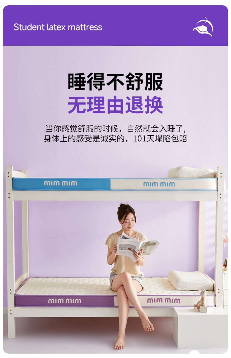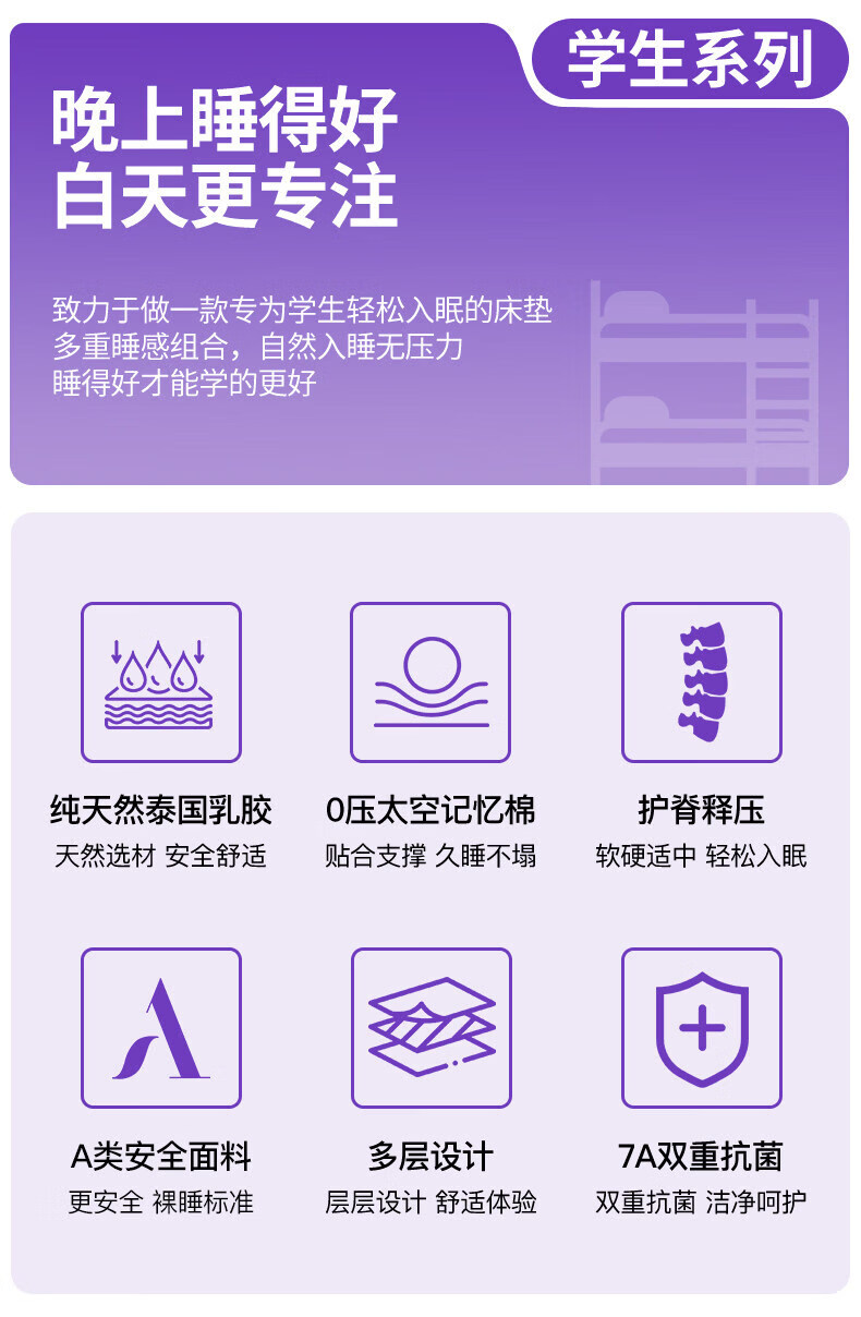 浪莎(LangSha)乳胶床垫大学生宿舍专用单人0.9米x1.9米高中生住校上下铺软垫子 【深睡款6.0】宝石紫(厚约6cm) 90*200cm【A类裸睡级&久睡不塌】