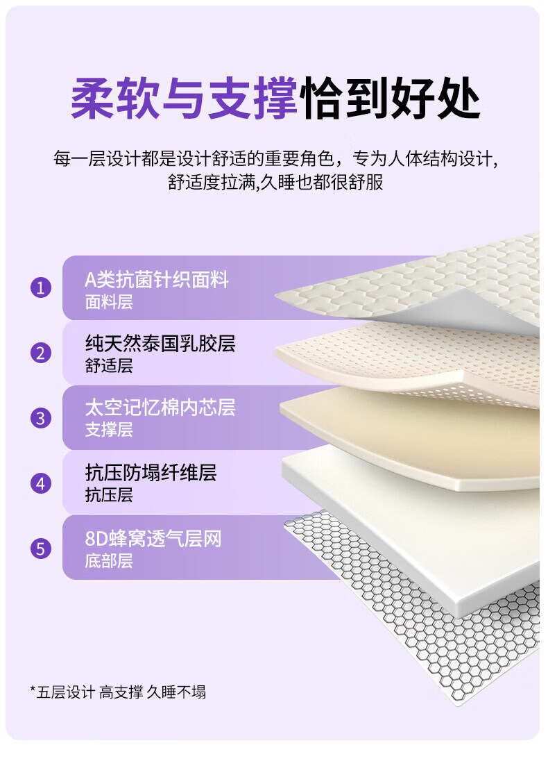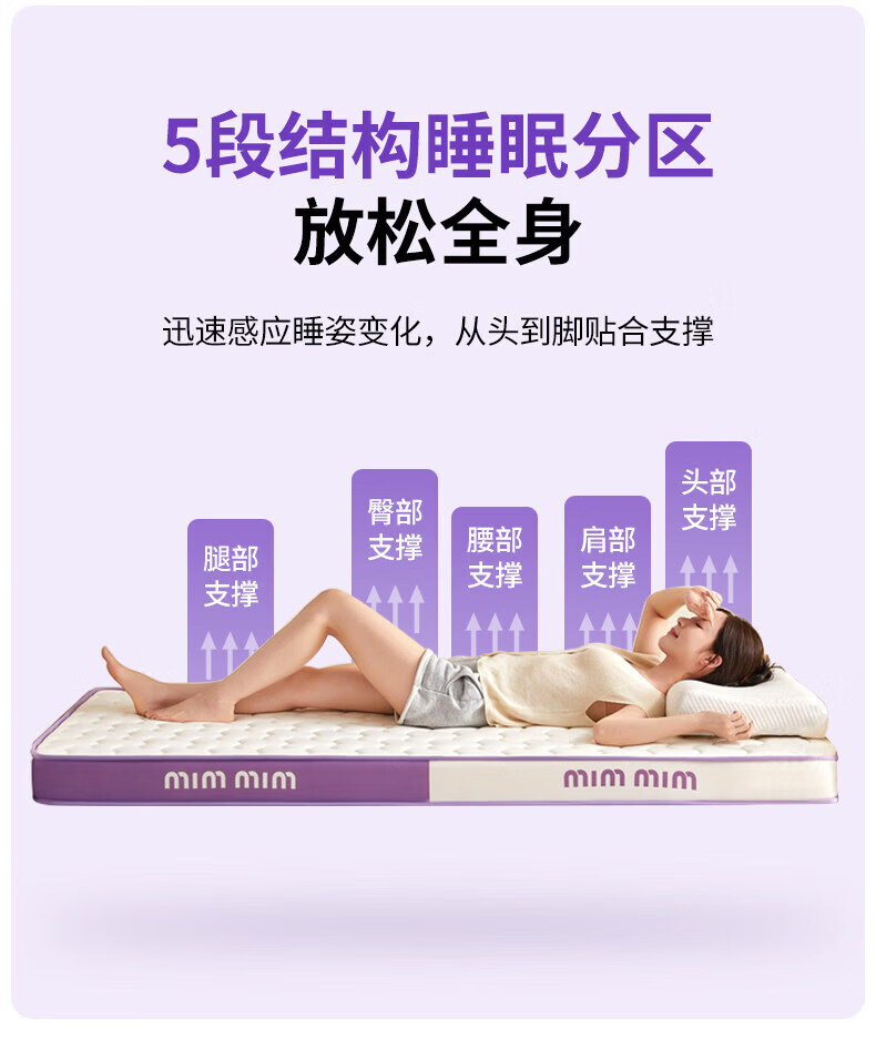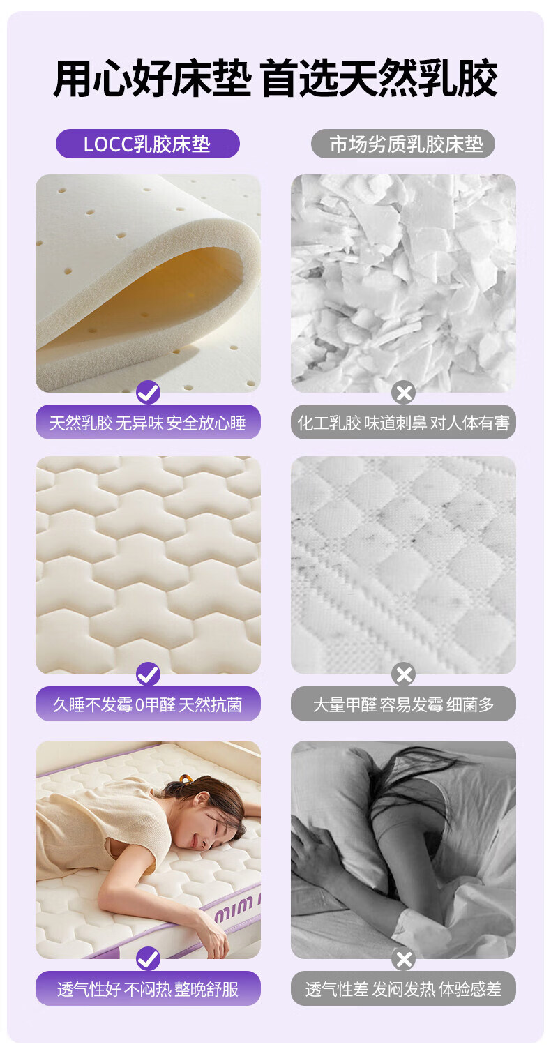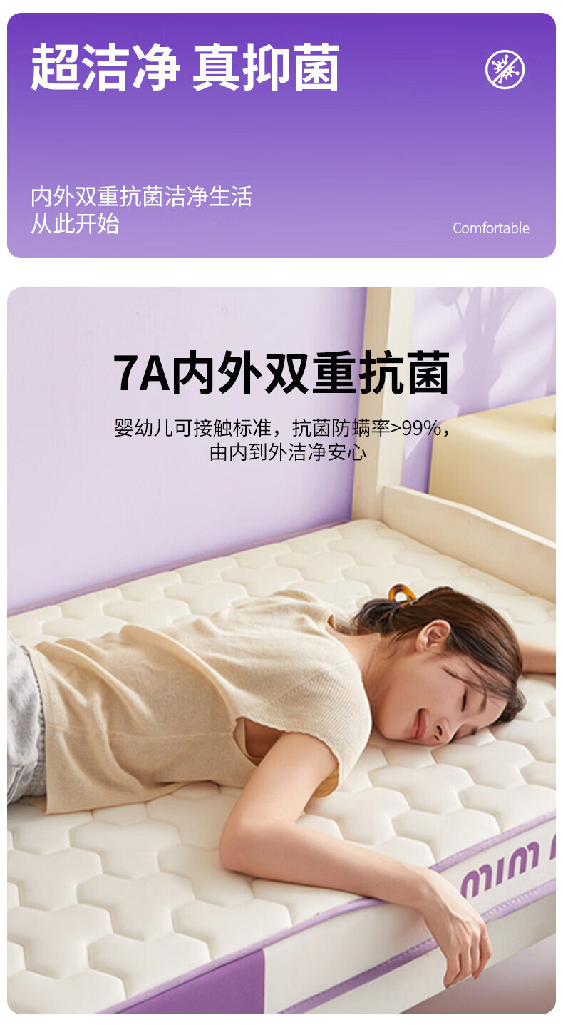 浪莎(LangSha)乳胶床垫大学生宿舍专用单人0.9米x1.9米高中生住校上下铺软垫子 【深睡款6.0】宝石紫(厚约6cm) 90*200cm【A类裸睡级&久睡不塌】