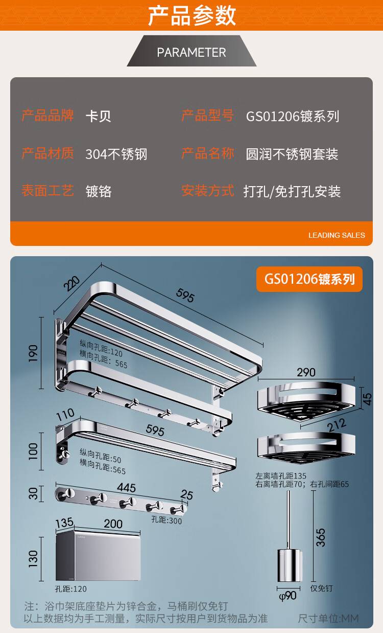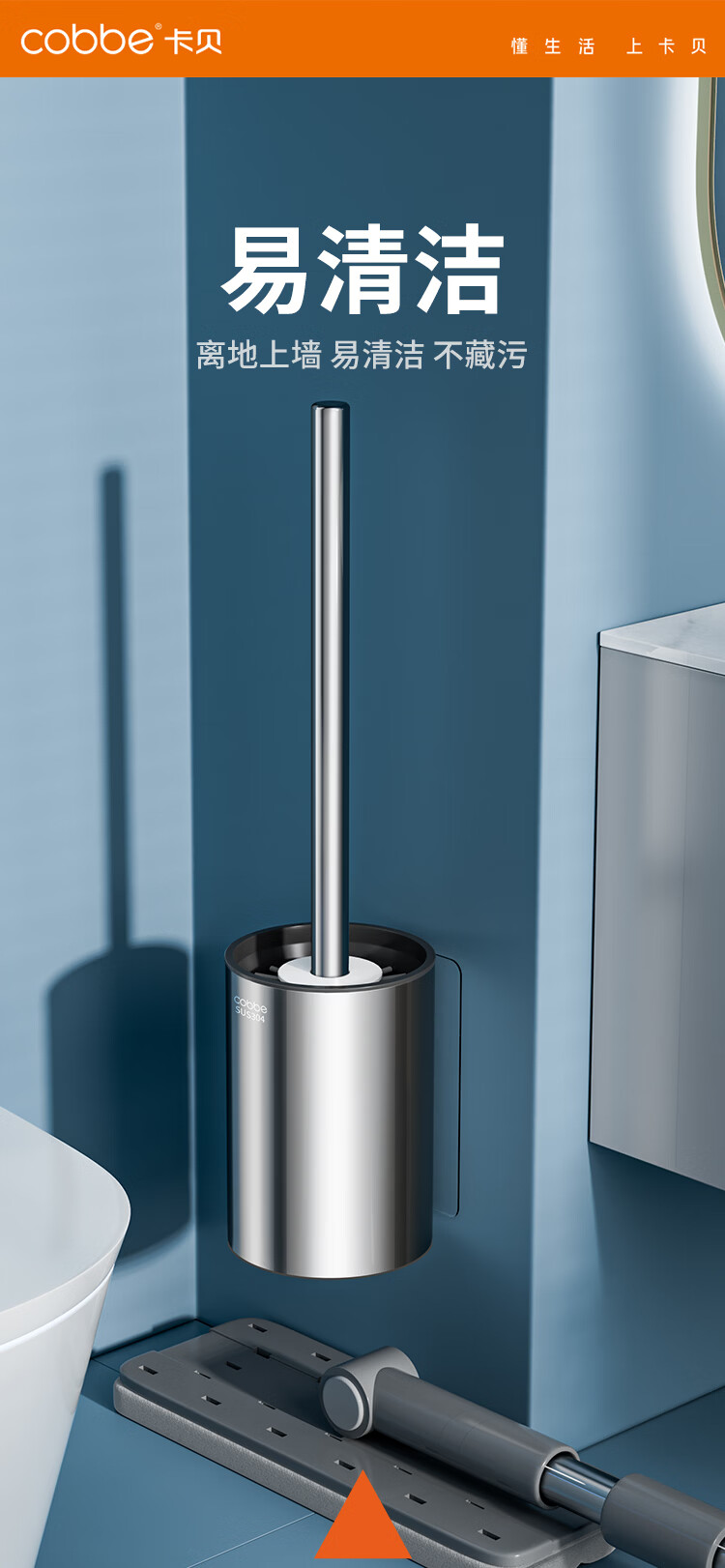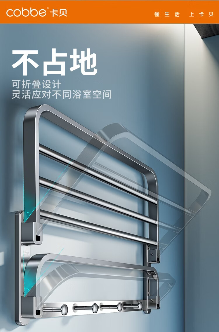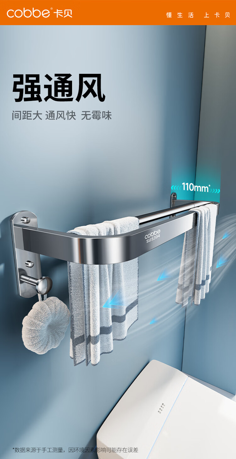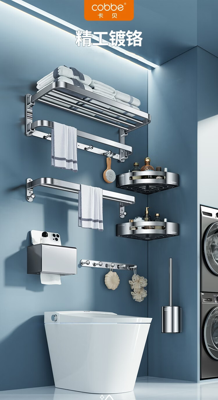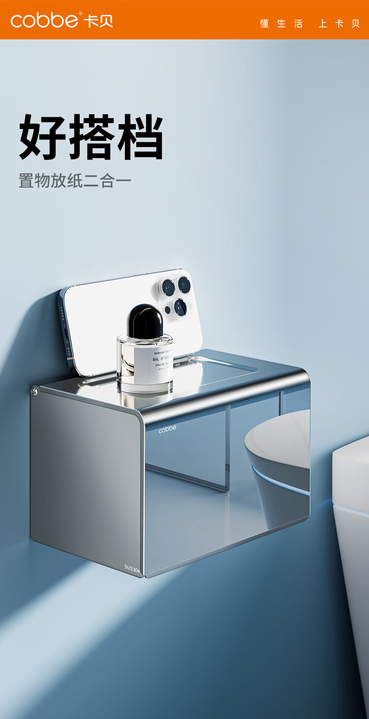 卡贝(cobbe)304不锈钢毛巾架 浴室免打孔浴巾架 卫浴挂件套装 卫生间置物挂钩 【打孔/免打孔】20cm方形厕纸盒