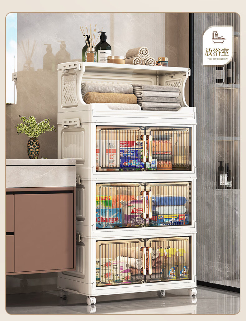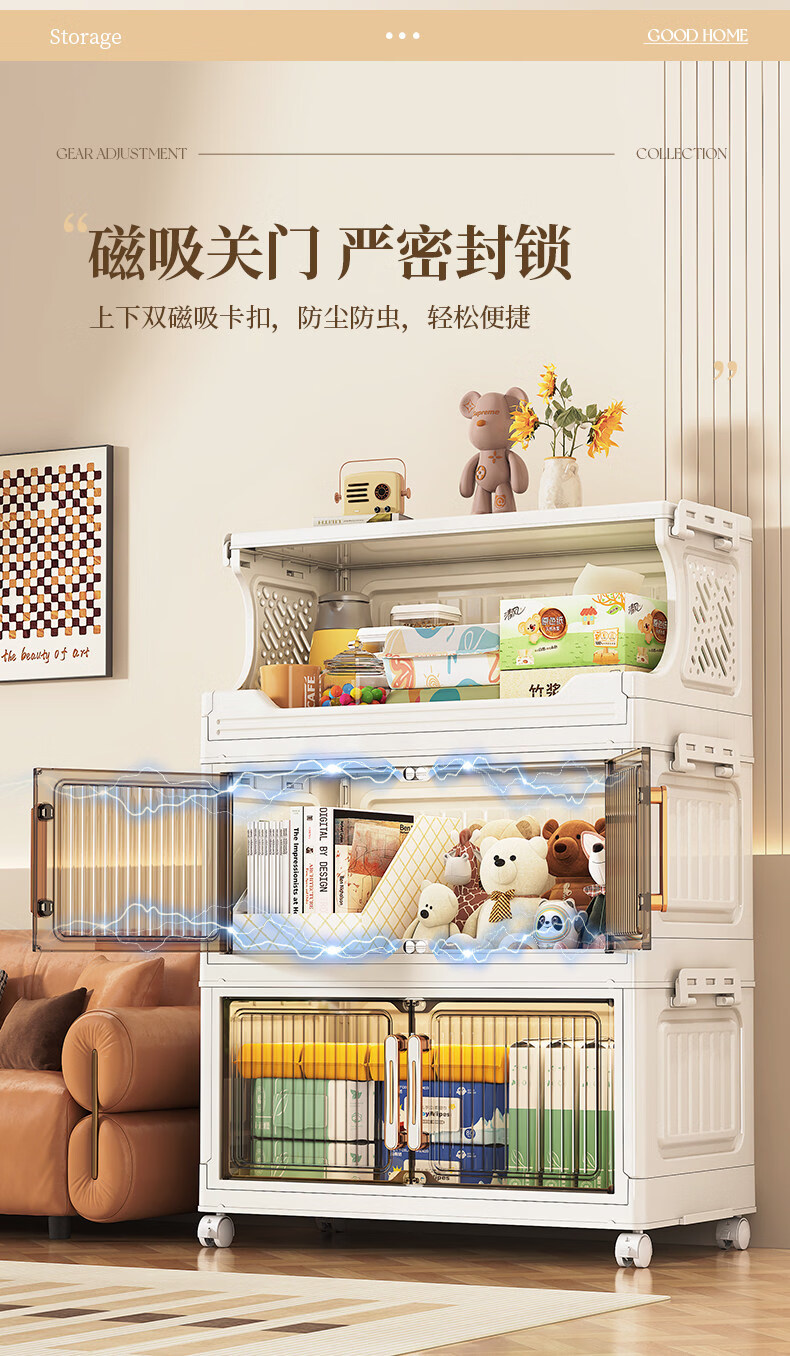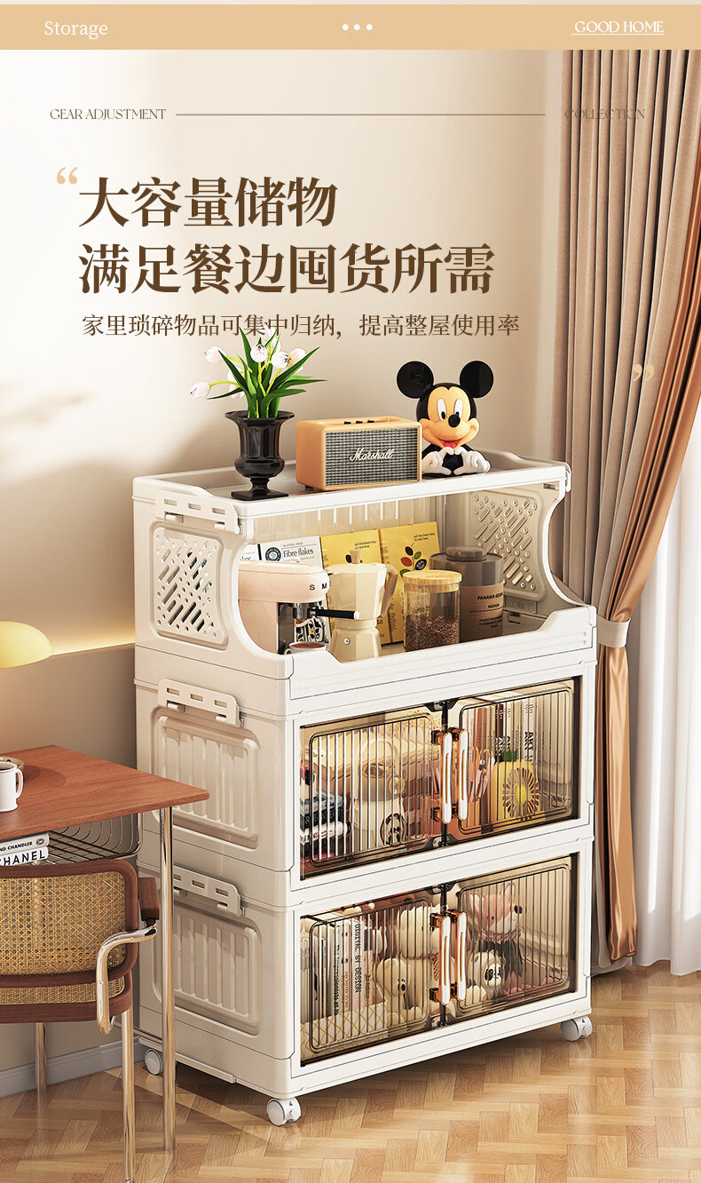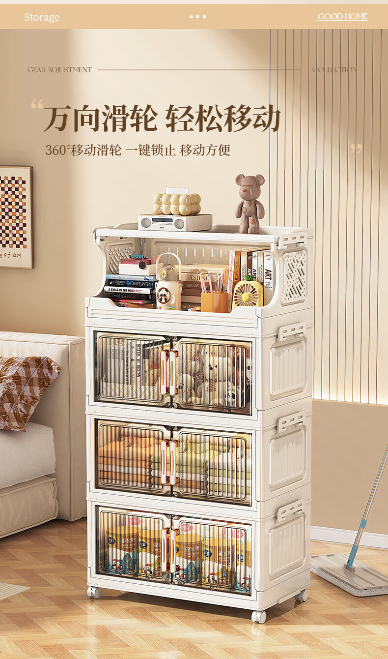 纳份爱 家用带轮收纳柜多层客厅零食置物架可折叠储物柜玩具收纳整理箱 大号【40CM面宽】 1层收纳架+4层收纳箱