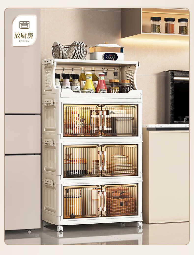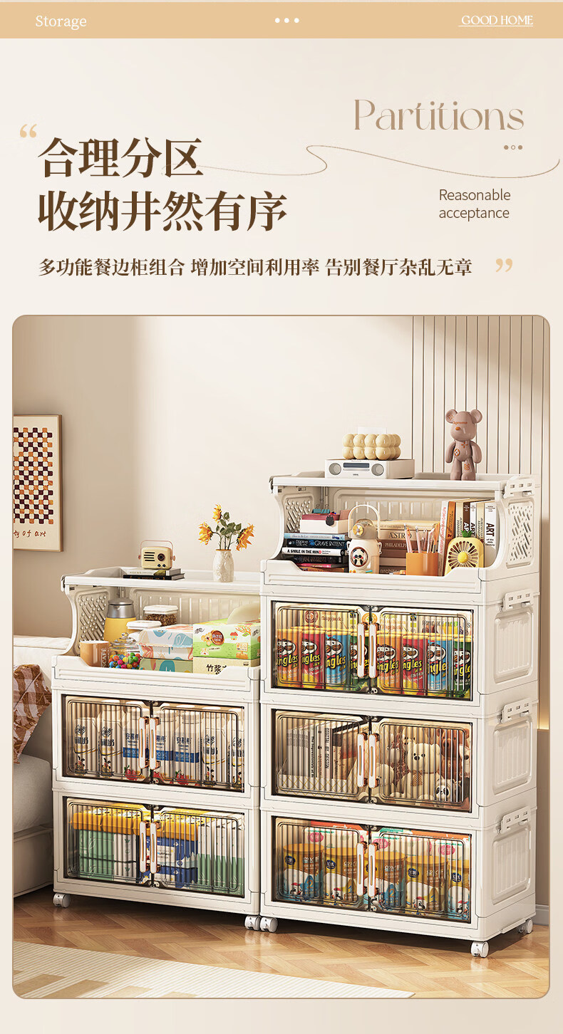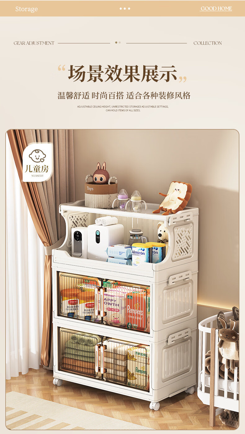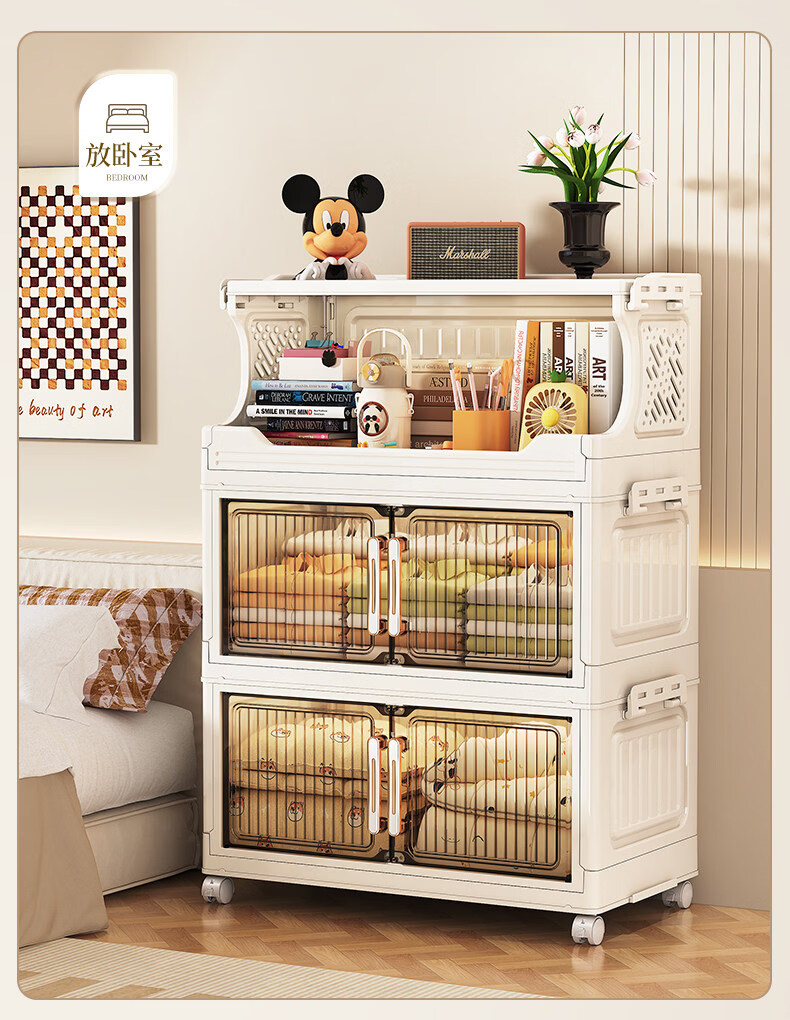 纳份爱 家用带轮收纳柜多层客厅零食置物架可折叠储物柜玩具收纳整理箱 大号【40CM面宽】 1层收纳架+4层收纳箱