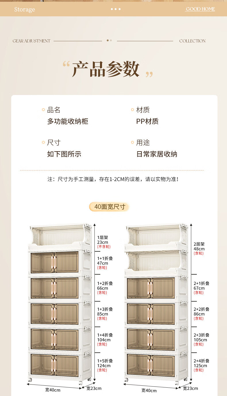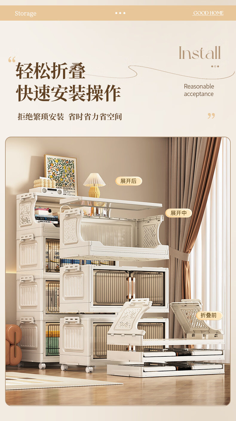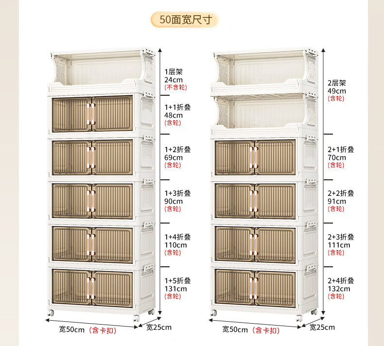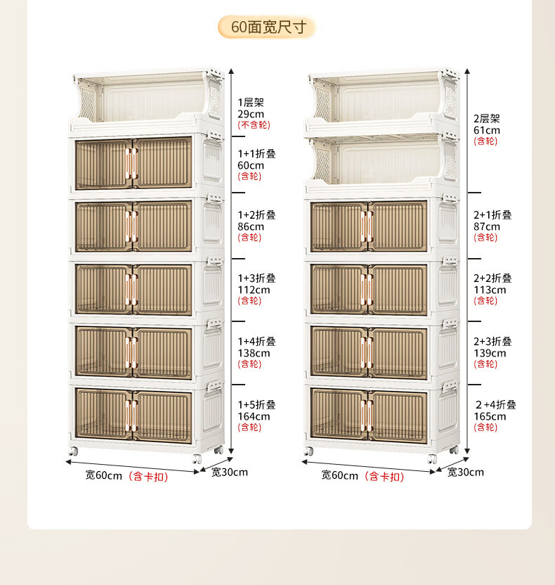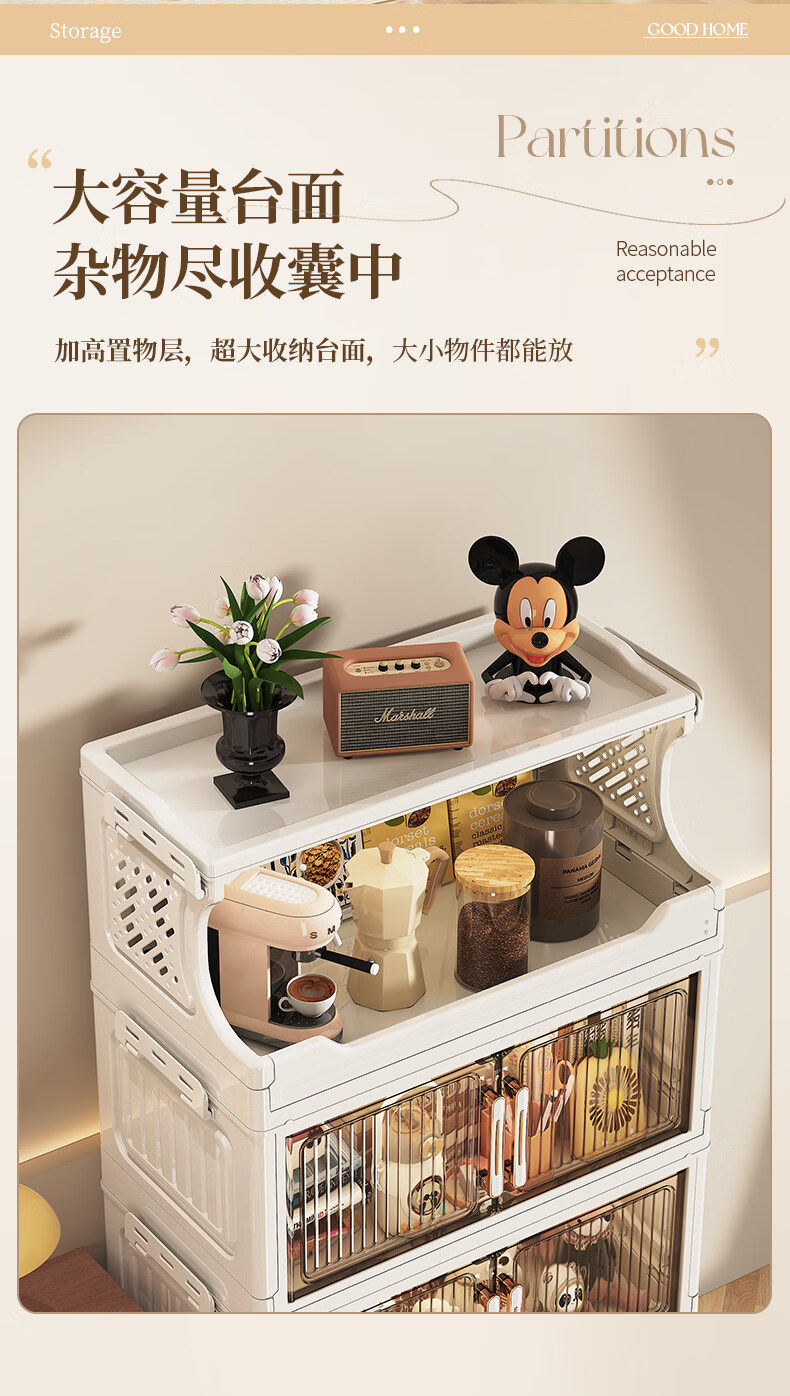 纳份爱 家用带轮收纳柜多层客厅零食置物架可折叠储物柜玩具收纳整理箱 大号【40CM面宽】 1层收纳架+4层收纳箱