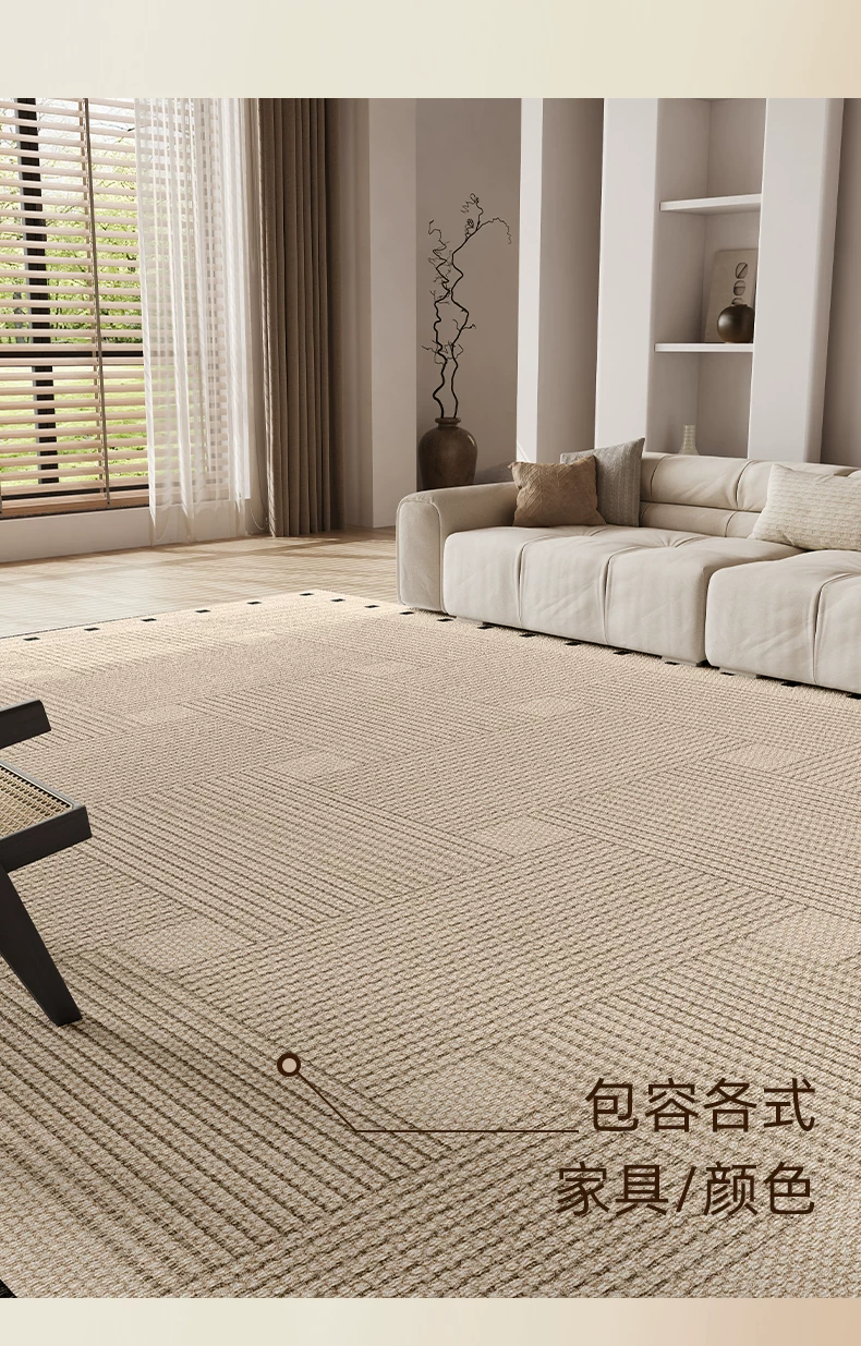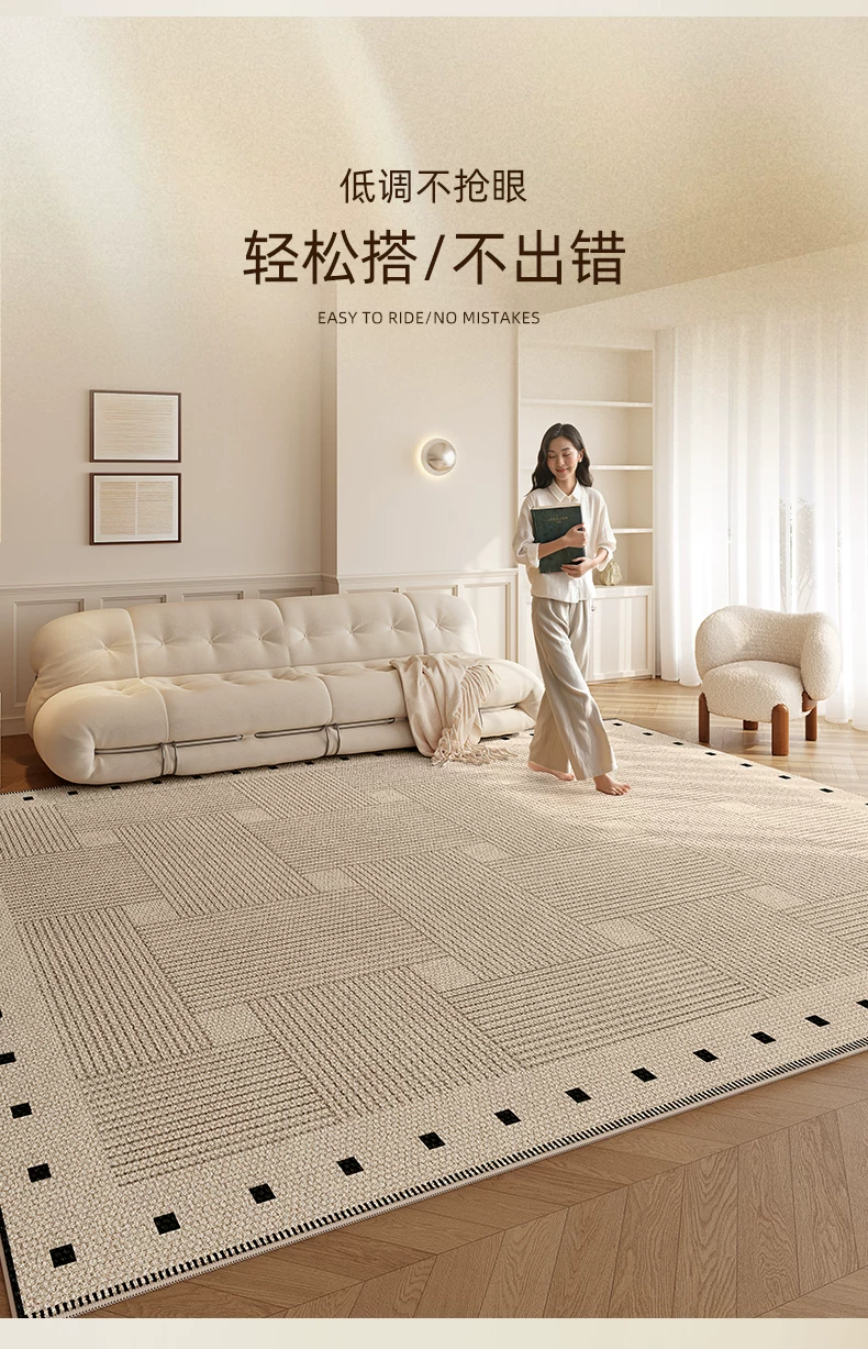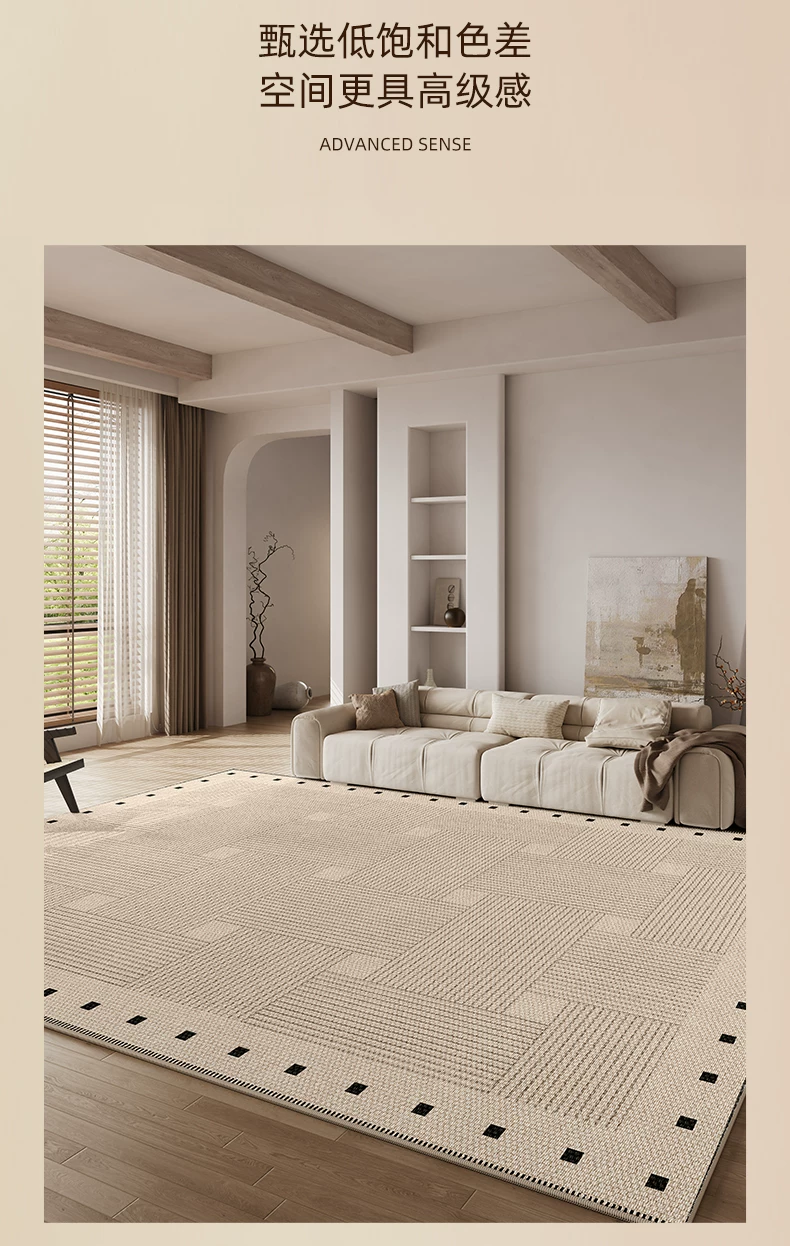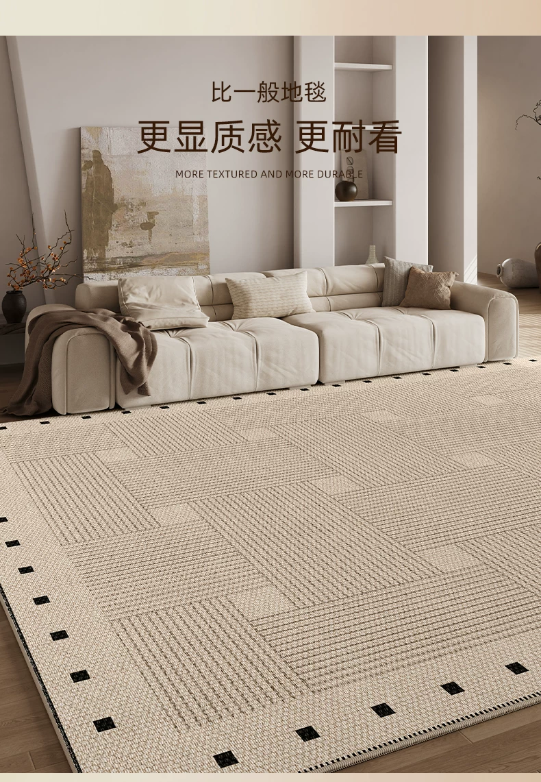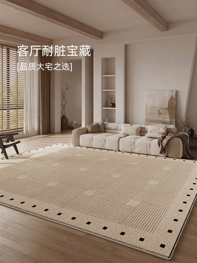 像素客厅地毯2026新款高级感免洗可擦中古侘寂沙发卧室地垫防水大面积 方黎-13220 240cm*400cm 【软糯亲肤 脚感舒适】