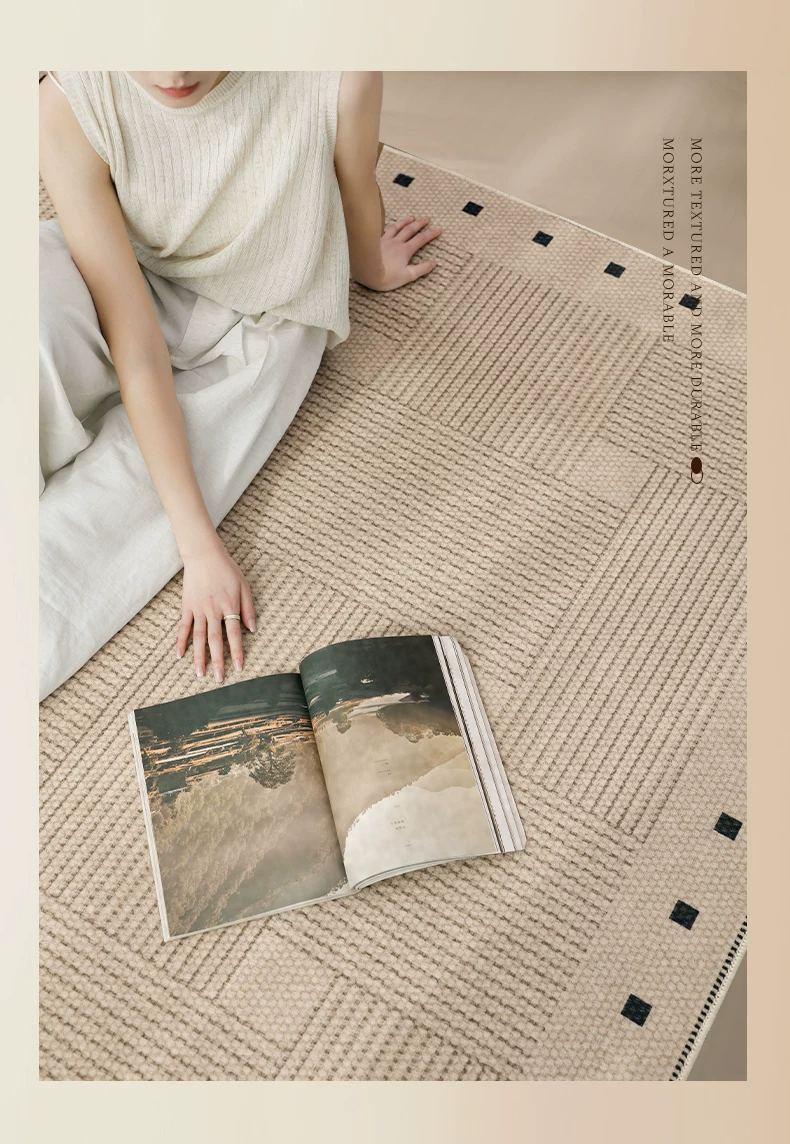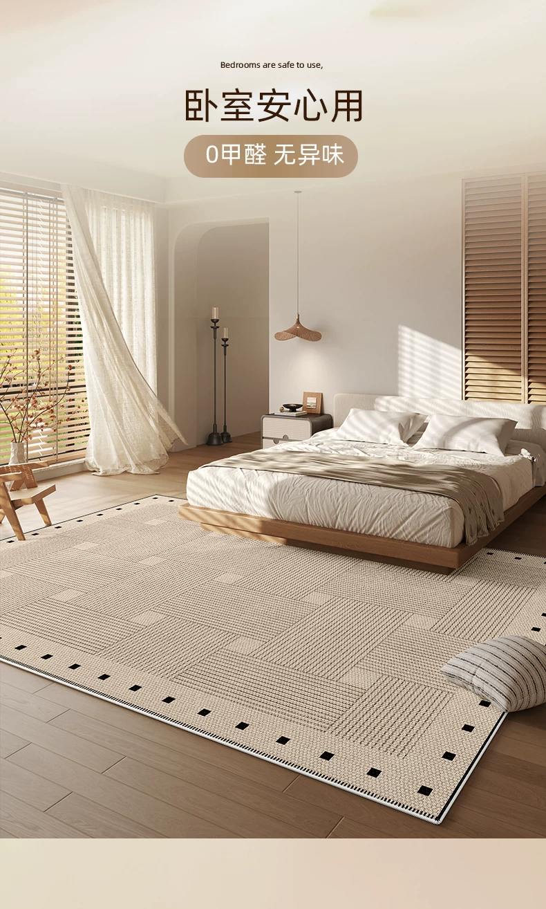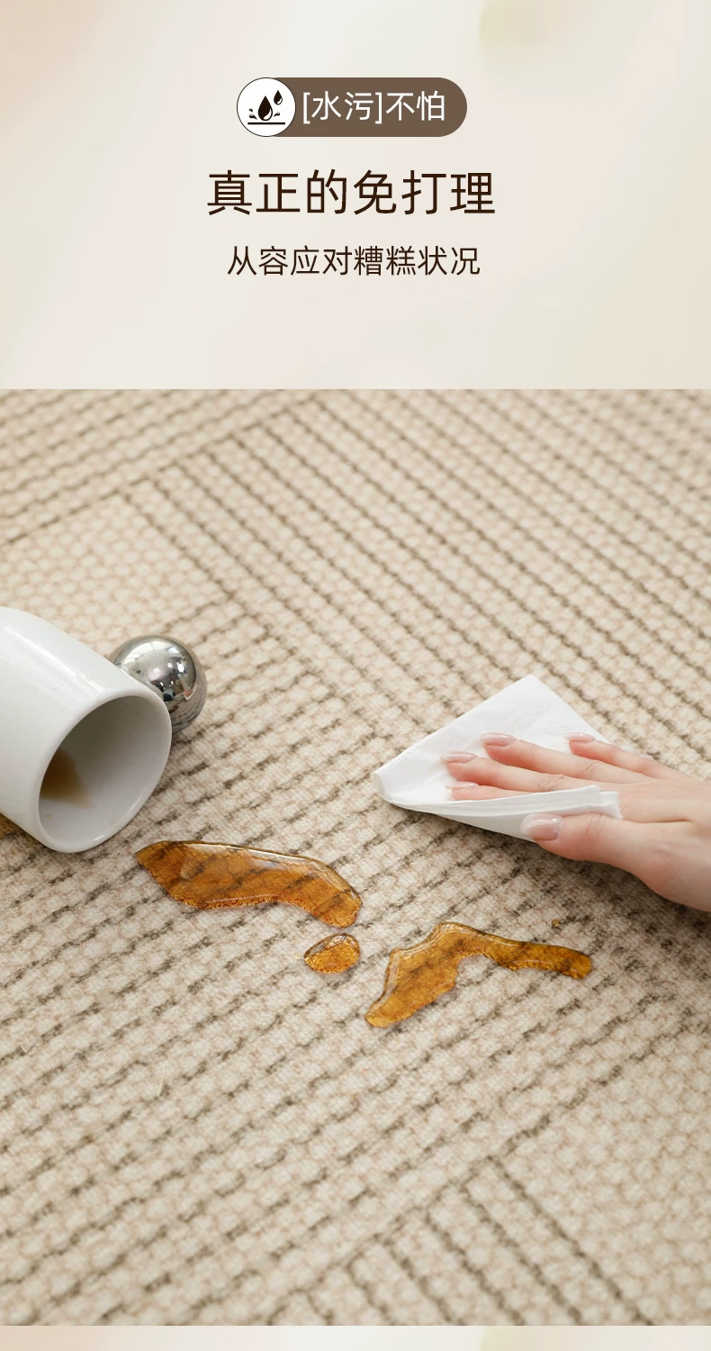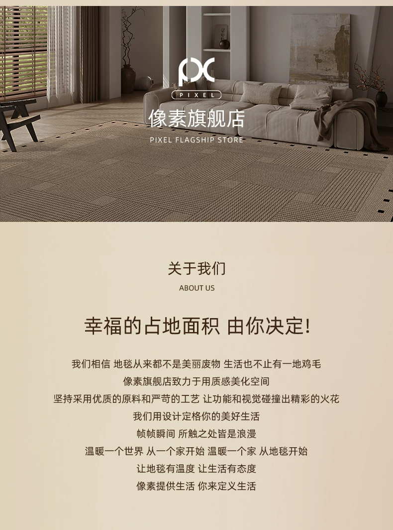 像素客厅地毯2026新款高级感免洗可擦中古侘寂沙发卧室地垫防水大面积 方黎-13220 240cm*400cm 【软糯亲肤 脚感舒适】