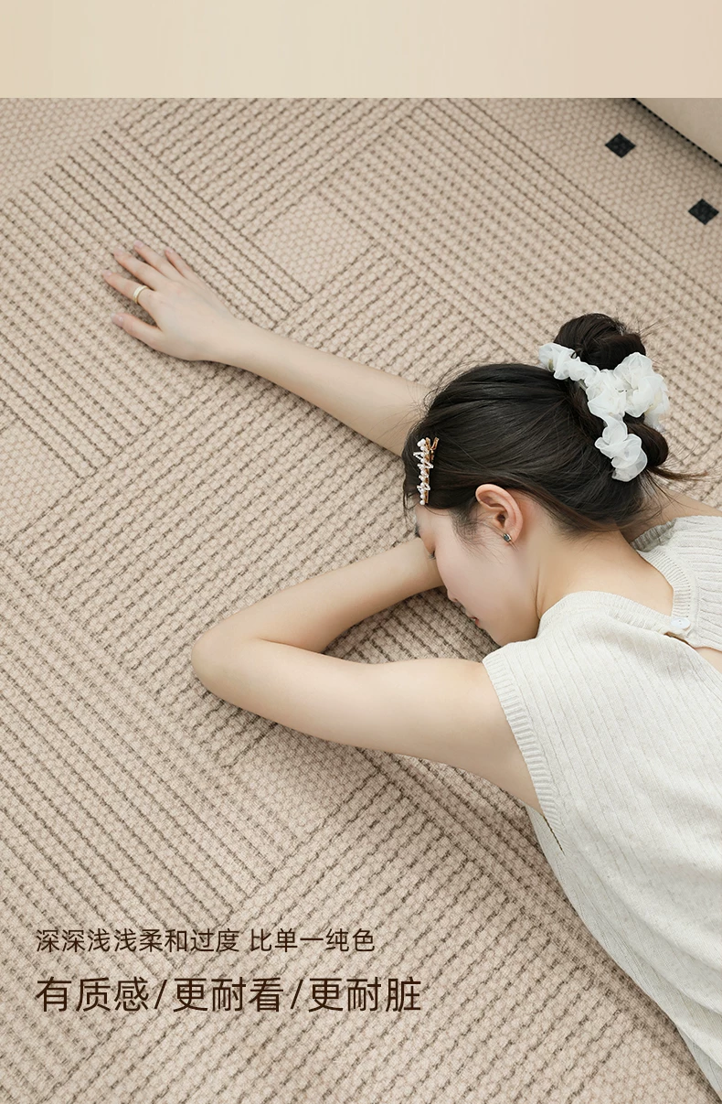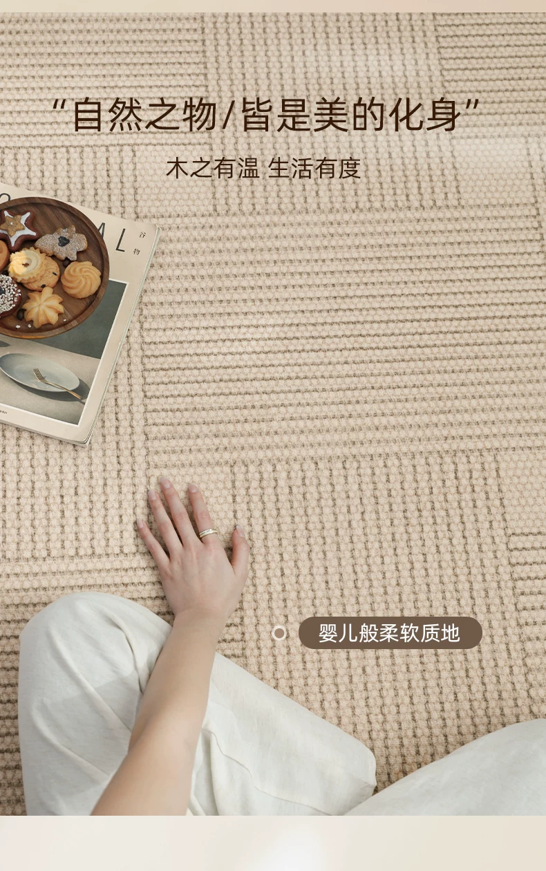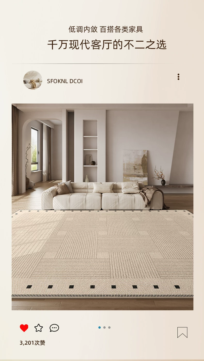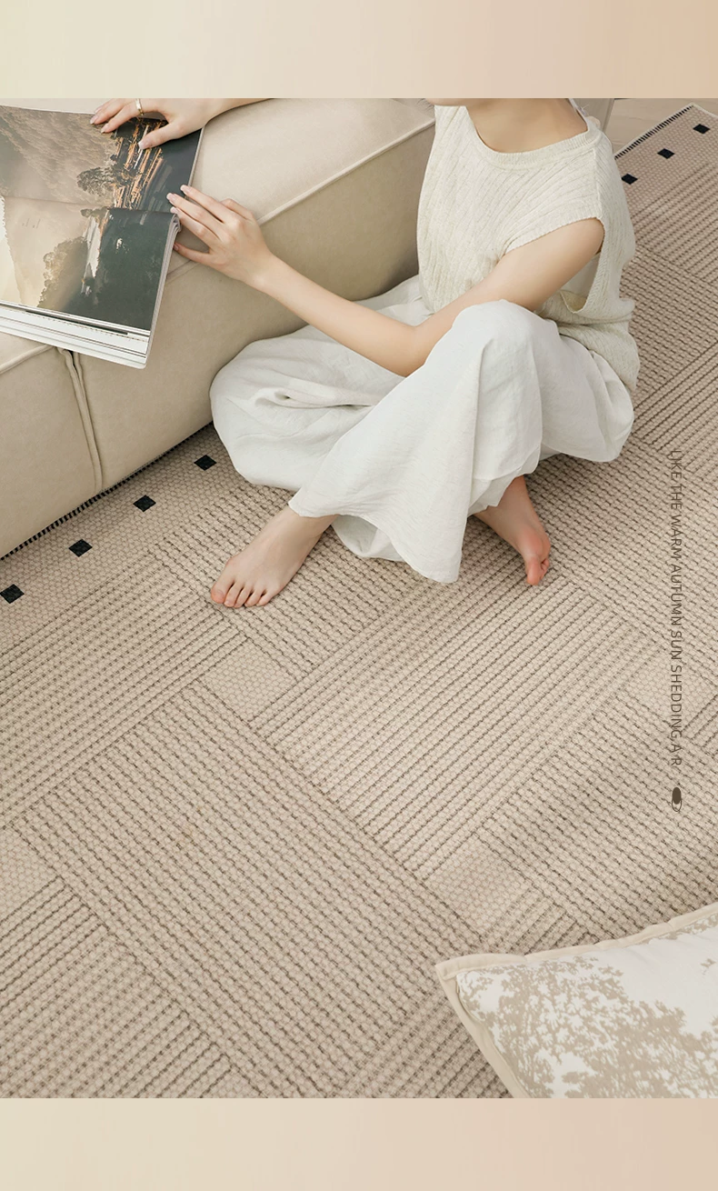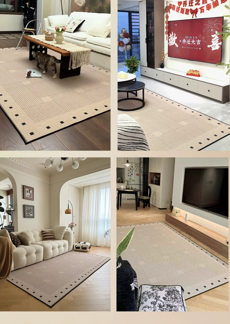 像素客厅地毯2026新款高级感免洗可擦中古侘寂沙发卧室地垫防水大面积 方黎-13220 240cm*400cm 【软糯亲肤 脚感舒适】