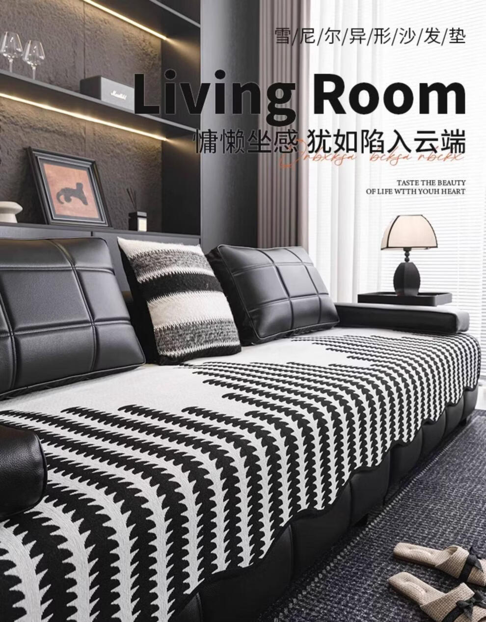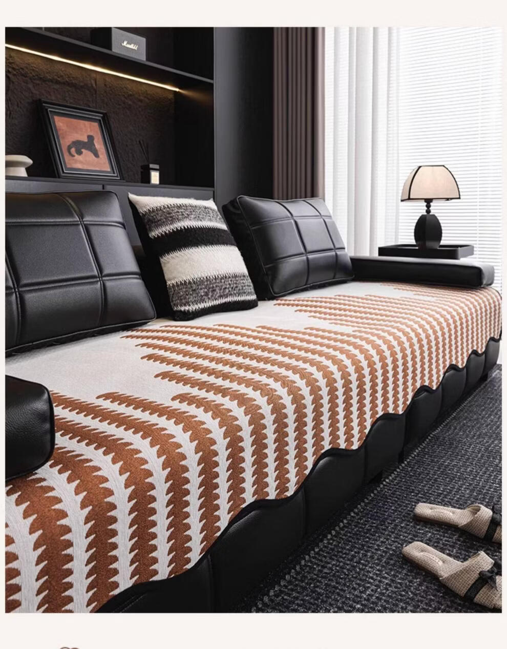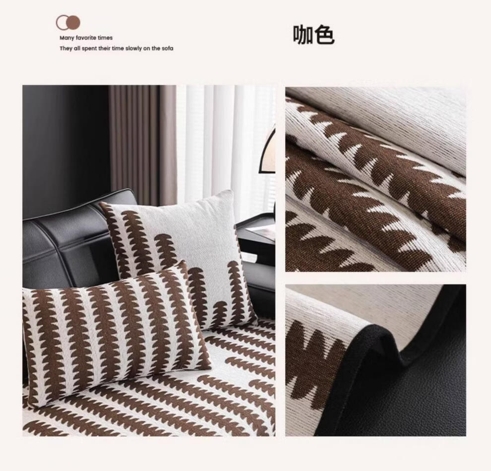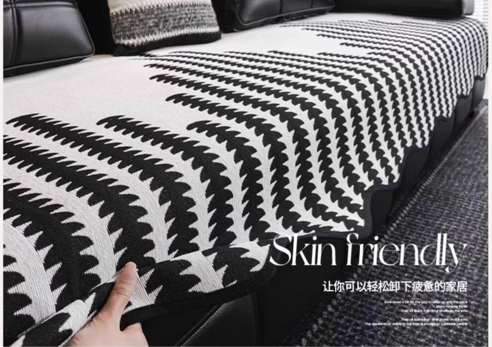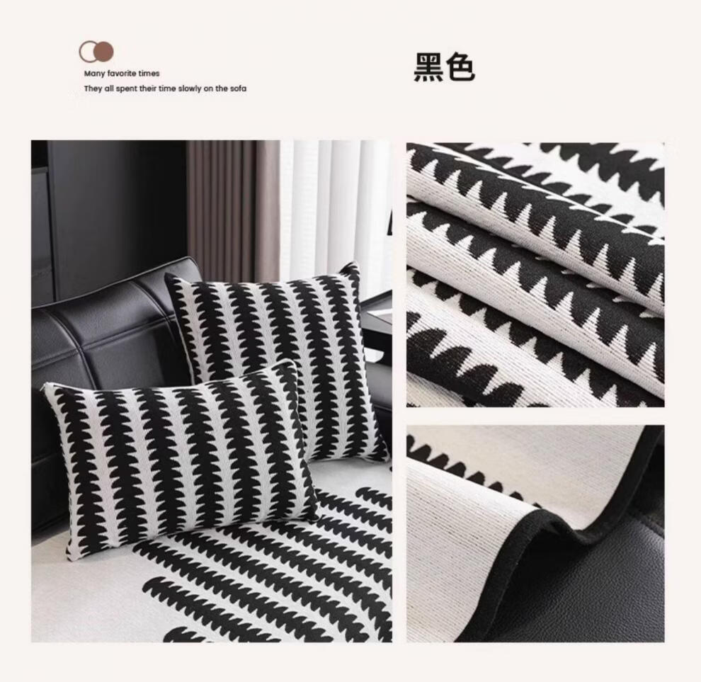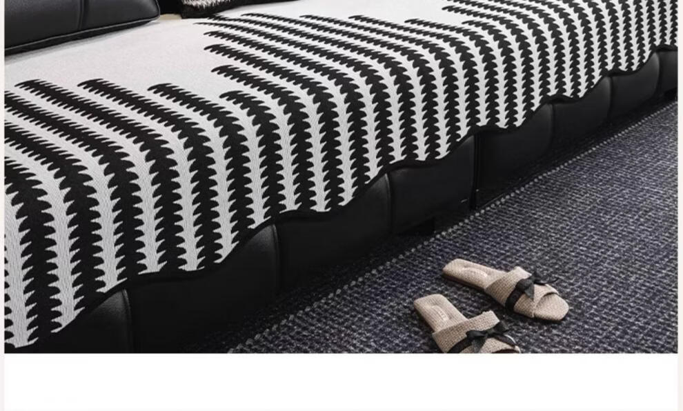 FABTP轻奢沙发垫四季通用防滑2026年新款劳伦斯专用直排皮沙发坐垫盖布 异形拾线-黑色 【雪尼尔材质 四季通用】 0cm*0cm 垫定做