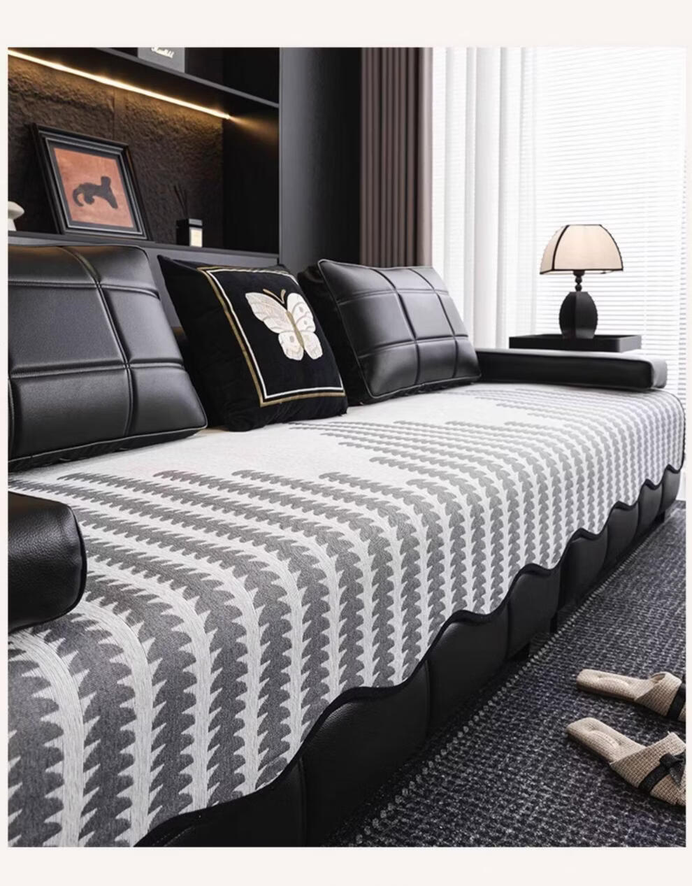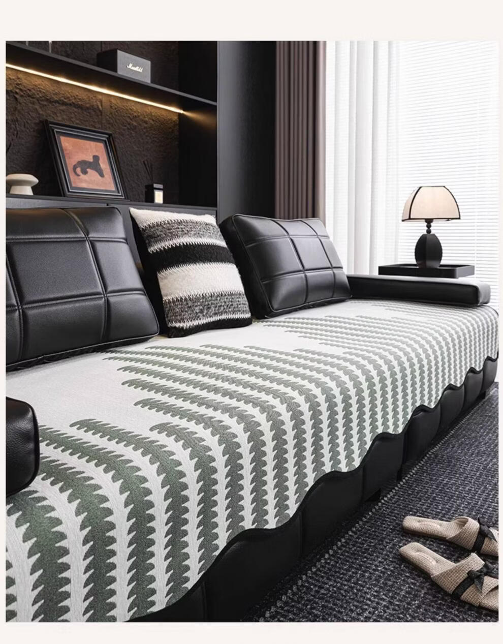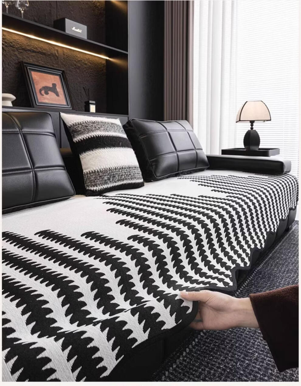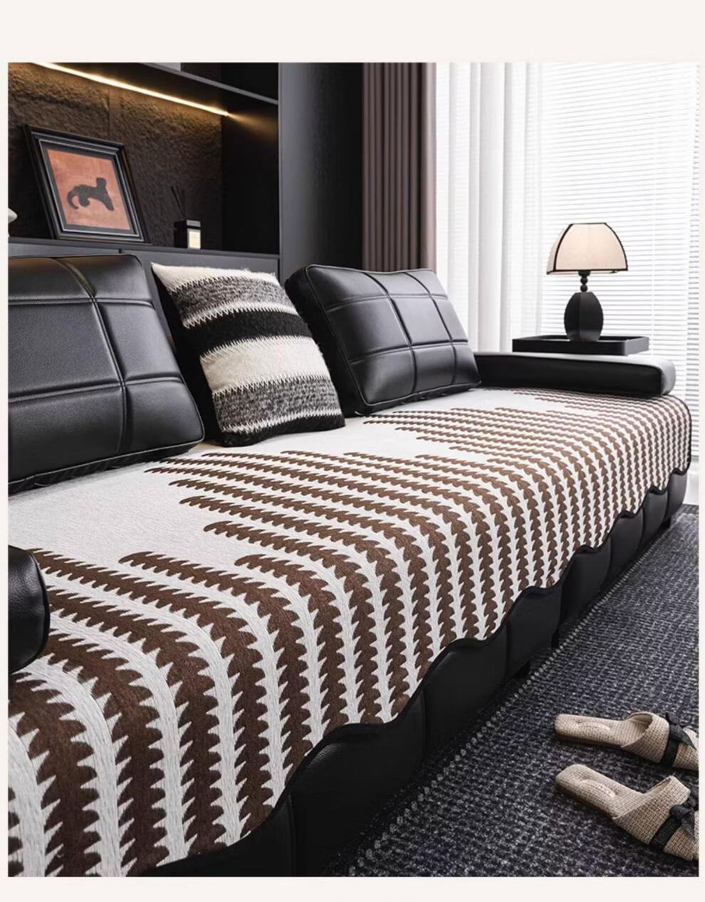 FABTP轻奢沙发垫四季通用防滑2026年新款劳伦斯专用直排皮沙发坐垫盖布 异形拾线-黑色 【雪尼尔材质 四季通用】 0cm*0cm 垫定做