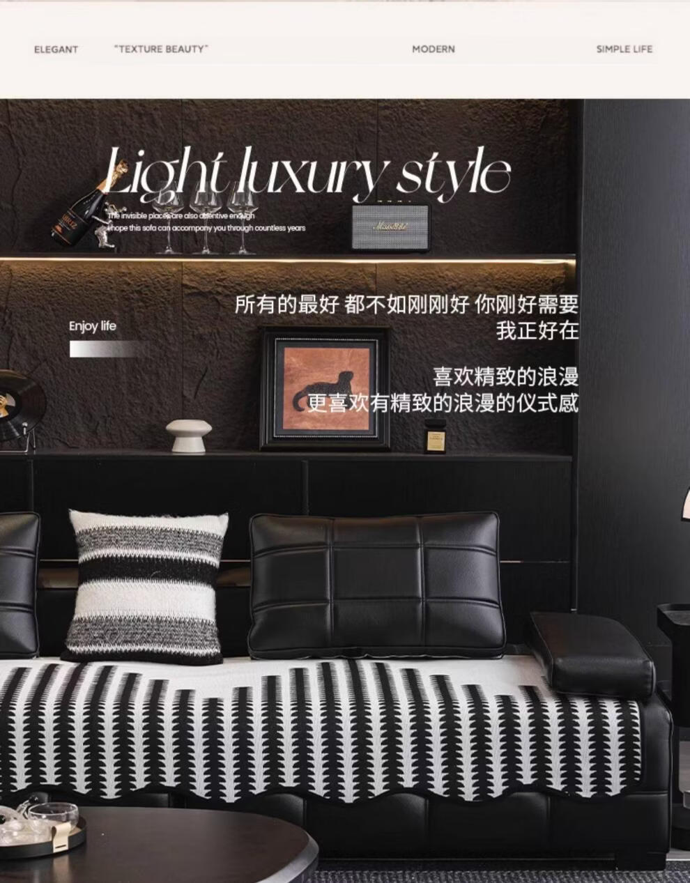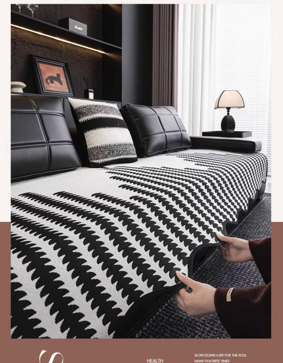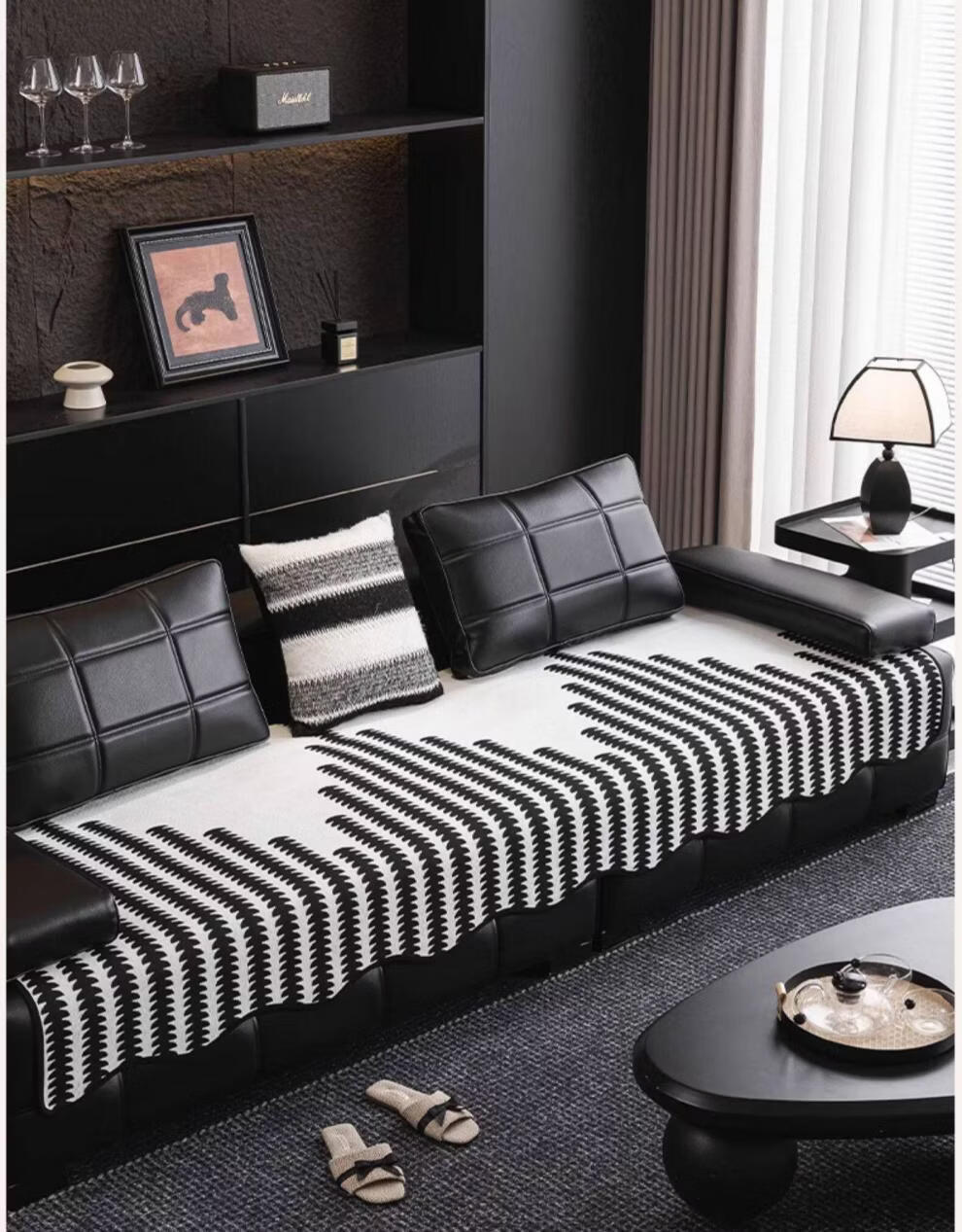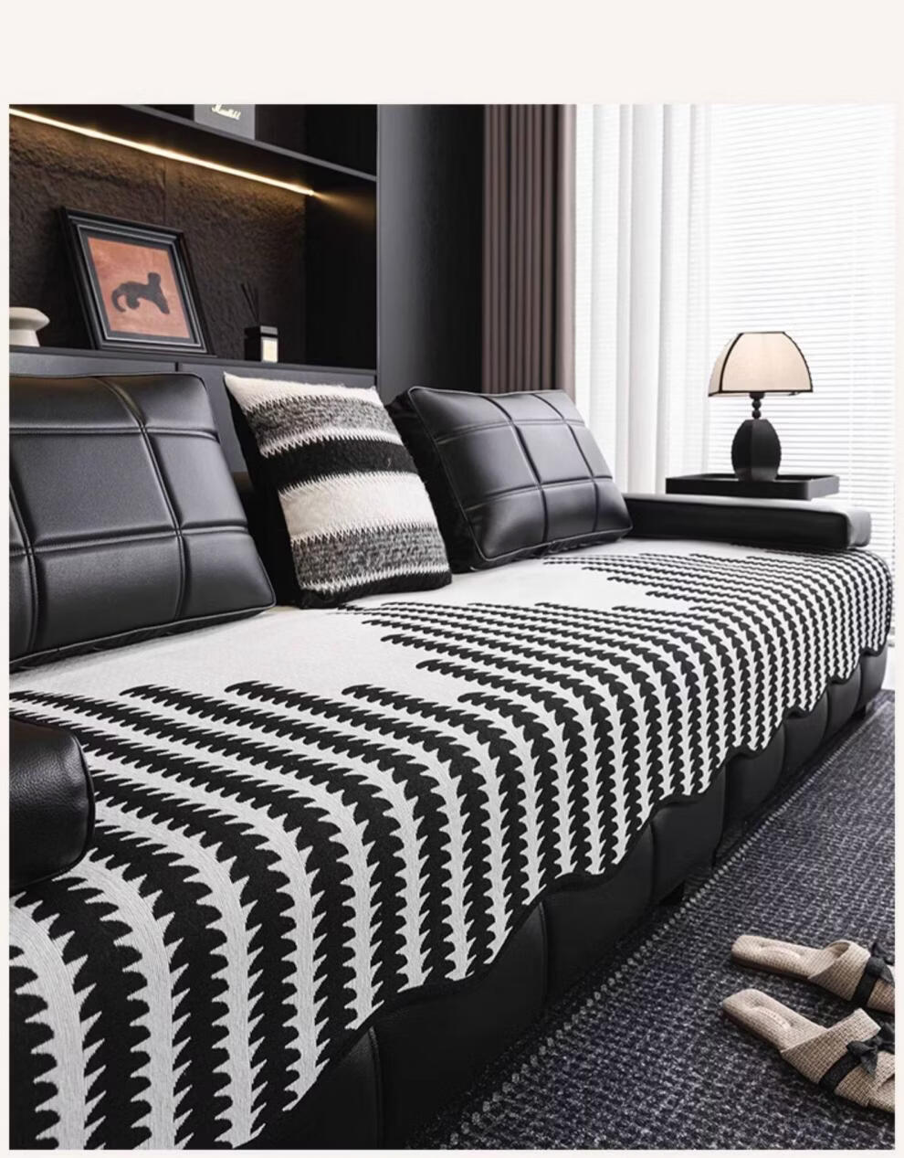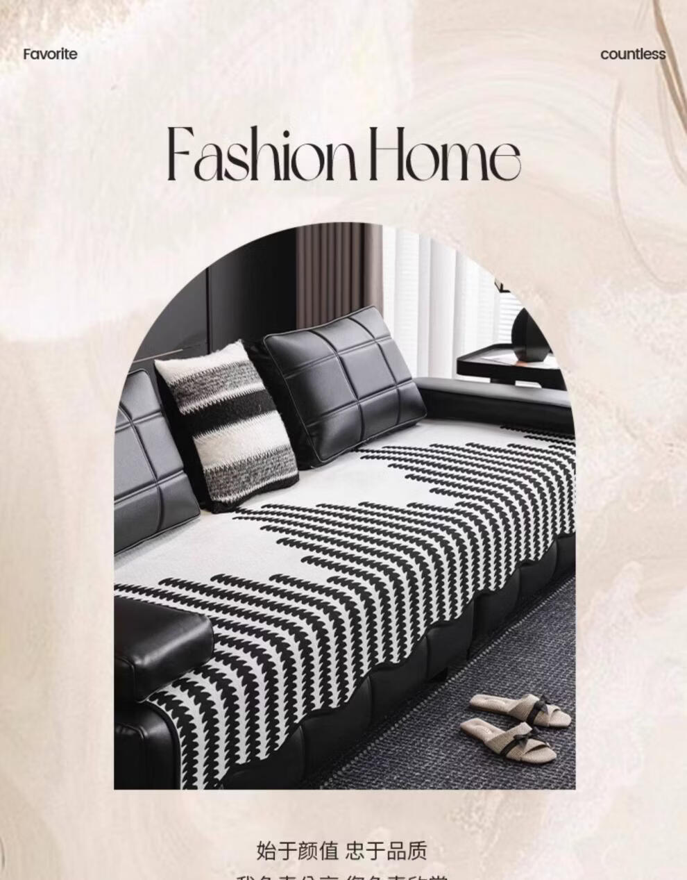 FABTP轻奢沙发垫四季通用防滑2026年新款劳伦斯专用直排皮沙发坐垫盖布 异形拾线-黑色 【雪尼尔材质 四季通用】 0cm*0cm 垫定做
