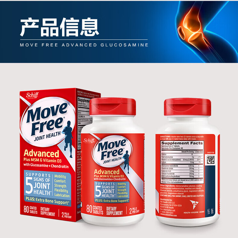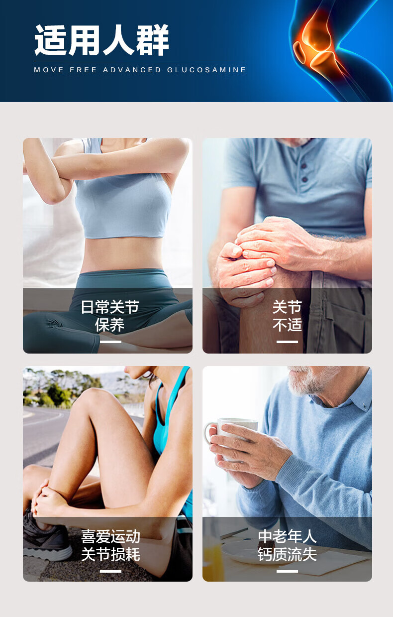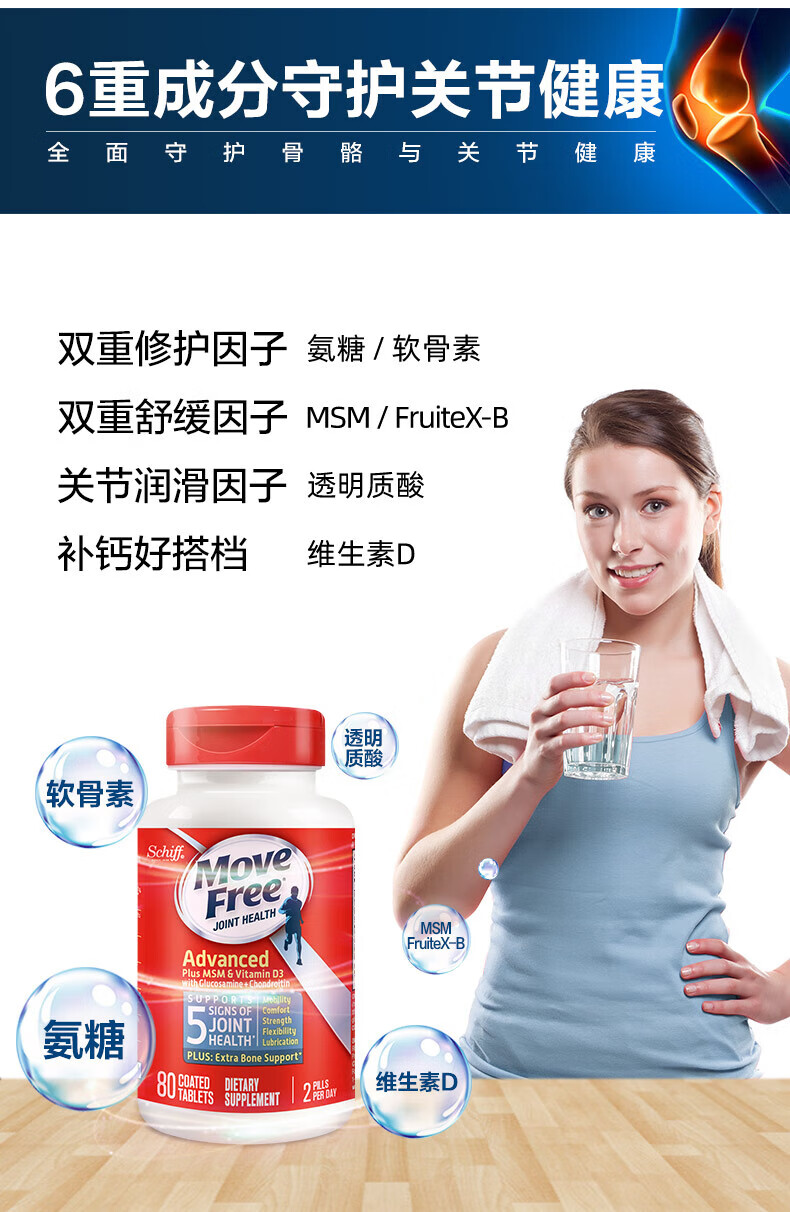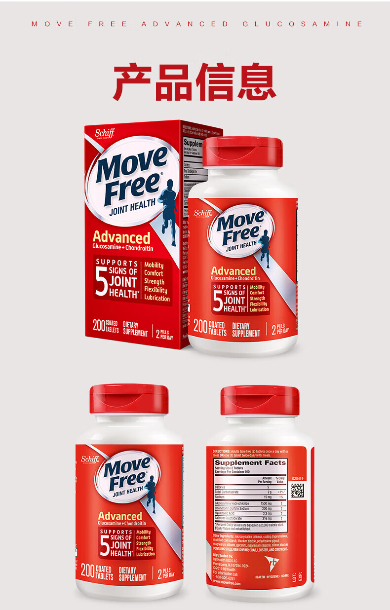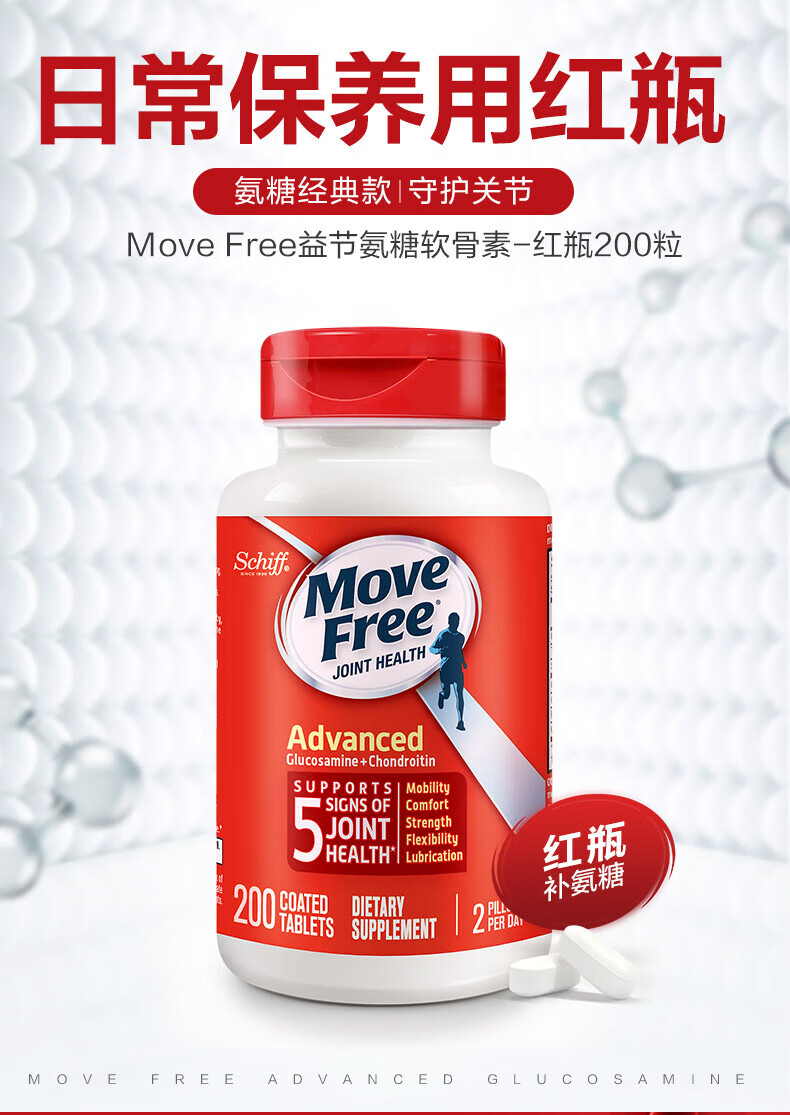 益节(Move Free)美国进口7合1氨糖软骨素钙片含MSM维骨力 中老年人养护关节健康 【红瓶加量装】日常养护 200粒*1瓶