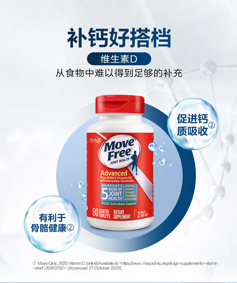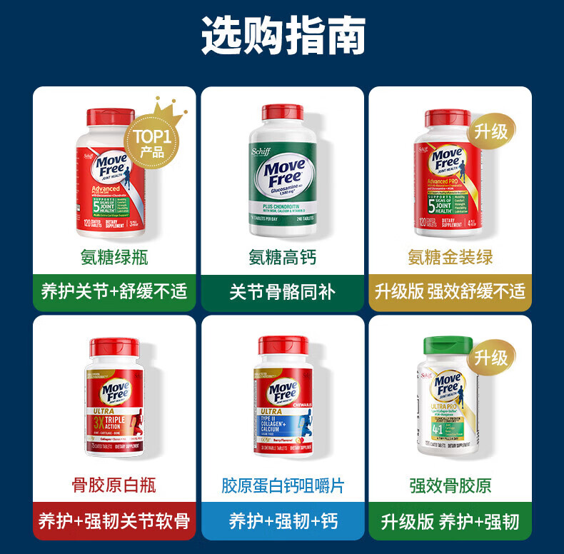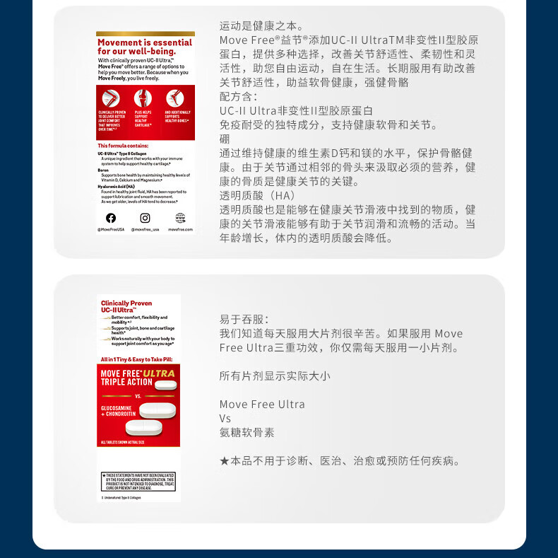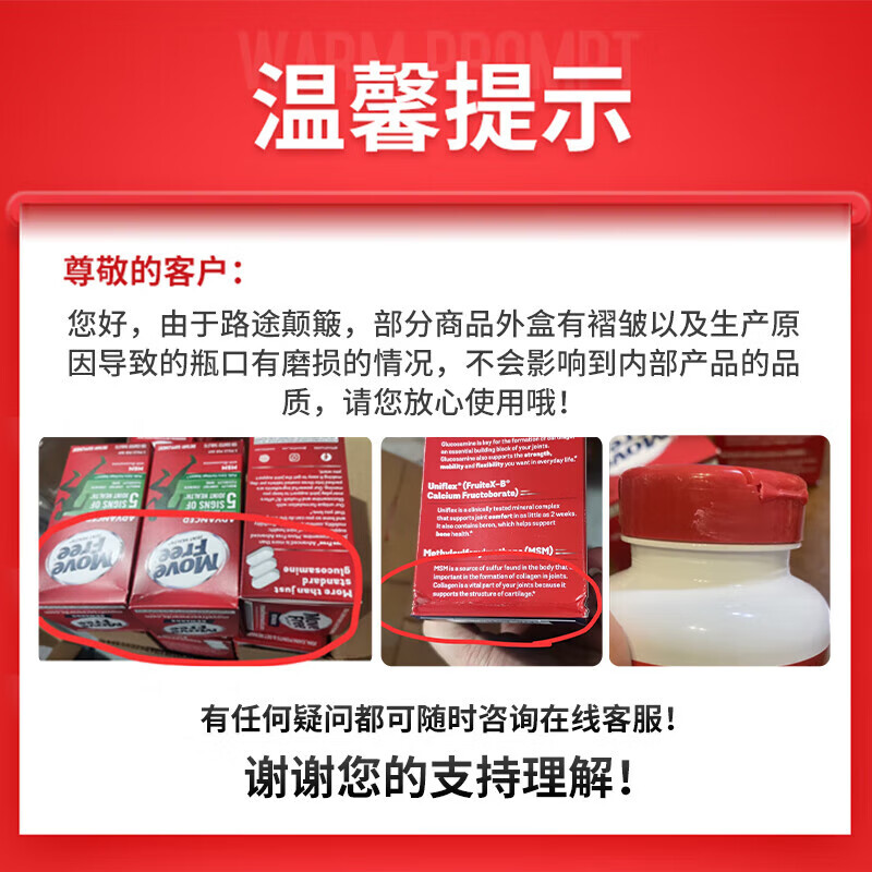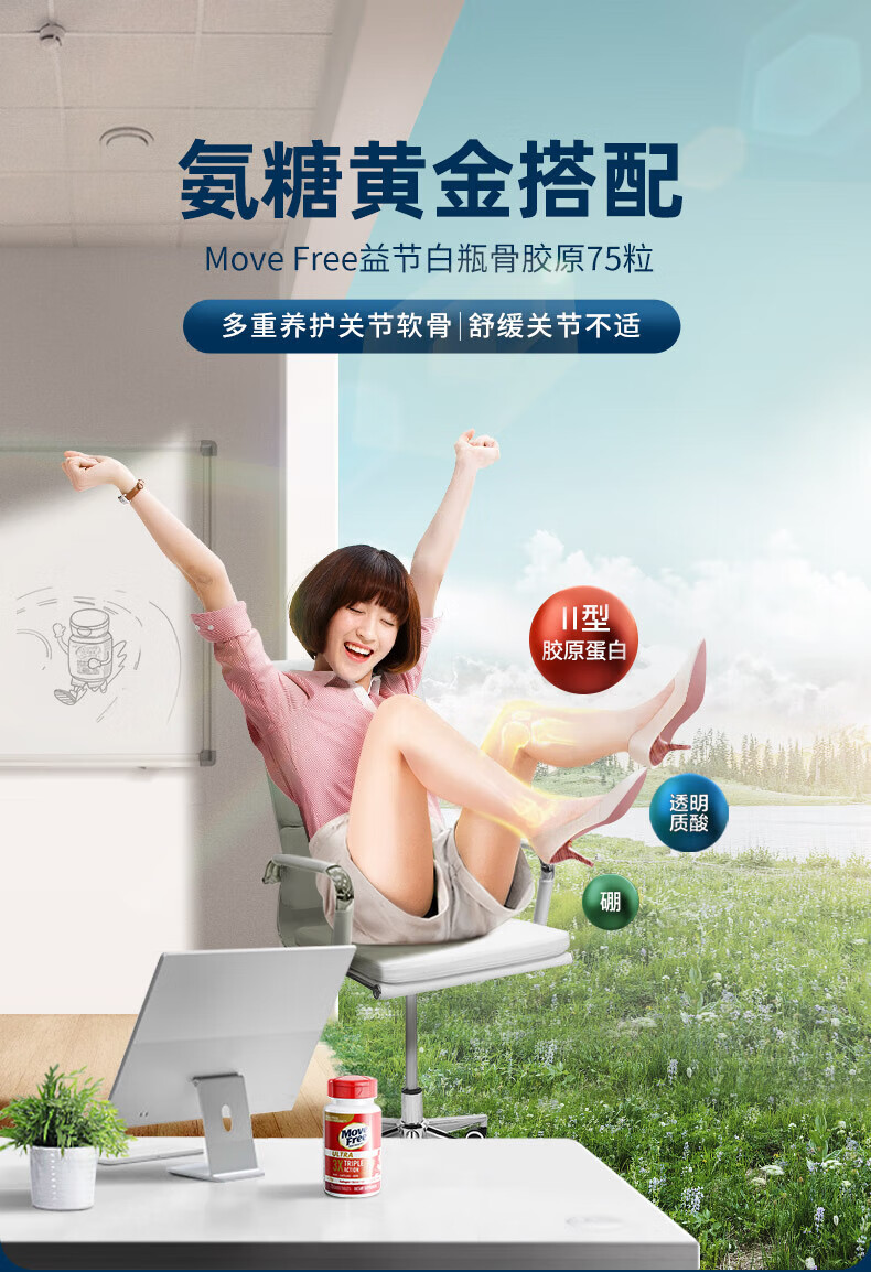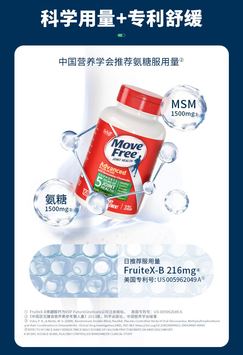 益节(Move Free)美国进口7合1氨糖软骨素钙片含MSM维骨力 中老年人养护关节健康 【红瓶加量装】日常养护 200粒*1瓶